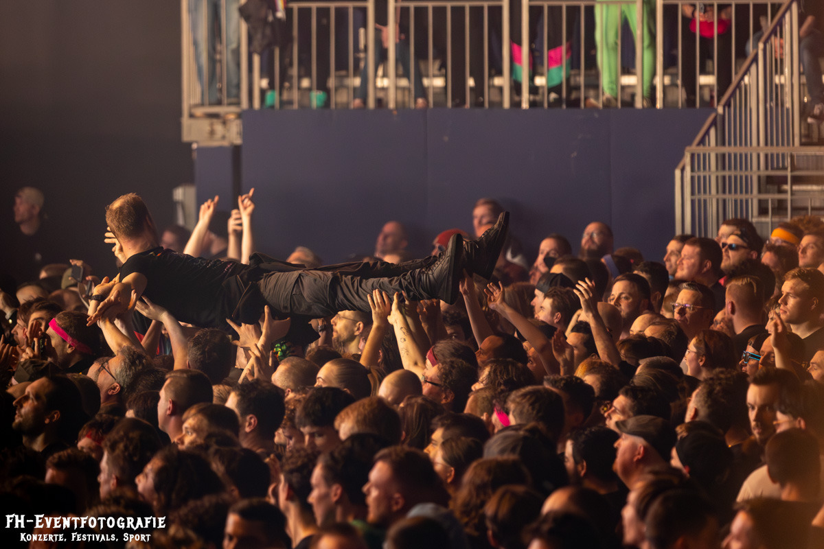 Kleiner Anreisehinweis für die ZAG Arena. Solltet ihr zukünftig dorthin wollen, fahrt sehr früh dorthin, nehmt etwas Kleingeld für die Parkplätze mit und seid cool miteinander. Den egal wie es läuft, bei grandiosen Bands wie Electric Callboy wird die Schlange reichlich lang sein. Wer zeitig erscheint, wird auch belohnt. Die Location an sich ist wirklich angenehm. Die Schlangen halten sich in der Venue absolut in Grenzen. Also so lange man nicht den Massen folgt und etwas weiter geht. Dann sind die Schlangen deutlich kürzer. An den Getränkeständen, etwas abseits, habe ich nie länger als 2 oder 3 Minuten warten müssen, um mein Getränk zu bekommen.