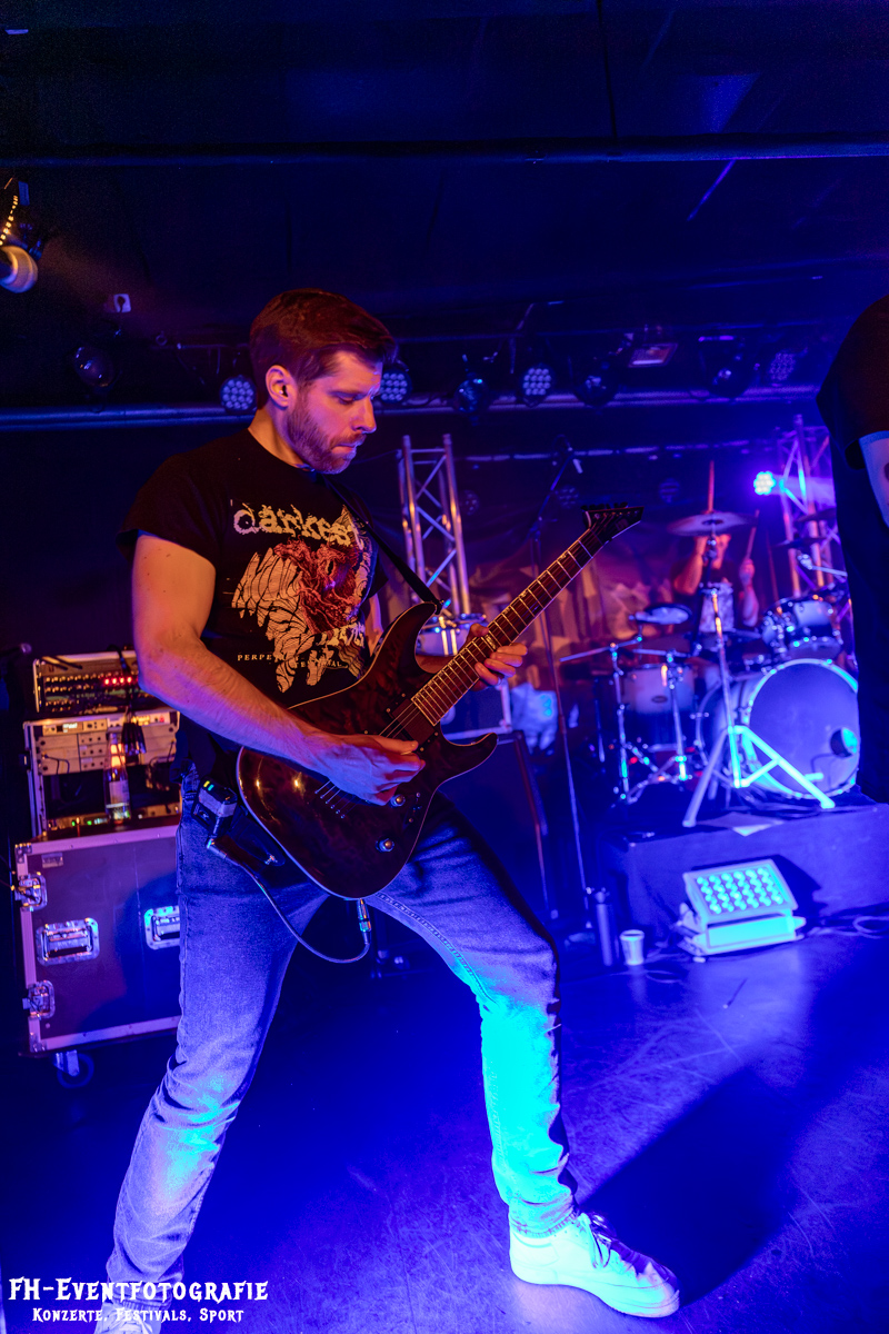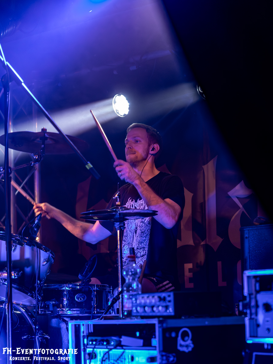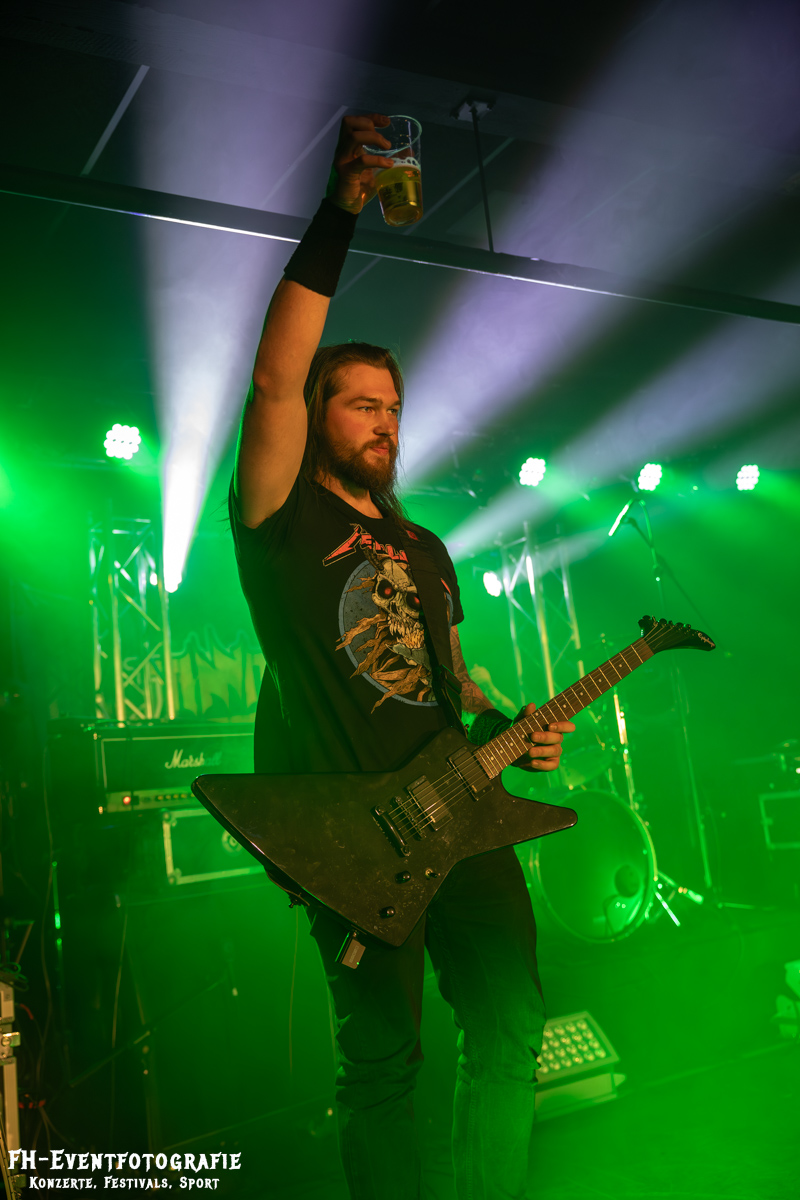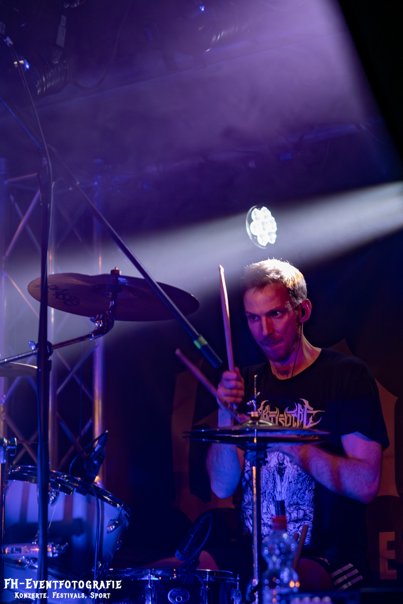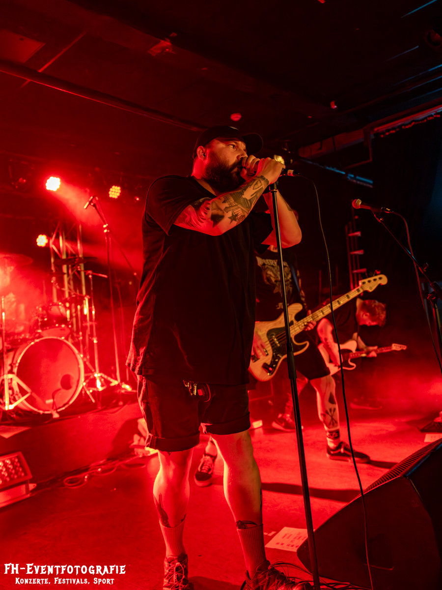 Die Magdeburger Untergangspropheten starteten den Abend mit dem erhobenen Zeigefinger und einem imaginären Mittelfinger an die Irren dieser Welt. An die Scheiße, die in der Vergangenheit der Welt passiert ist, kann und muss erinnert werden. Tinnitus Attack haben ihren ganz eigenen brachialen Weg gewählt, um zu ermahnen und aus der Vergangenheit zu lernen. Geiler aggressiver Scheiß und das schon als erste Band des Abends. Da war ich musikalisch ja schonmal voll dabei. Musik, die bei mir nur live geht und genau dafür ist sowas Kleines wie das Kino im Hallenbad perfekt.