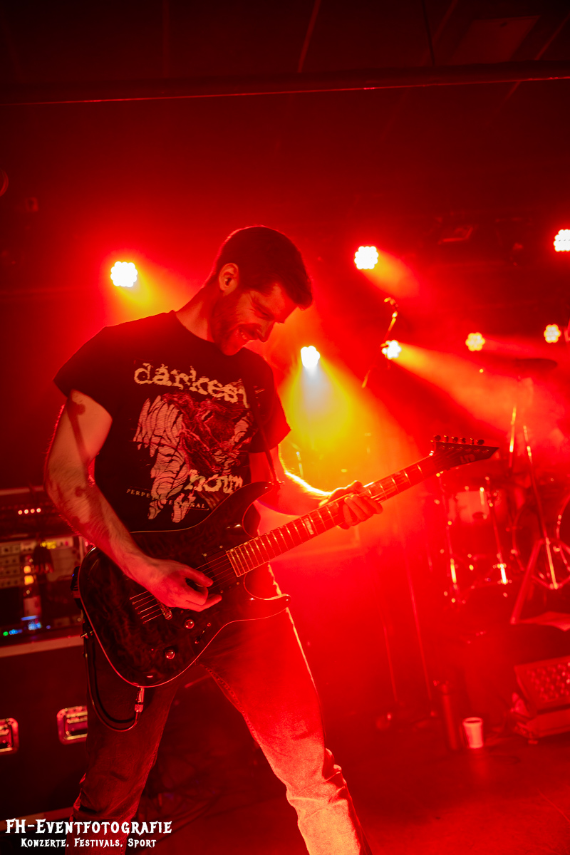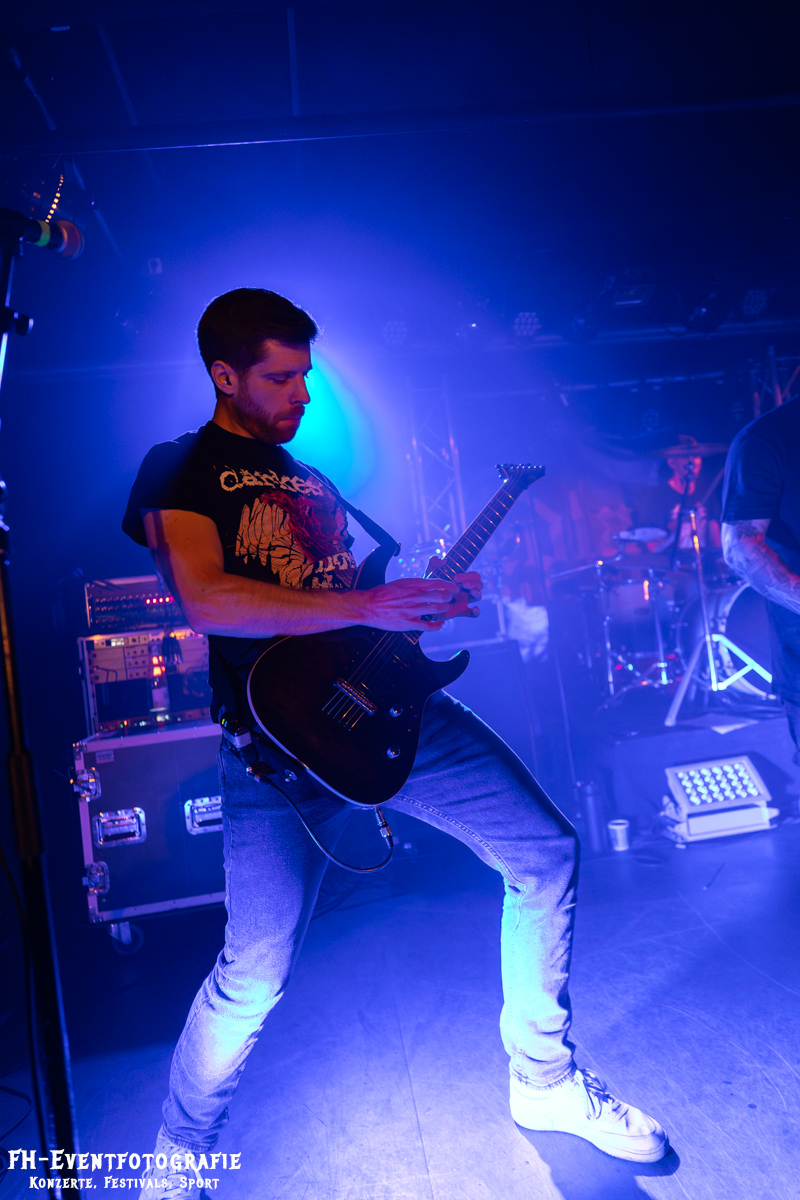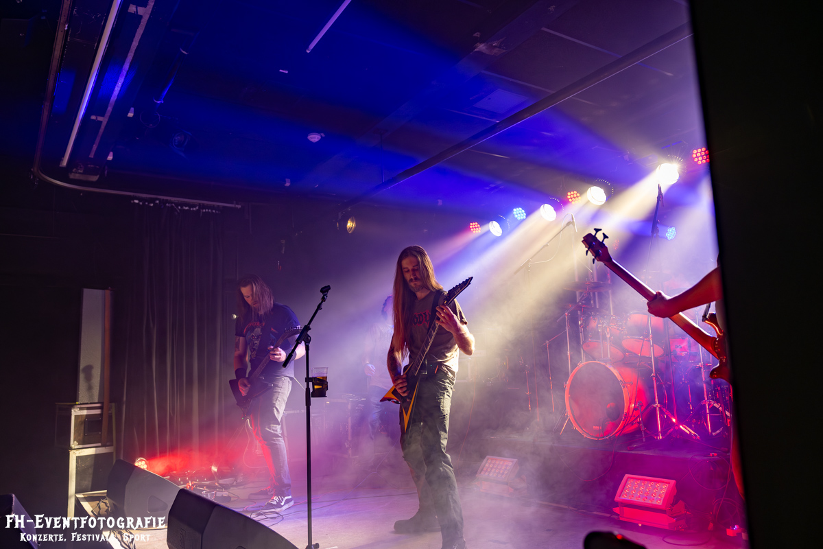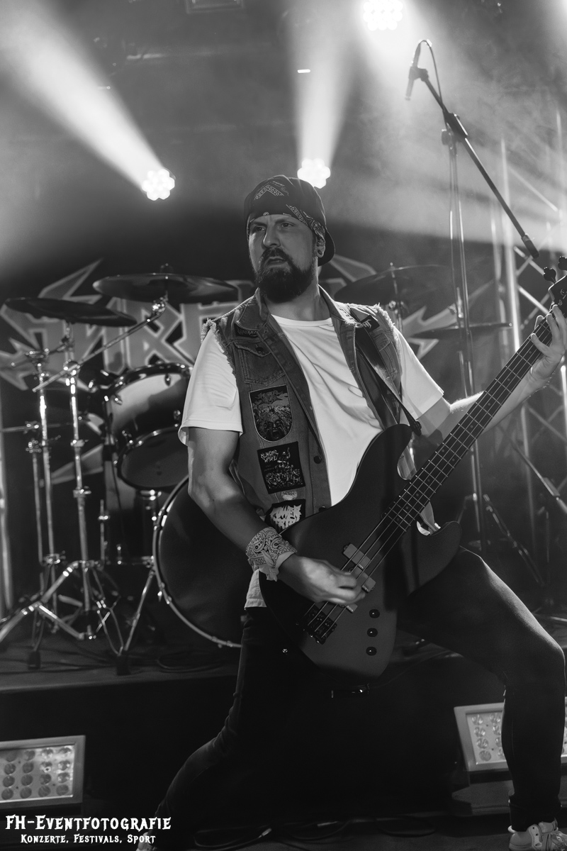 Die Magdeburger Untergangspropheten starteten den Abend mit dem erhobenen Zeigefinger und einem imaginären Mittelfinger an die Irren dieser Welt. An die Scheiße, die in der Vergangenheit der Welt passiert ist, kann und muss erinnert werden. Tinnitus Attack haben ihren ganz eigenen brachialen Weg gewählt, um zu ermahnen und aus der Vergangenheit zu lernen. Geiler aggressiver Scheiß und das schon als erste Band des Abends. Da war ich musikalisch ja schonmal voll dabei. Musik, die bei mir nur live geht und genau dafür ist sowas Kleines wie das Kino im Hallenbad perfekt.