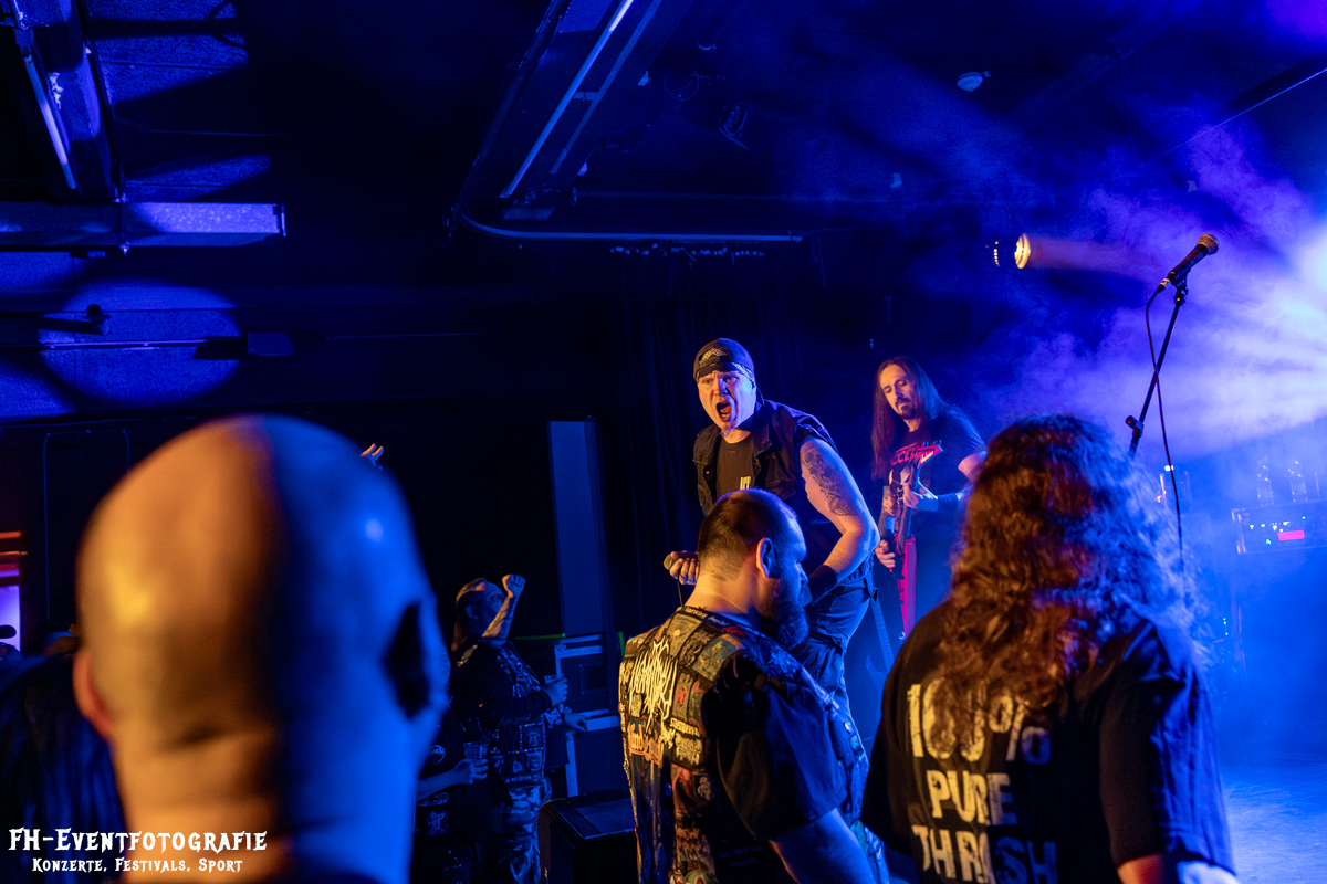 Runde zwei wurde von Einheimischen bestritten. Nach reichlich Pause in der Bandgeschichte spielten Bedlam Broke Loose einen reichlich abgefahrenen Auftritt. Wenig Metal im ursprünglichen Sinne, dafür mehr Hardcore mit auf die Fresse Garantie. Die geneigten Metalheads hatten ihren Spaß. Keine Frage, aber das Nackenknacken blieb etwas auf der Strecke. Das im Takt wippen und nicken war dafür aber überall zu sehen. Für oldschool Metaler aber ein Ausdruck von beeindruckt sein. Und ich war beeindruckt, wie takttreu die Crowd war. Diese Fähigkeit wird ja normalerweise nach wenigen Sekunden verlernt.