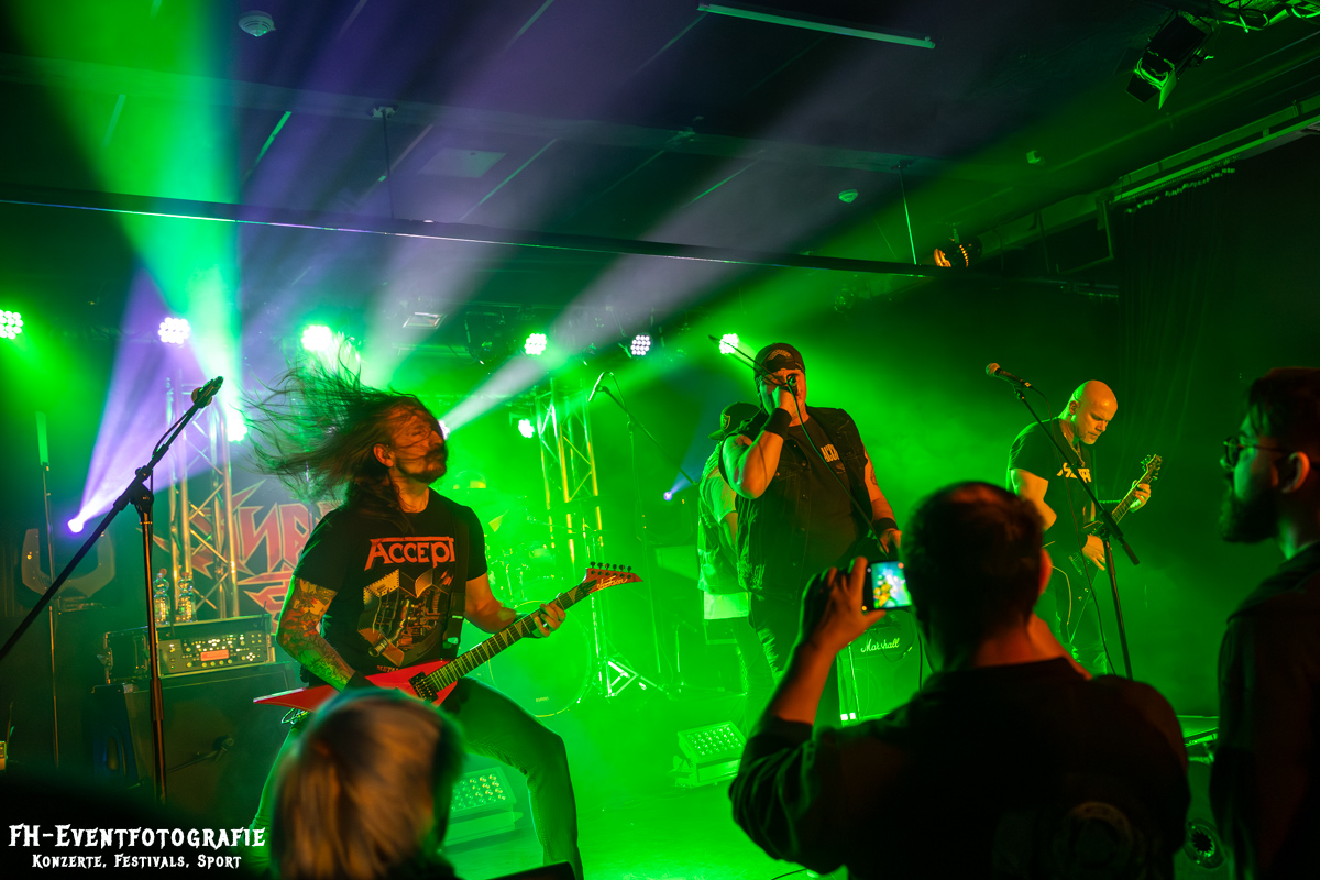 Was Energie und Bühnenpräsenz angeht, trug an diesem Abend aber niemand anderes als Hiraes die Krone. Ja, ich kann es nicht verleugnen, ich bin Fan und mag das neue Album sehr. Das Album hat was von einem Hidden Champion in meiner Playlist und Plattensammlung. Je öfter ich es höre, desto geiler wird es. Nun konnte ich große Teile dieses Albums wieder mal live erleben. Und was soll ich sagen? Das war einfach geil. Ich bin nicht so der Mensch, der sich ins Getümmel stürzt, daher habe ich vieles des Konzertes von der Seitenlinie genossen. Nicht so die Fans. Und wer kann schon der überspringenden Power einer Britta Görtz widerstehen? Mich hatte leider eine Erkältung immer fieser im Griff, sodass ich leider das Ende dieses Auftritts nicht mehr miterleben konnte. Die Pillen, die mich fit hielten, hörten dann doch langsam auf zu wirken und somit ging es leider viel zu früh wieder nach Hause.