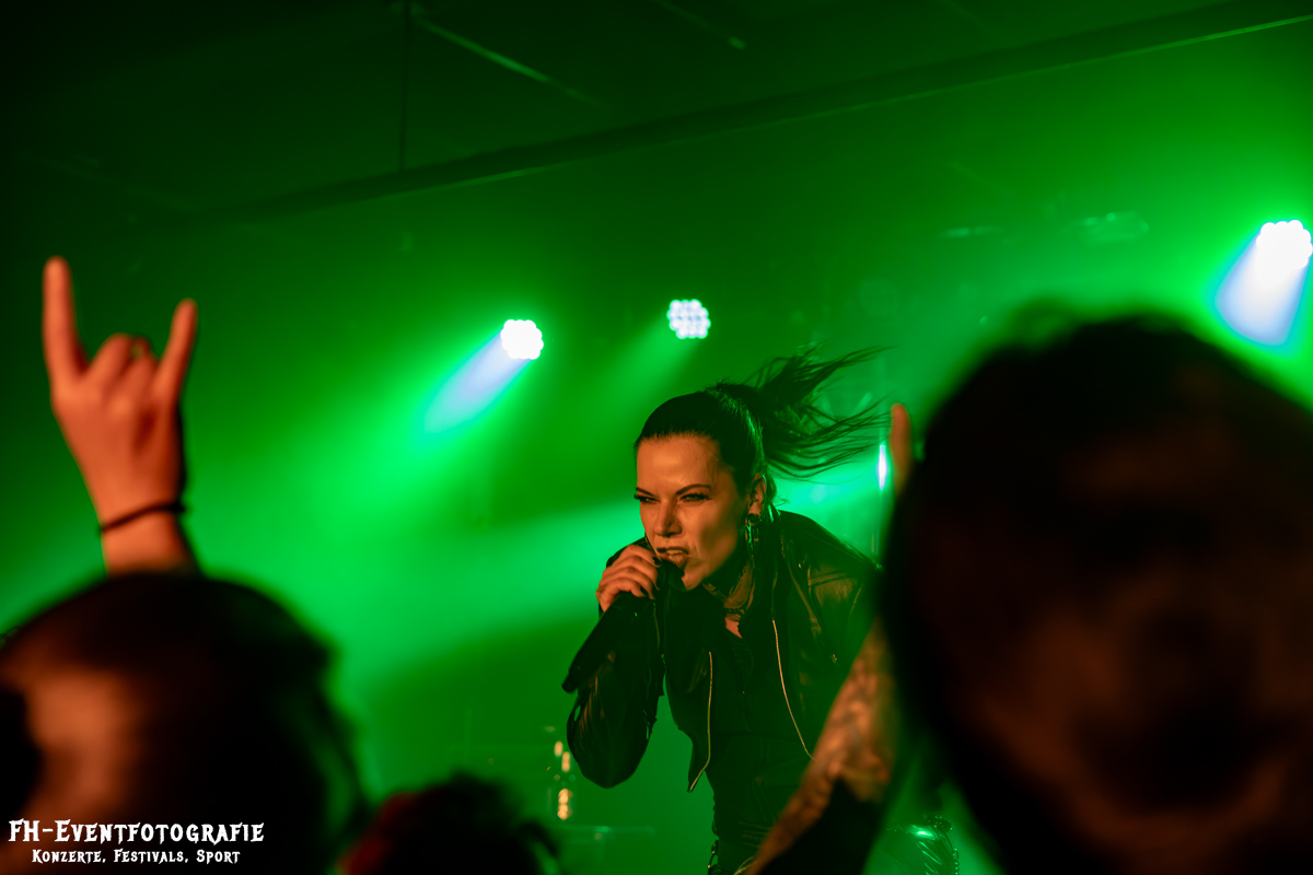 Was Energie und Bühnenpräsenz angeht, trug an diesem Abend aber niemand anderes als Hiraes die Krone. Ja, ich kann es nicht verleugnen, ich bin Fan und mag das neue Album sehr. Das Album hat was von einem Hidden Champion in meiner Playlist und Plattensammlung. Je öfter ich es höre, desto geiler wird es. Nun konnte ich große Teile dieses Albums wieder mal live erleben. Und was soll ich sagen? Das war einfach geil. Ich bin nicht so der Mensch, der sich ins Getümmel stürzt, daher habe ich vieles des Konzertes von der Seitenlinie genossen. Nicht so die Fans. Und wer kann schon der überspringenden Power einer Britta Görtz widerstehen? Mich hatte leider eine Erkältung immer fieser im Griff, sodass ich leider das Ende dieses Auftritts nicht mehr miterleben konnte. Die Pillen, die mich fit hielten, hörten dann doch langsam auf zu wirken und somit ging es leider viel zu früh wieder nach Hause.