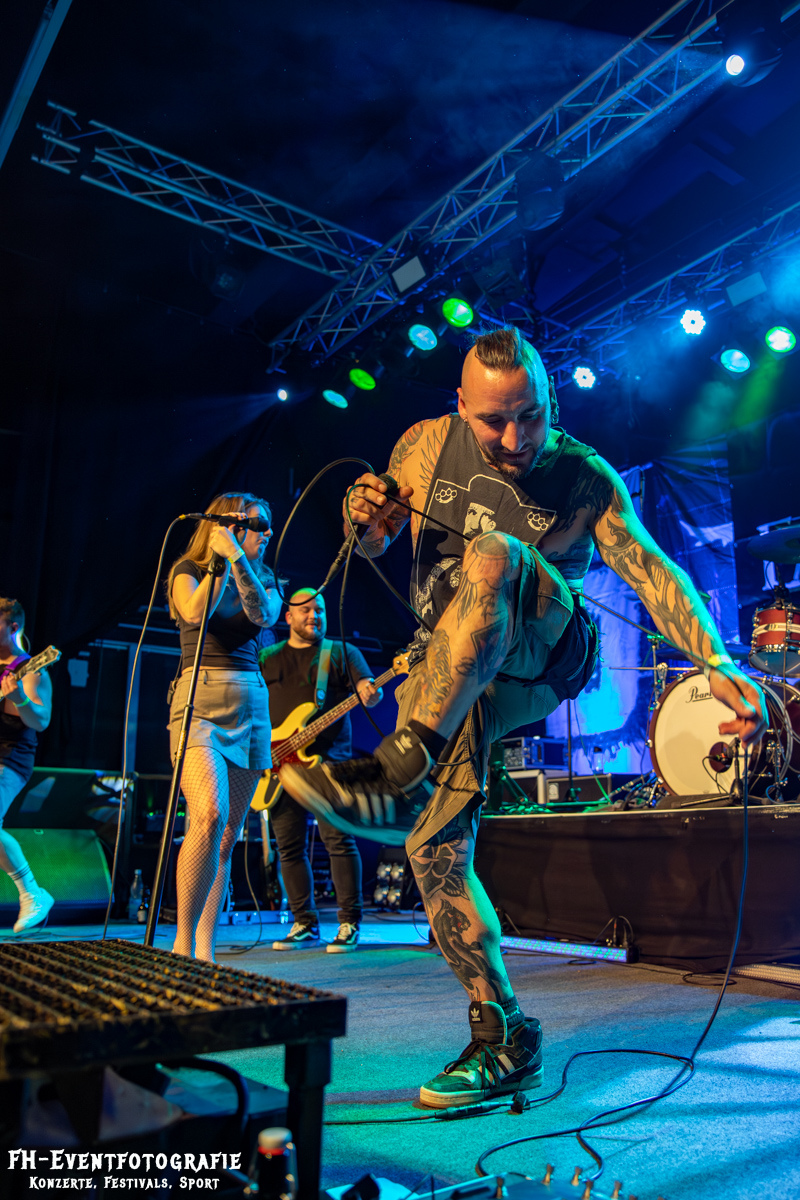 Während ihres 60-minütigen Slots konnte man den Musikern die Freude am Spielen ansehen. Vor allen Dingen der direkte Kontakt zu den Fans machte ihnen viel Spaß. Mussten Sie doch zu Hochzeiten der Pandemie (2021) ein bestuhltes Konzert im Französischen Garten in Celle spielen, wobei die Interaktionen doch sehr stark eingeschränkt waren, so erinnerte sich Sänger Philipp.
