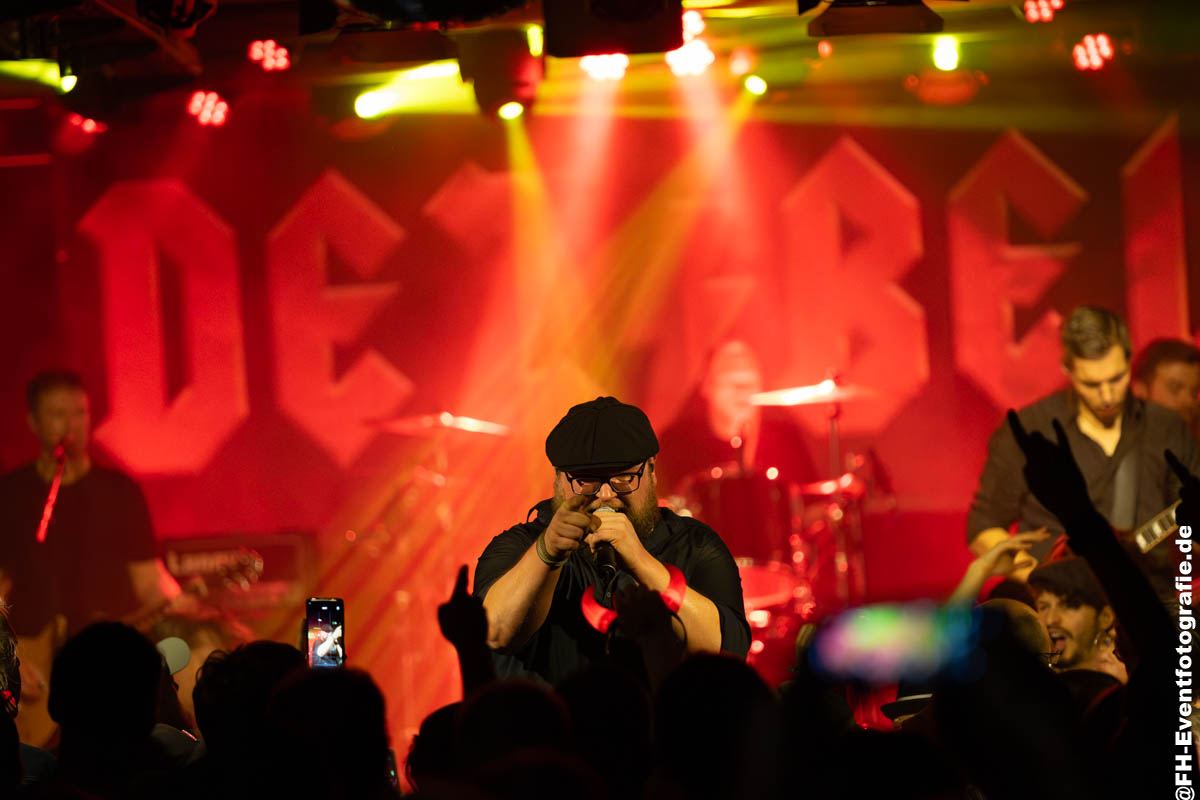 Nach ein, zwei Bierchen startete die zweite Zeitreise. Brian Johnson’s Zeit begann. Somit standen DEZIBEL – Tribute to AC/DC auf der Bühne und ebneten das Feld für den Test der Standfestigkeit des Gebäudes.