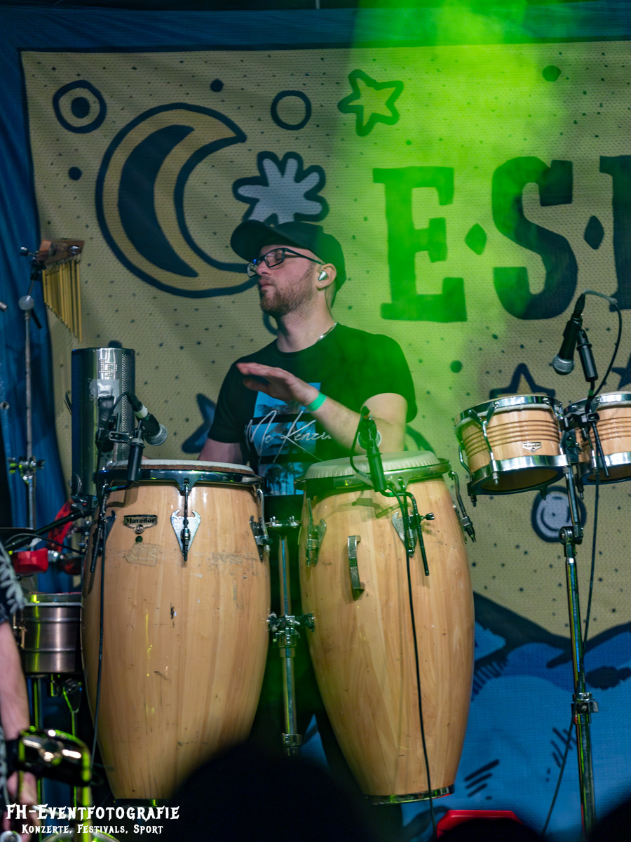 Als Eskorzo die Stage betraten, wurde das Publikum mit ihrer charakteristischen Mischung aus Latin, Reggae, Funk und Rock begeistert. Die Band, bestehend aus talentierten Musikern, zeigte von Anfang an eine beeindruckende Bühnenpräsenz, die das Publikum sofort in den Bann zog.