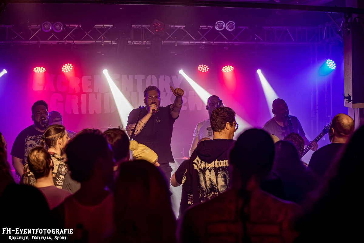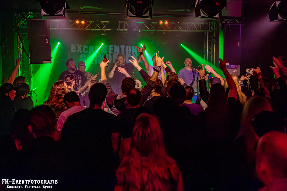 Was hatten wir denn da? Eine Band aus Wolfsburg, eine Band aus Wolfsburgern und Braunschweigern und, alle ganz tapfer sein und zwinkern, eine Band aus Hannover. Die herrlich Irren aus der Landeshauptstadt namentlich Excrementory Grindfuckers hatten ein Konzert im B58 für notwendig erachtet. Gute Sache das. Spass gemacht hatte es und dazu war es trotz eisiger Außentemperaturen eine echt heiße Angelegenheit. Beschlagene Brillen Garantie. Trotz, dass die Braunschweiger ja immer etwas zurückhaltend sind, gab es einiges an Schweiß, der das B58 in einen leicht stickigen Luftsumpf verwandelte.