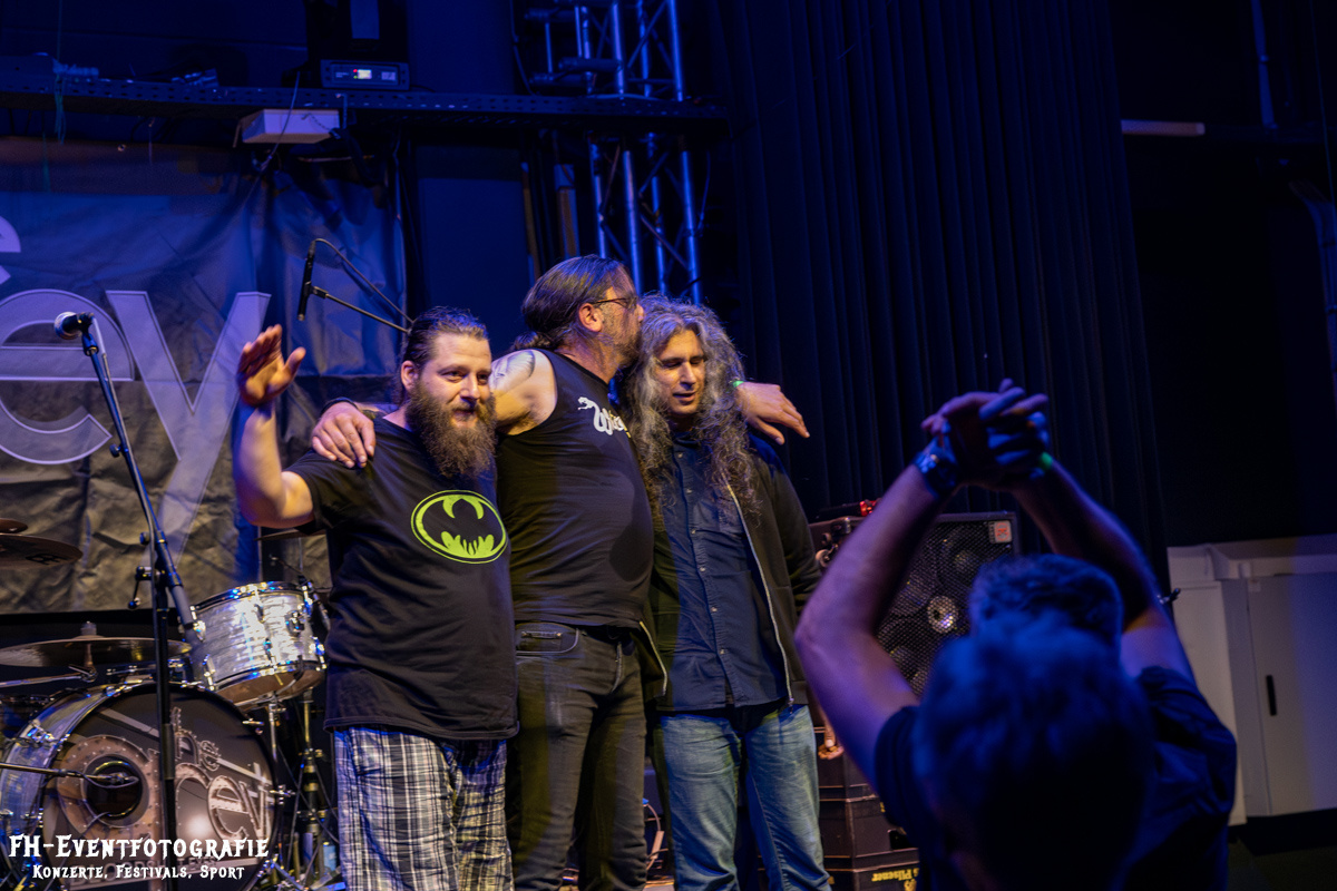 Den Abend abschließen durften The Grey. Auch diese Band habe ich zuvor nur oft gelesen, aber noch nie gehört. War ein Fehler. Das ganze Machwerk, das ich da am Freitag im KufA Haus – Braunschweig erleben durfte, sprengt so ein klein wenig die Konventionen. Es war zugegebenermaßen, hin und wieder, für Teile des Publikums weniger eine Feier bare, denn eher eine Zelebrier bare Musik. Die Band besteht aus einem Schlagzeuger, einem Bassgitarrenspieler und einem Gitarrenspieler. Den Gesang übernahm der Gitarrist und wurde von seinem Bruder am Bass dabei unterstützt. Deren Musik ging teils echt vorwärts und ich hatte den Eindruck, dass einige exakt wegen dieser Band da waren. Sie beschreiben sich wohl als Rock- oder Hardrockband. Gehe ich mit, aber wenn Ihr sie mal live seht, werdet ihr merken, dass keines der beiden Genres deren Musik gerecht wird. Das Ganze ist, nicht zuletzt wegen der spielerischen Brillanz des Bassisten und des Gesanges seines Bruders, weit mehr als etwas, das man in diese Genregrenzen packen kann.