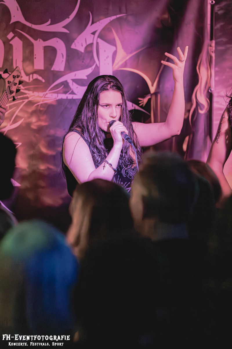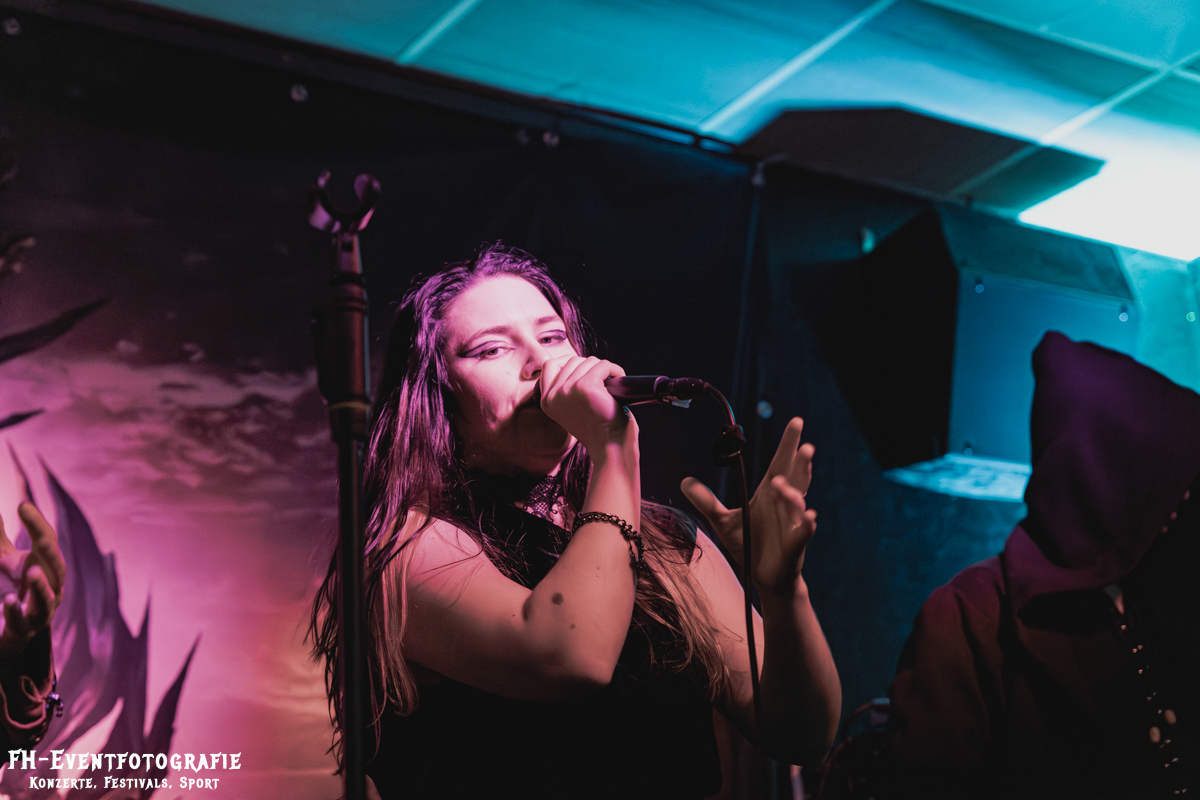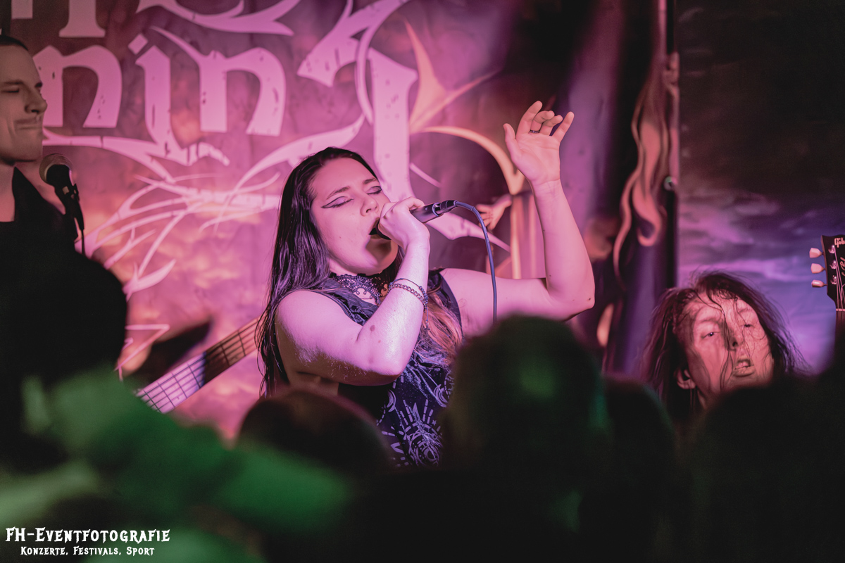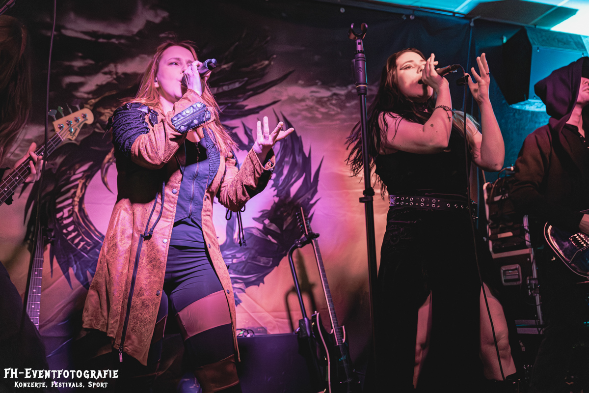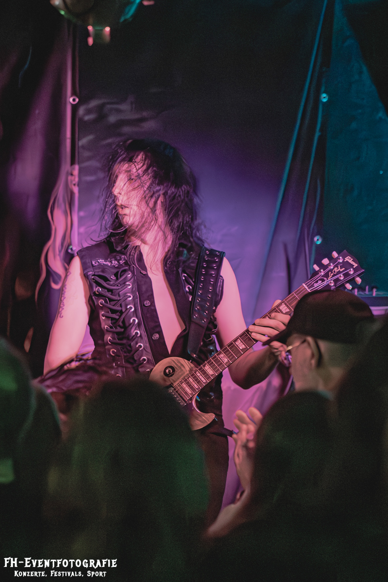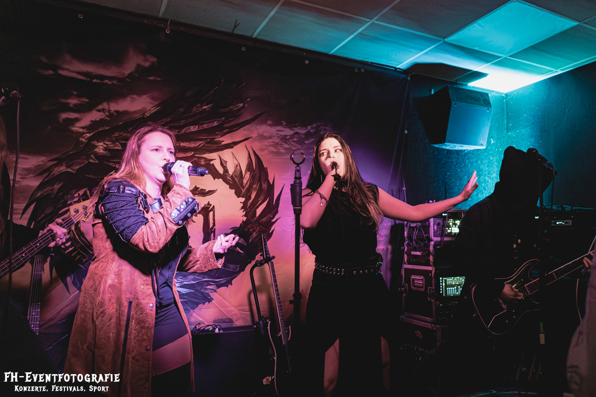 Die nächste Band ist, sowie alle Bands des Abends, mit dem Prädikat, unbedingt anschauen und anhören zu versehen. Auf die Bühne kamen »Dark Lightning«. Nach Melodic Metal kam nun Synphonic Metal. Nach ein klein wenig Ruhe an der Live-Front sind diese Musiker wieder zurück. Der »neue« Gitarrist ist nun Familienmitglied und, wie ich vor einiger Zeit schon schrieb, eine Verstärkung, die sich gewaschen hat. Neben »Metatron« an den Tasten haben alle Musiker in der Band eine Dynamik auf der Bühne, die sich wunderbar ergänzt. Allesamt spannen einen instrumentalen Teppich auf, den die beiden Stimmen der Band wunderbar tragen. Lea als die Hauptstimme und Frank, der neben dem Bass auch einige der Growls für die Ohren liefert.