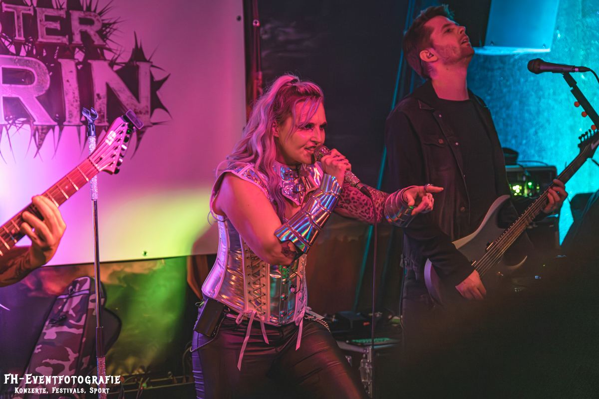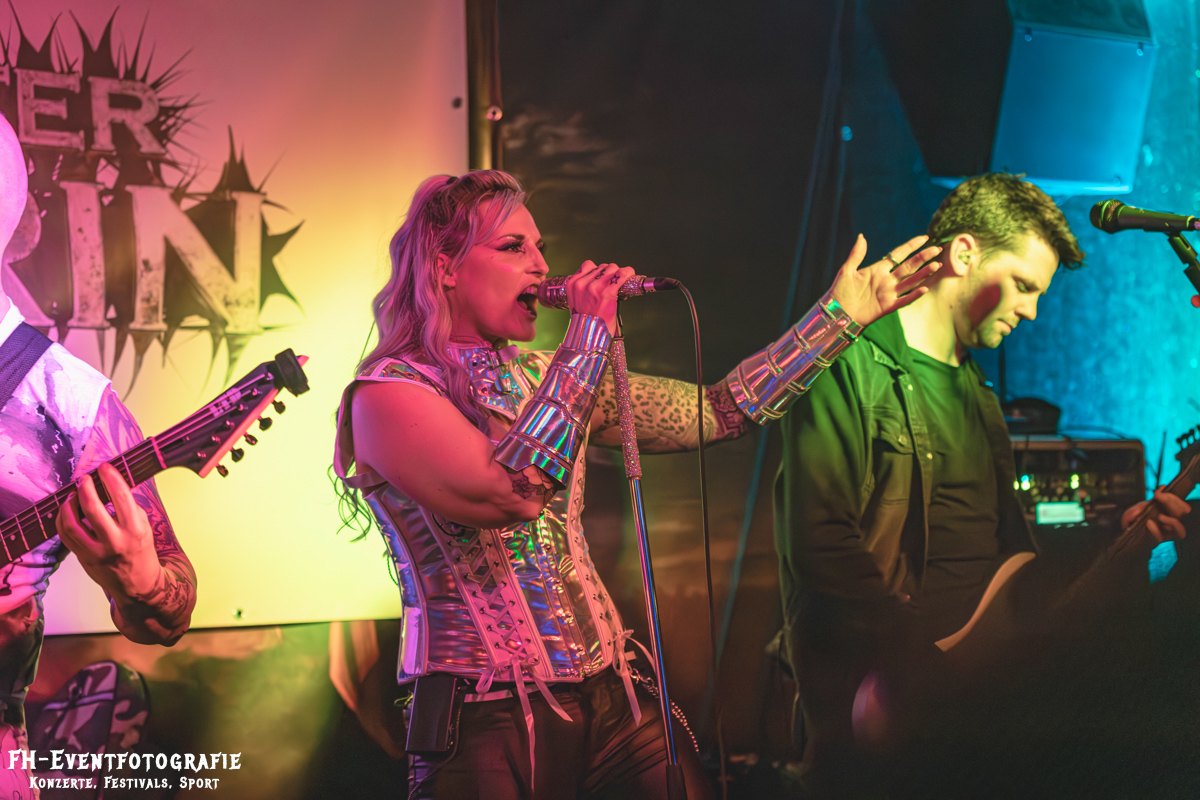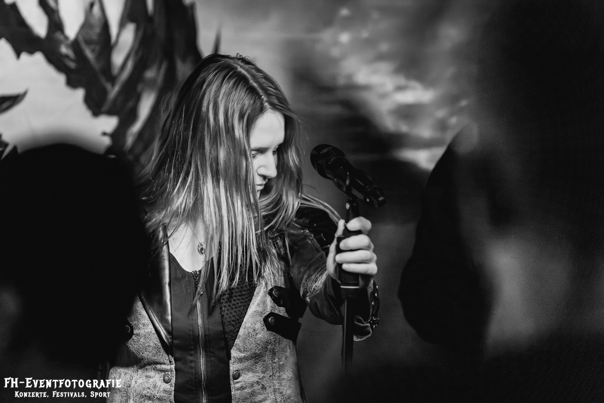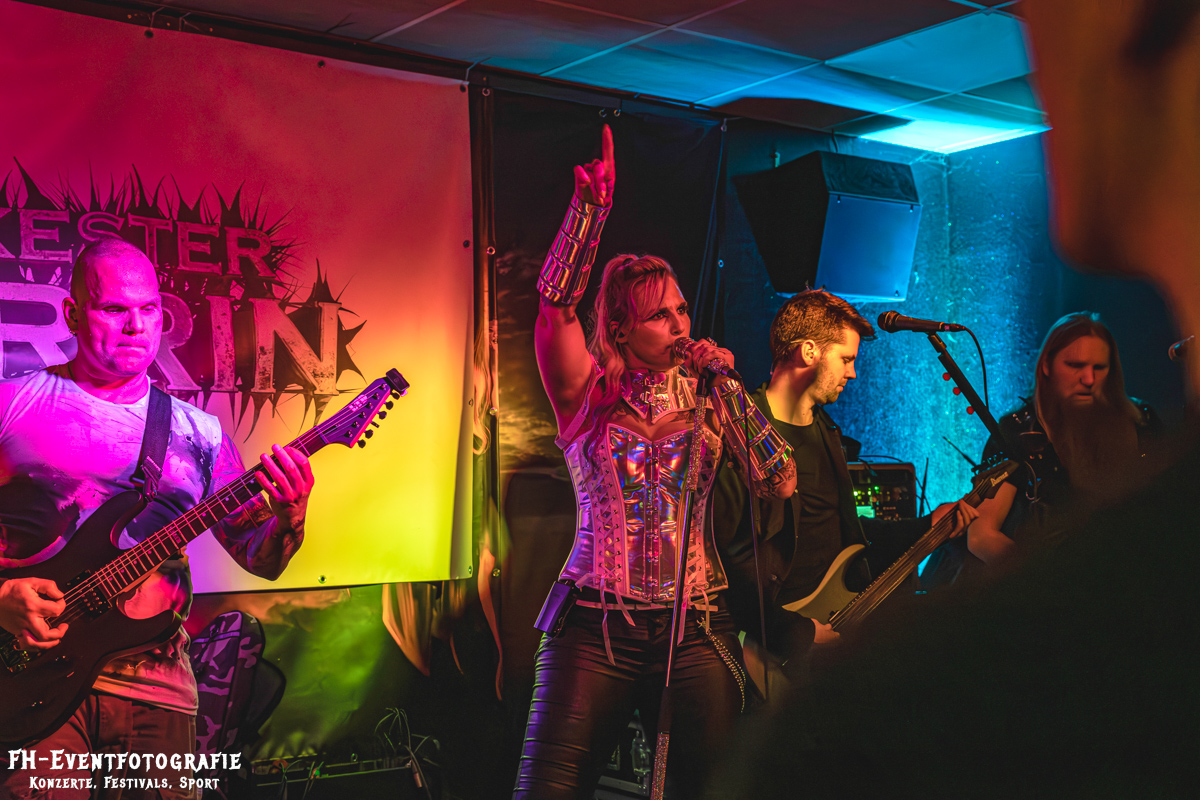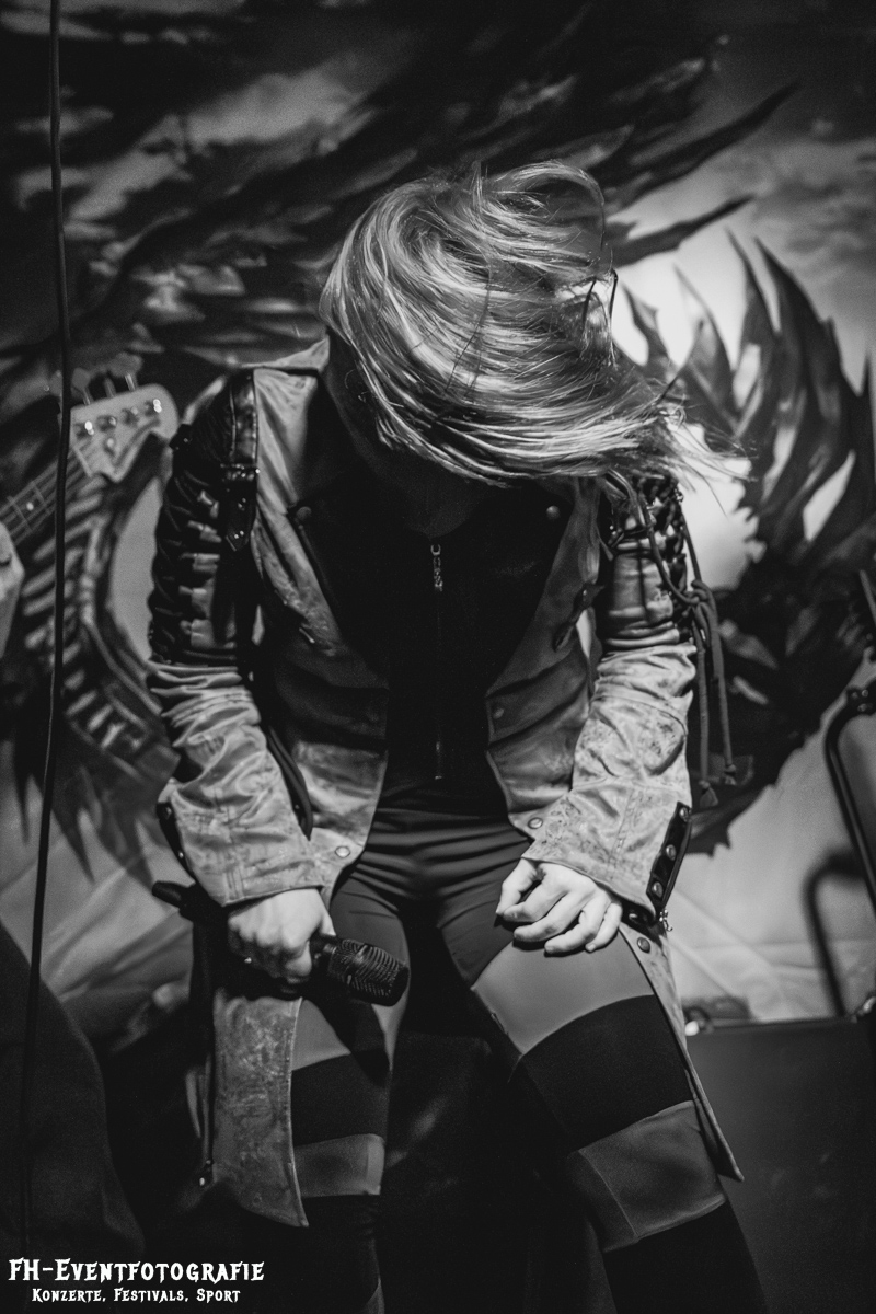 Die Ersten waren mit der Hildesheimer Band »Lankester Merrin« Neulinge in Hannovers Musikzirkus. Also, sie waren das erste Mal in Hannover auf einer Bühne vor Publikum. Eines Ihrer Alben haben sie im selben Studio aufgenommen, wie es so illustre Bands wie die »Grailknights« und »Drone« bereits gemacht haben. Ob sich da die Bands kennengelernt haben, vermag ich nicht zu sagen. Klingt aber naheliegend, in meinem Brausekopf zumindest. Aber egal, woher sie sich kennen, dass sie da waren und nicht in ihrer Heimat Hildesheim war Zucker. Power-Metal mit der gewissen Würze einer Powerfrau am Mikrofon und alles gewürzt mit reichlich geschmeidiger Menge an Melodic Metal. Schöne Kombi. Was wohl ihre Schüler sagen. Viele der jungen Menschen haben ja oft einen eher anderen Musikgeschmack. Ich hätte sie gerne als Lehrerin gehabt. Umgeben von einer üppigen Menge an Talenten. Wenn die alle zusammen was machen, kommt halt was Gutes dabei heraus. Unbedingt anhören und anschauen.