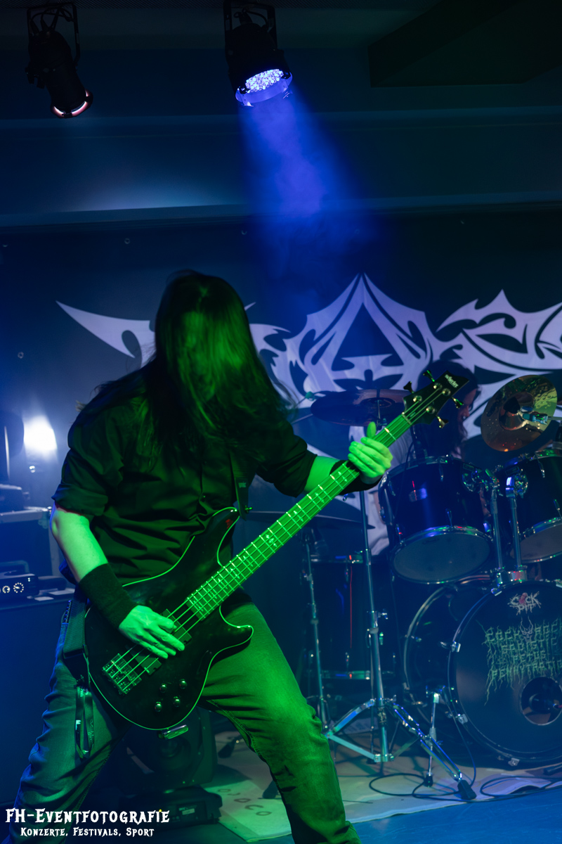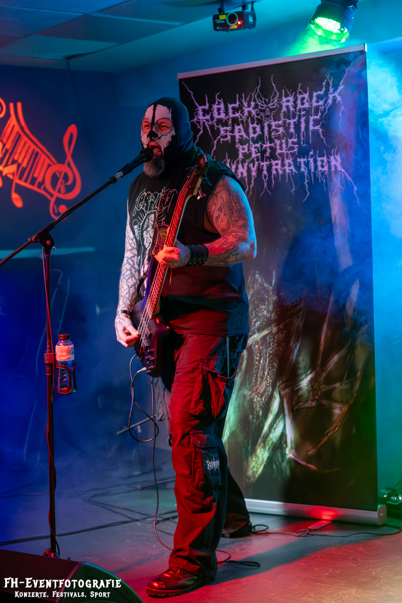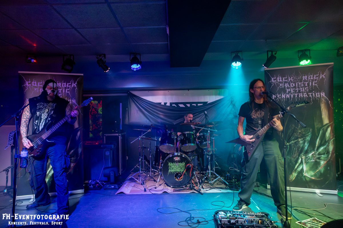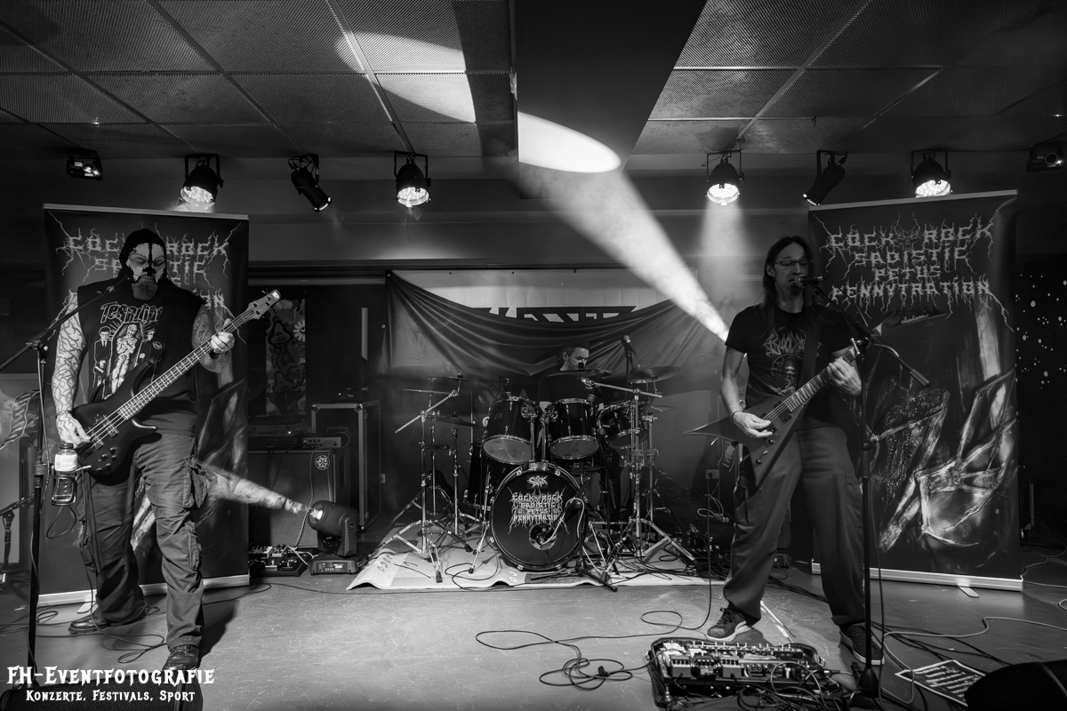 Die Eröffnung erfolgte durch CockRock Sadistic Petus Pennytration mit Death Metal aus Wolfsburg. Mit harten Klängen wurde das Publikum im Keller aufgeheizt.
