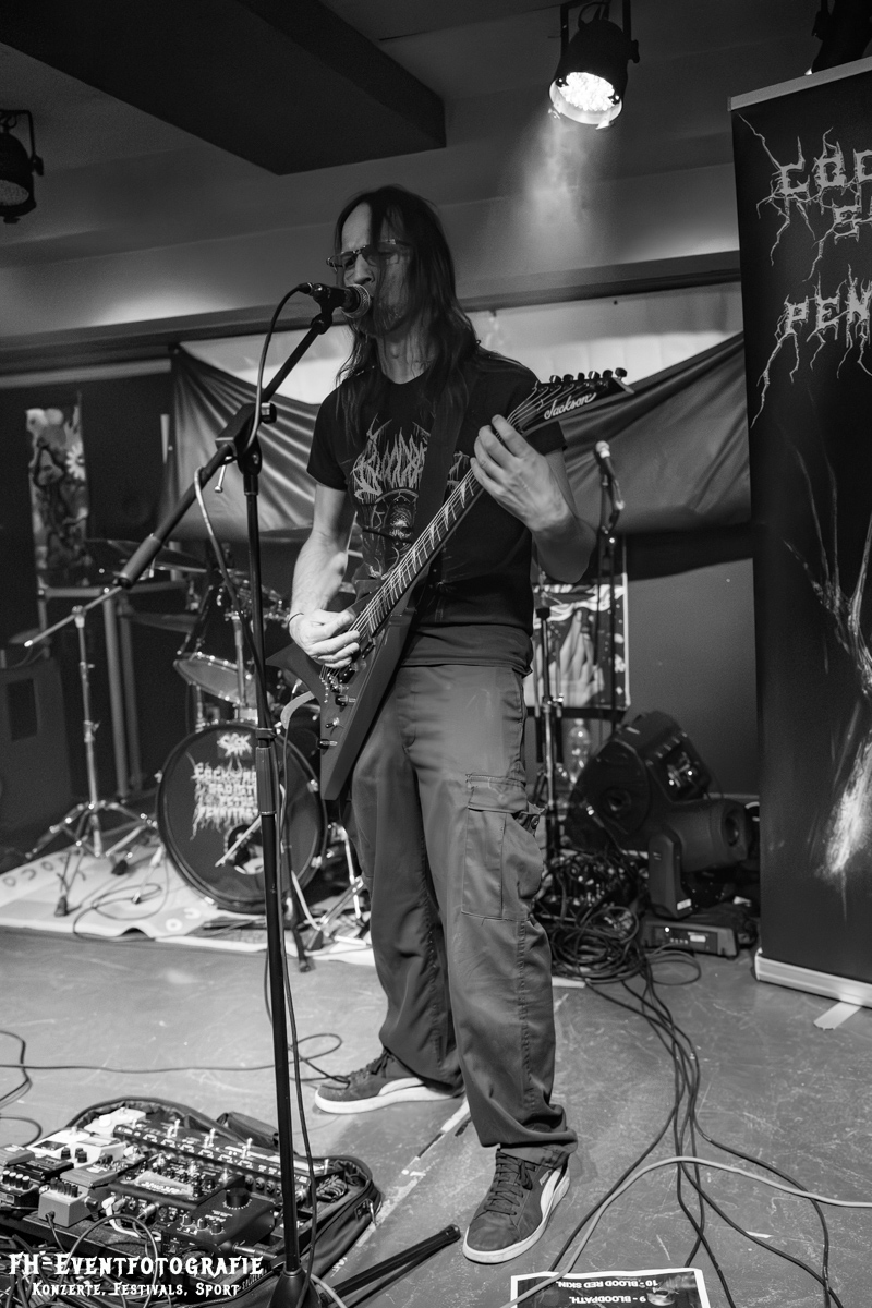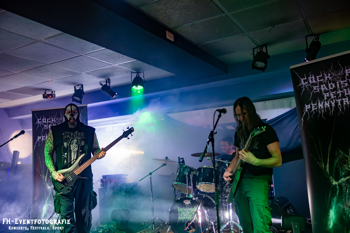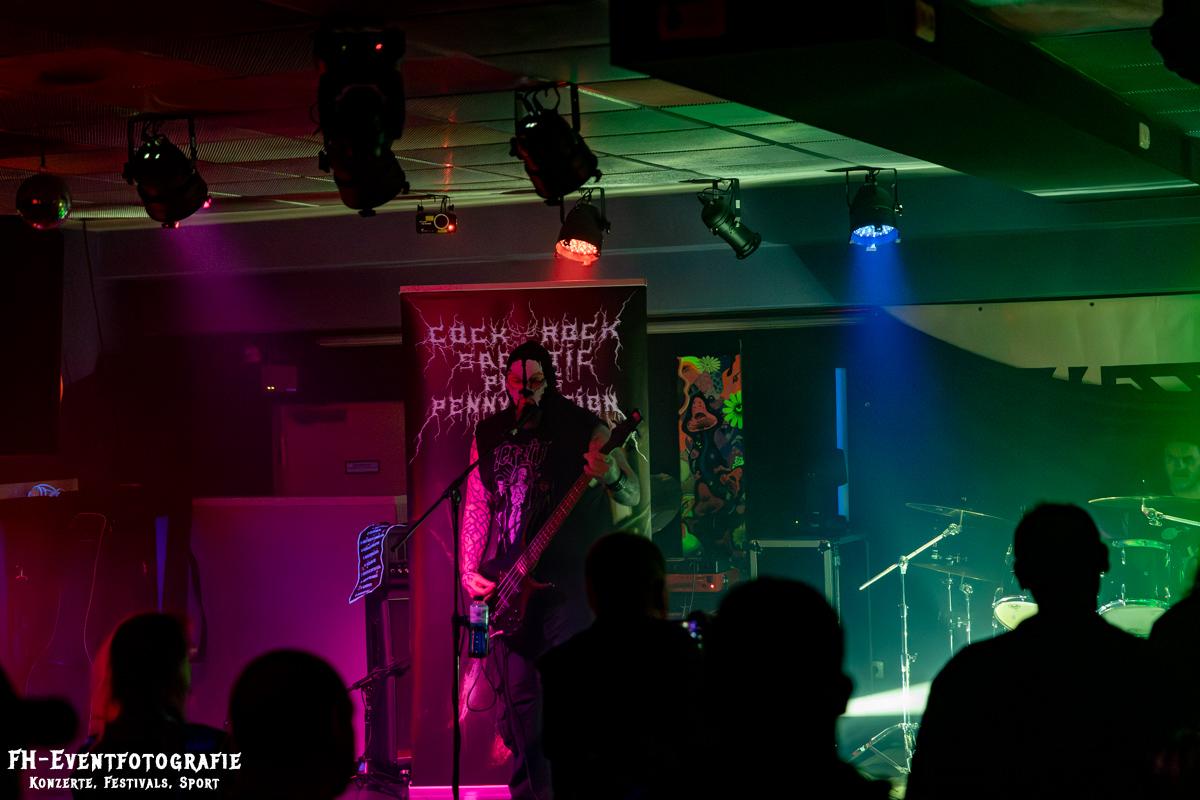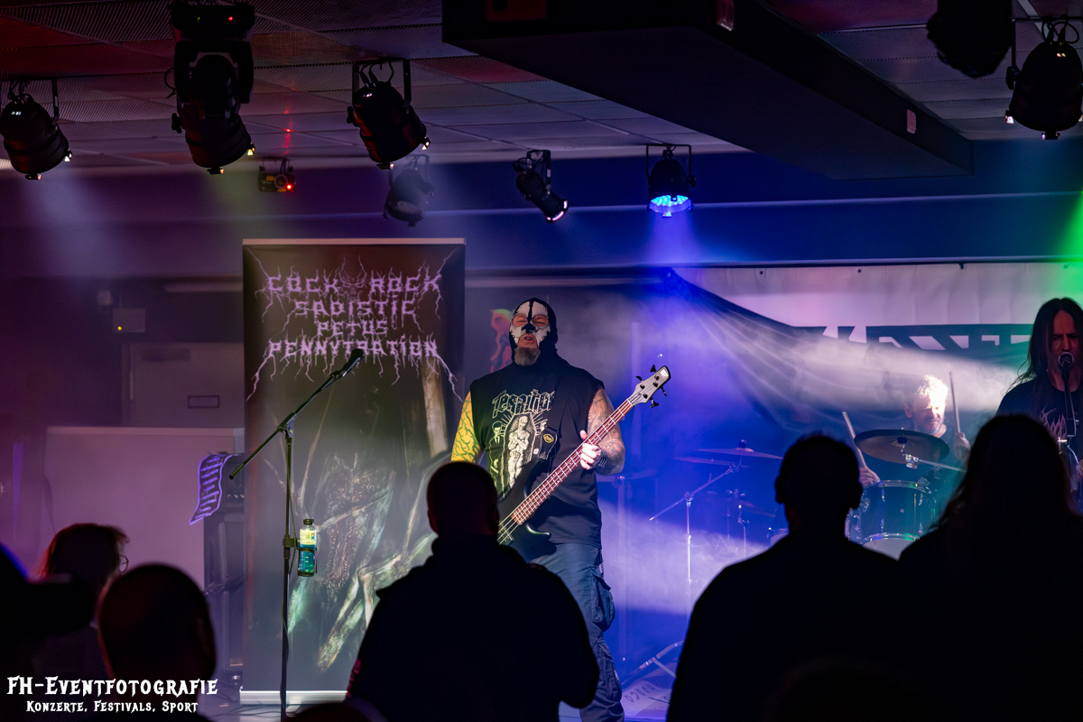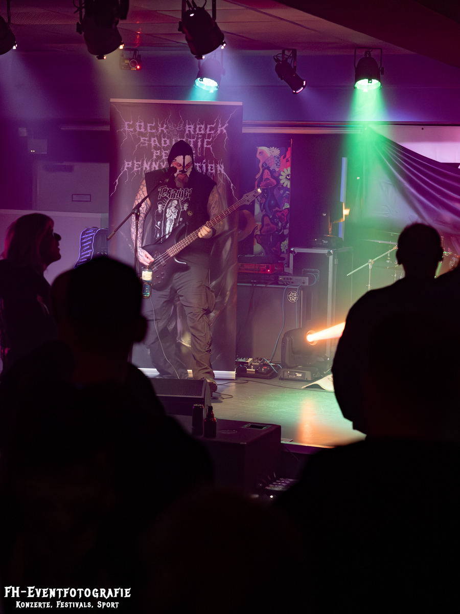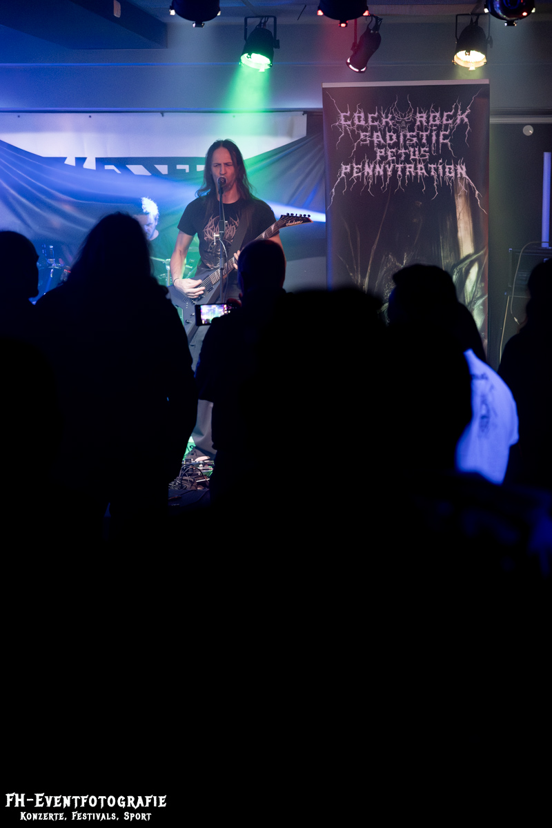 Die Eröffnung erfolgte durch CockRock Sadistic Petus Pennytration mit Death Metal aus Wolfsburg. Mit harten Klängen wurde das Publikum im Keller aufgeheizt.