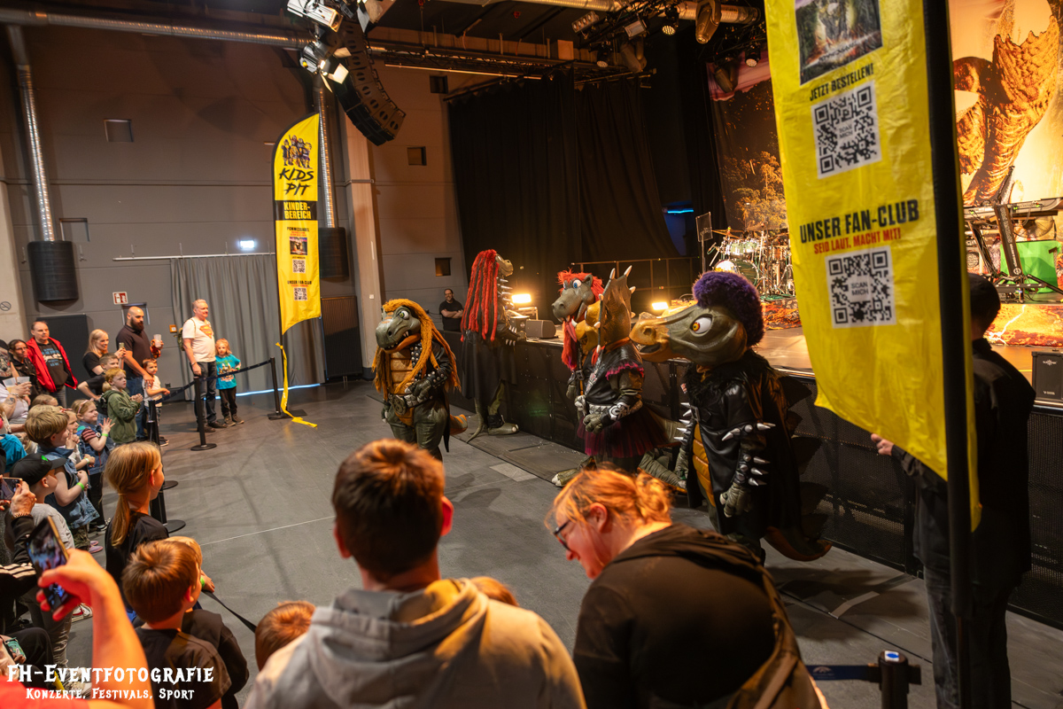 Ja, den ein oder anderen skeptischen Blick gab es, aber auch dieser skeptische Blick verflog nach wenigen Songs. Die Kleinen, die sich trauten, hatten wieder die Möglichkeit, ohne dass Mama oder Papa wirklich eingreifen konnten und müssten, sich im Kids-Pit auszutoben. Was mir beim letzten Mal gar nicht aufgefallen war, möchte ich hier anbringen.