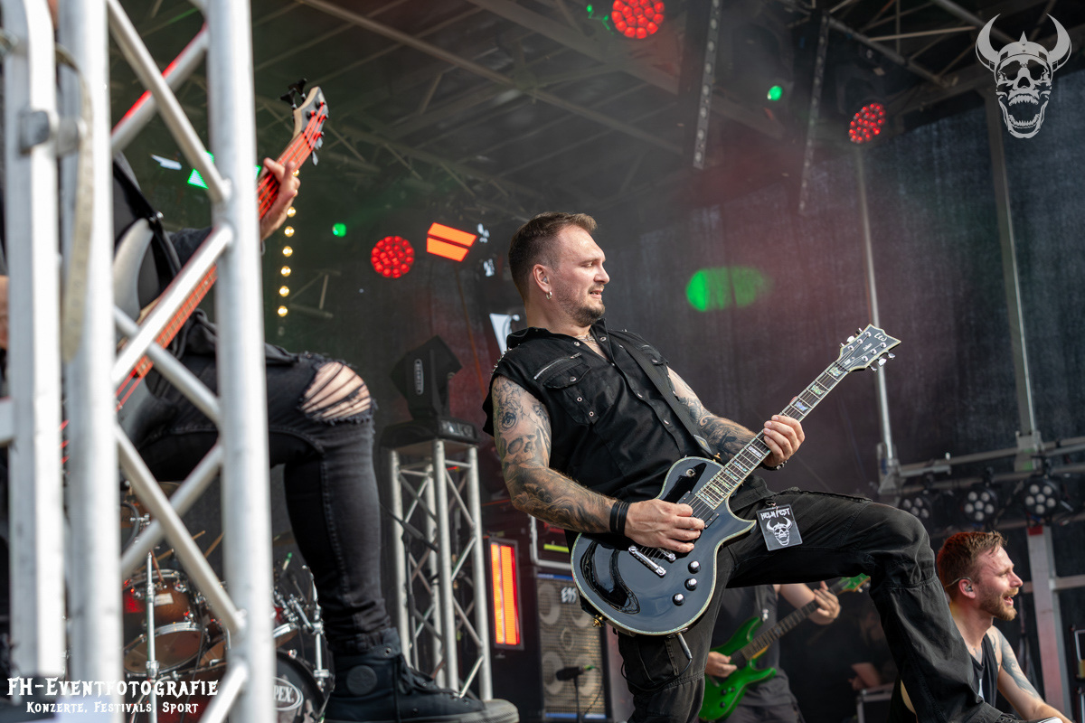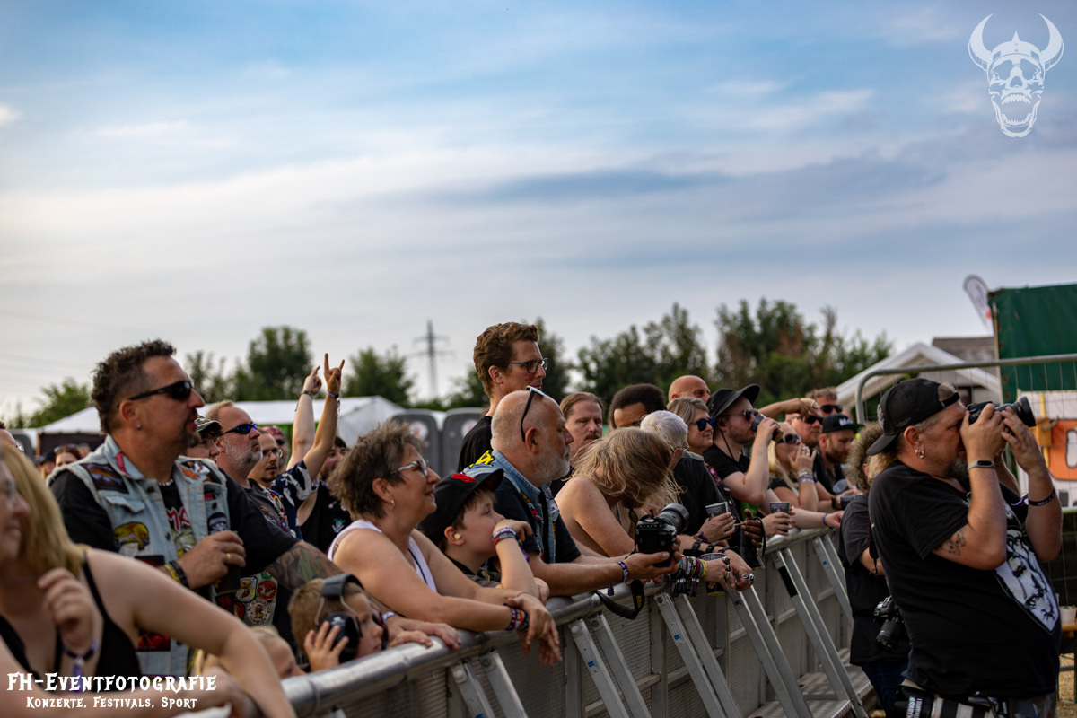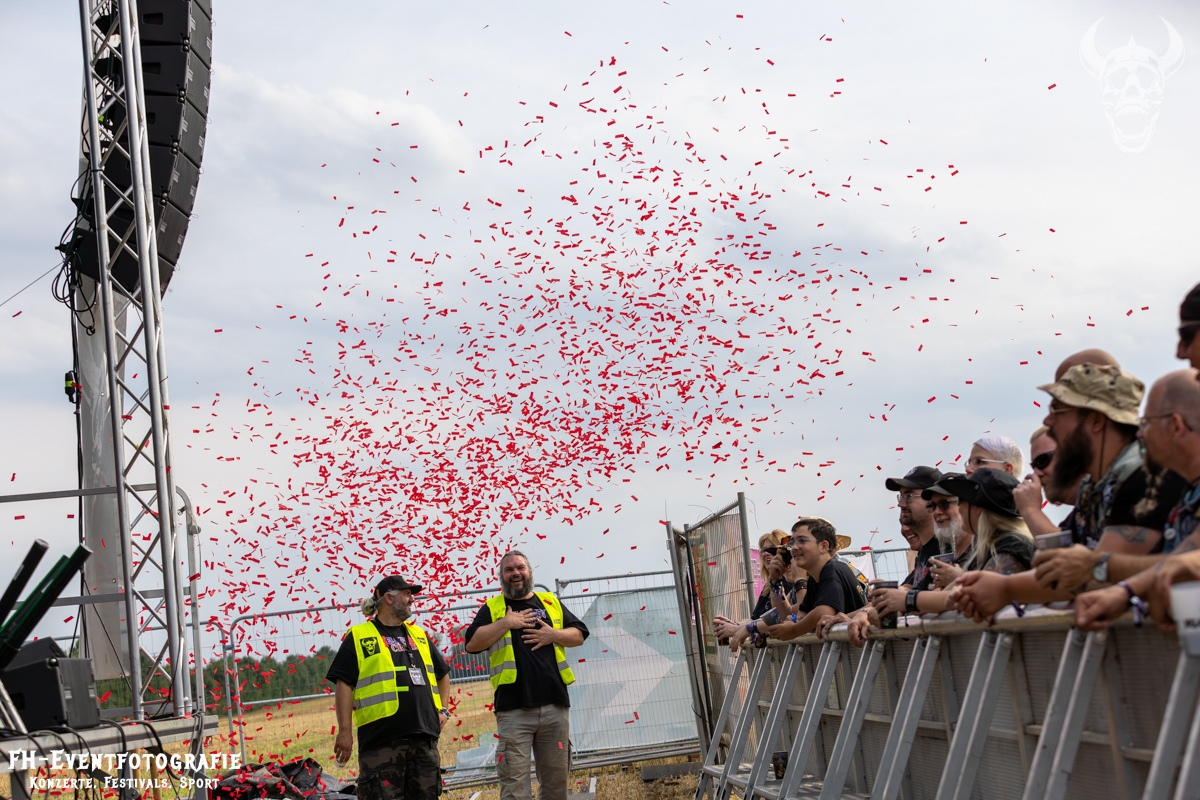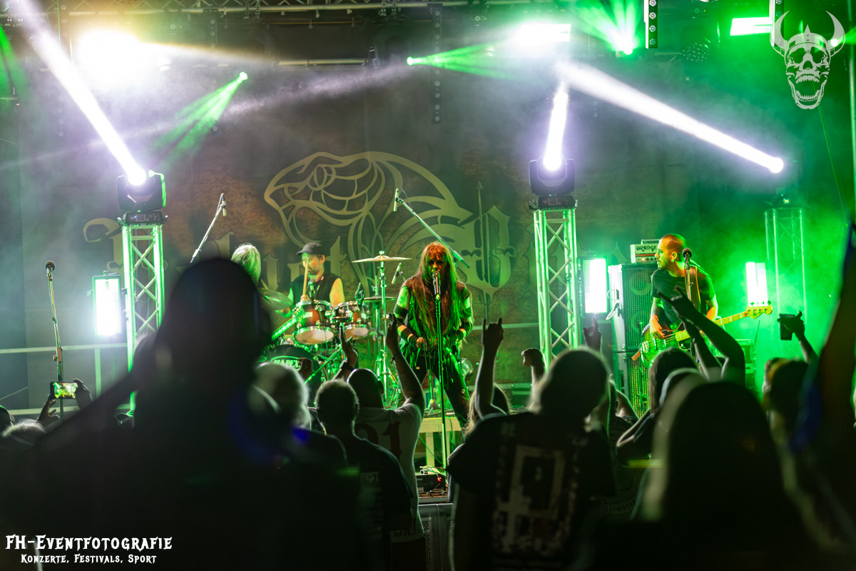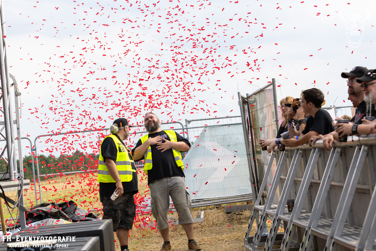 Kurz bevor Gefrierbrand die Stage betrat, öffnete der Himmel seine Schleusen und es begann stark zu regnen. Der Regen dauerte Stunden und hörte erst am frühen Freitagmorgen auf. Bereits 2022 waren Gefrierbrand zu Gast in Büdenstedt, damals allerdings zum Helmoween im Rathaussaal von Büddenstedt.