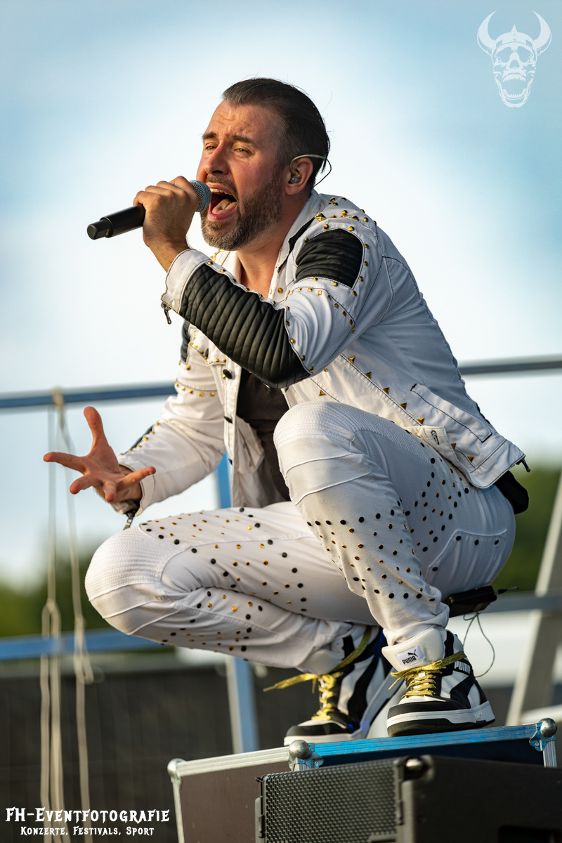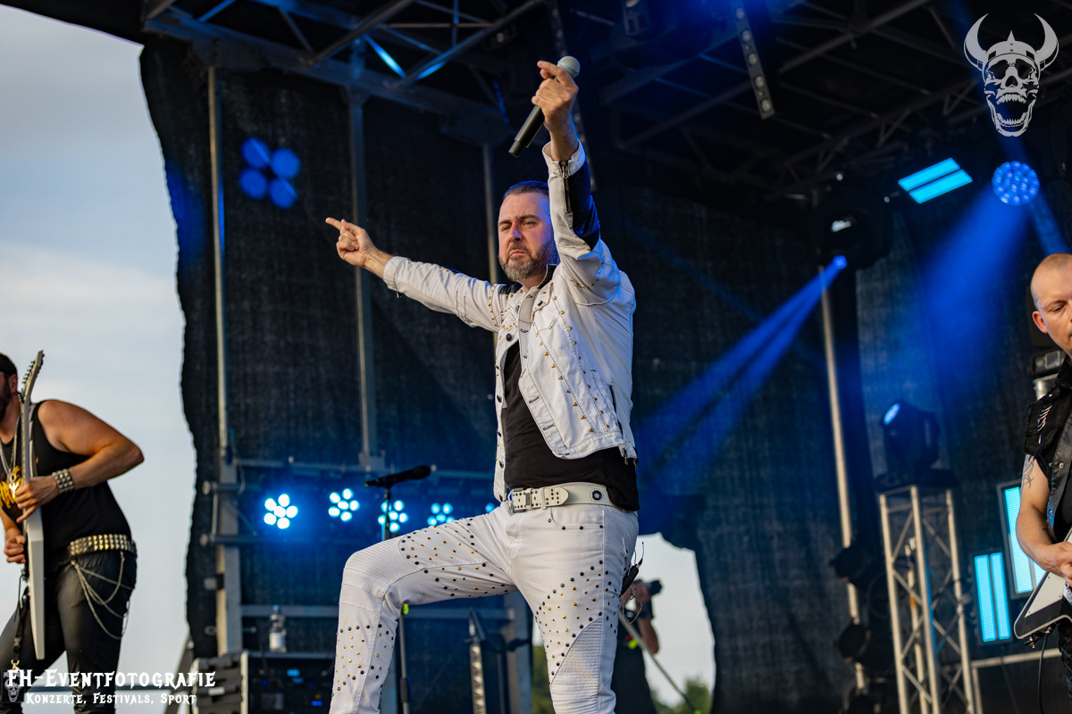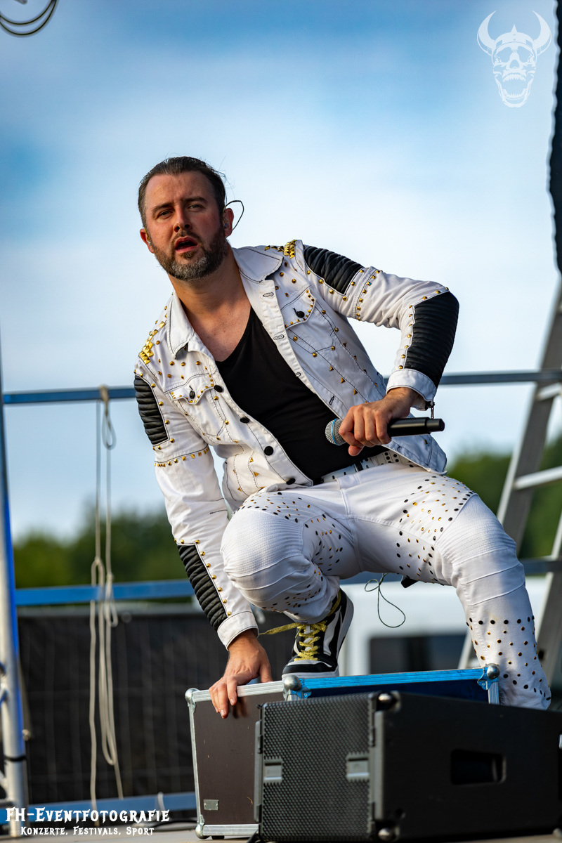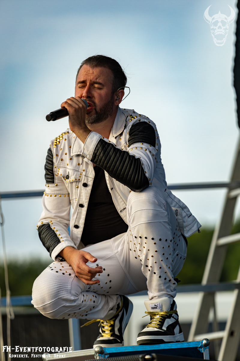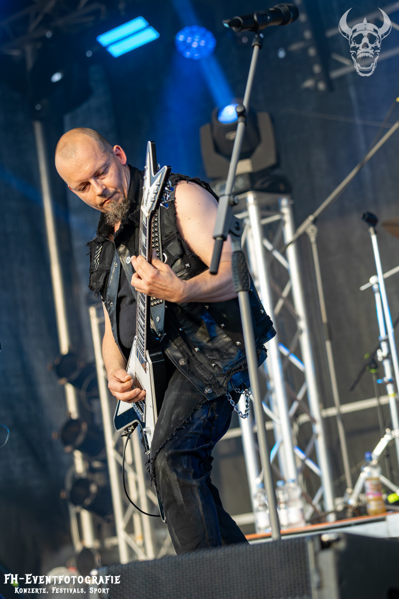 Kurz bevor Gefrierbrand die Stage betrat, öffnete der Himmel seine Schleusen und es begann stark zu regnen. Der Regen dauerte Stunden und hörte erst am frühen Freitagmorgen auf. Bereits 2022 waren Gefrierbrand zu Gast in Büdenstedt, damals allerdings zum Helmoween im Rathaussaal von Büddenstedt.