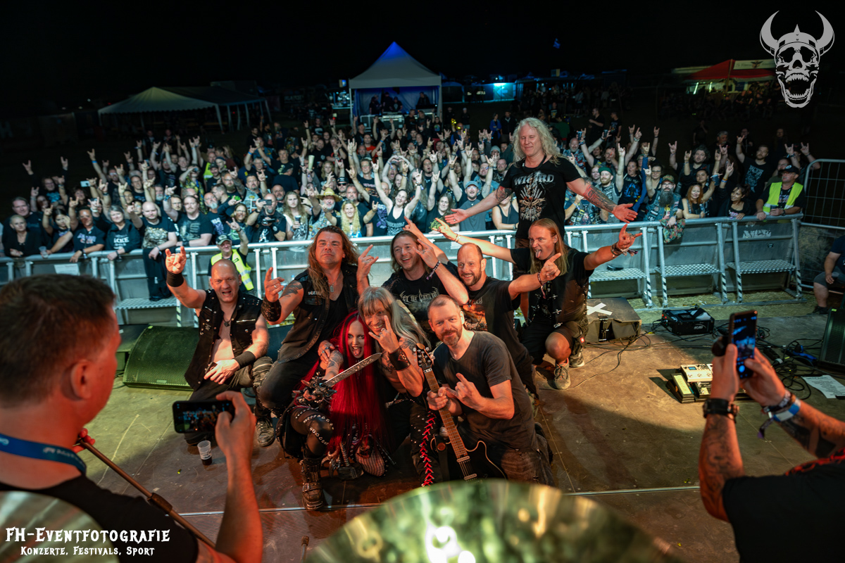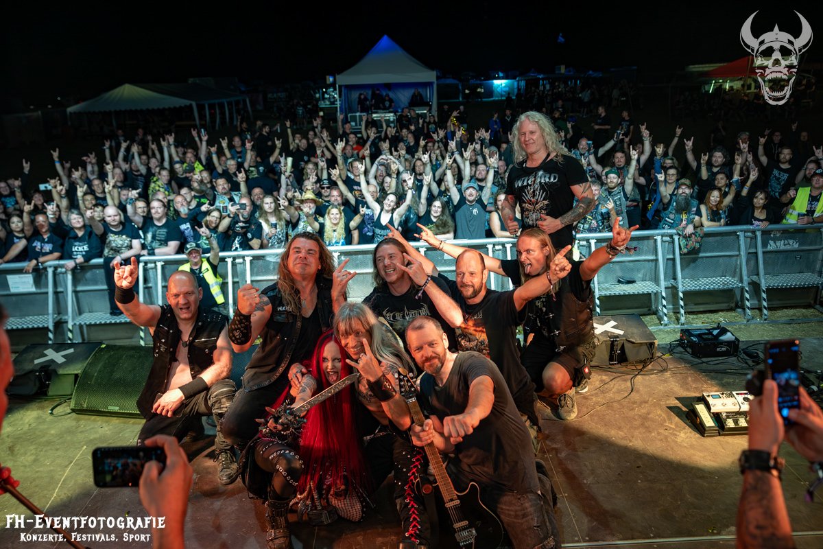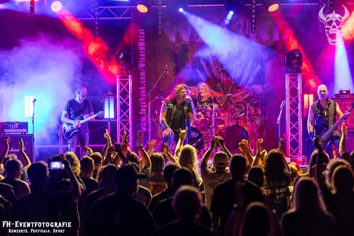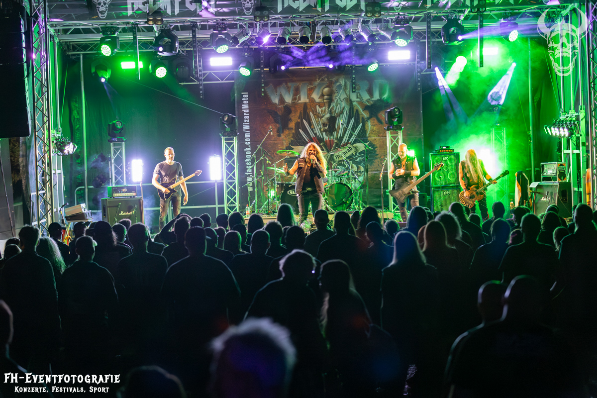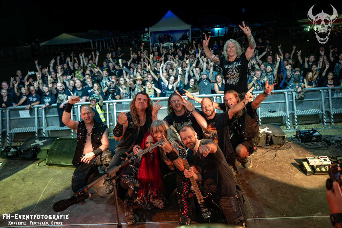 Bereits 35 Jahre stehen die nächsten Musiker auf der Bühne. 35 Jahre feinster Heavy Metal aus Deutschland. Nach einem Ausflug ins Freibad kamen WIZARD abgekühlt zum Festivalgelände. Dort erwartete Sie schon ein weit gereister Gast! Ein weiblicher Fan nahm die Reise aus Japan auf sich, um in Büddenstedt WIZARD auf der Bühne erleben zu dürfen und das durfte sie dann auch. Kurz vor Ende betrat sie die Bühne und feierte mit der Band. Natürlich wurde ein ausführliches Meet and Greet organisiert!