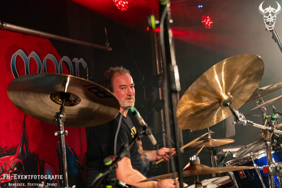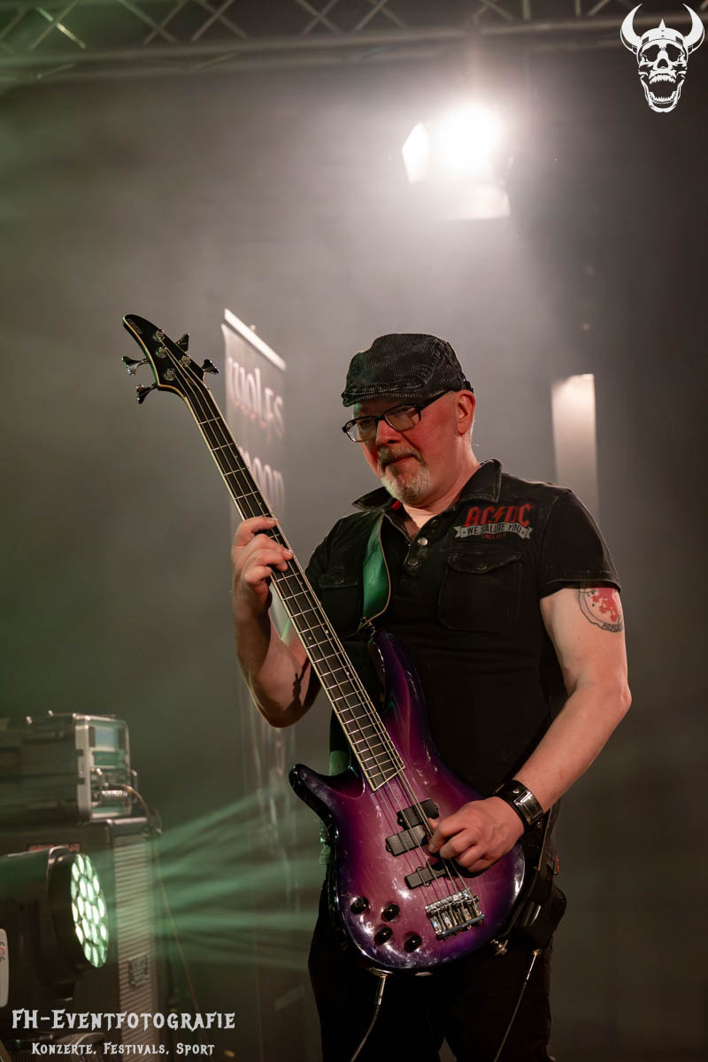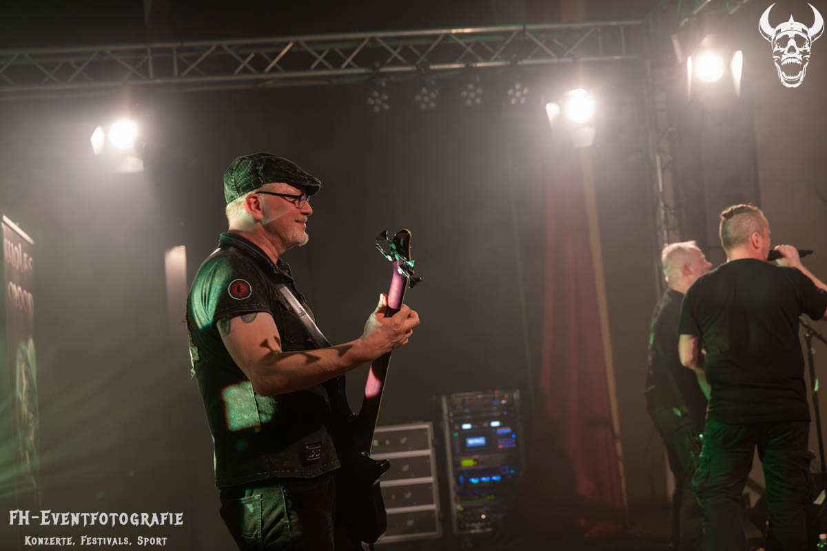 Den vorletzten Gig des Abends gaben Wolfs Moon. Nachdem es von Coverbands, Bands, die sich durchaus auch im Sprechgesang heimisch fühlen dürfen, und Alternativrock ging, schloss sich der Kreis mit den Helmstedtern wieder und es ging zurück an die Basis des Heavy Metal.