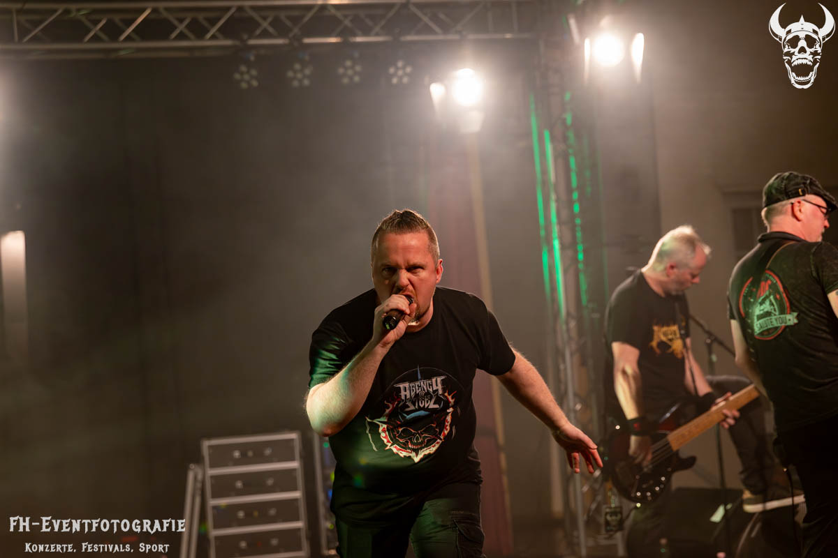 Nachdem der großartige Nachwuchs »The Schüler Band« den musikalischen Anfang gemacht hatte und sich das werte Volk auf die drei Teile der Location verteilt hatte, lockte dann ab 17 Uhr Agency Of Steel die Besucher wieder in den großen Saal.