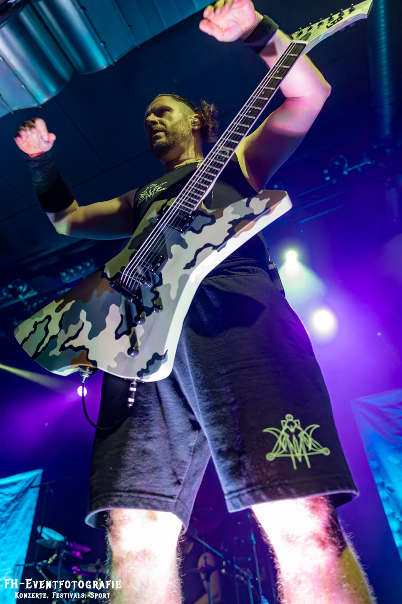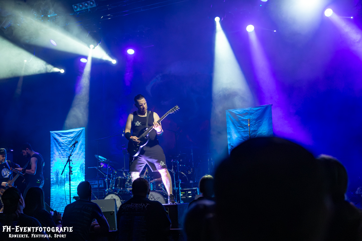 Zugegeben, KIs sind schon manchmal nützlich, aber hin und wieder auch gruselig. Aber in diesem Fall war die Arbeit der KI einfach nur großartig. Da die Dinger aber nur das machen, was man ihnen zuvor als Grundlage eingegeben hat, hat auch das was von Handwerk. Musik aus einer KI. Ich denke, das geht in solchen Fällen absolut klar. Dass die Braunschweiger auch handwerklich absolut wissen, was sie tun, bewiesen sie dann in den folgenden 35 Minuten. Sie spielten ein Brett nach dem anderen und gewannen schlussendlich sicher eine Menge neuer Fans dazu. Auch die Tontechnik arbeitete, samt Bedienpersonal, am Rande ihrer Möglichkeiten. Bands wie MEANS TO COLLAPSE müssen einfach noch viel größer werden. Daher ein Shoutout an Life Of Agony Famiglia, dass sie kleinere lokale Bands eine solche Bühne bieten.