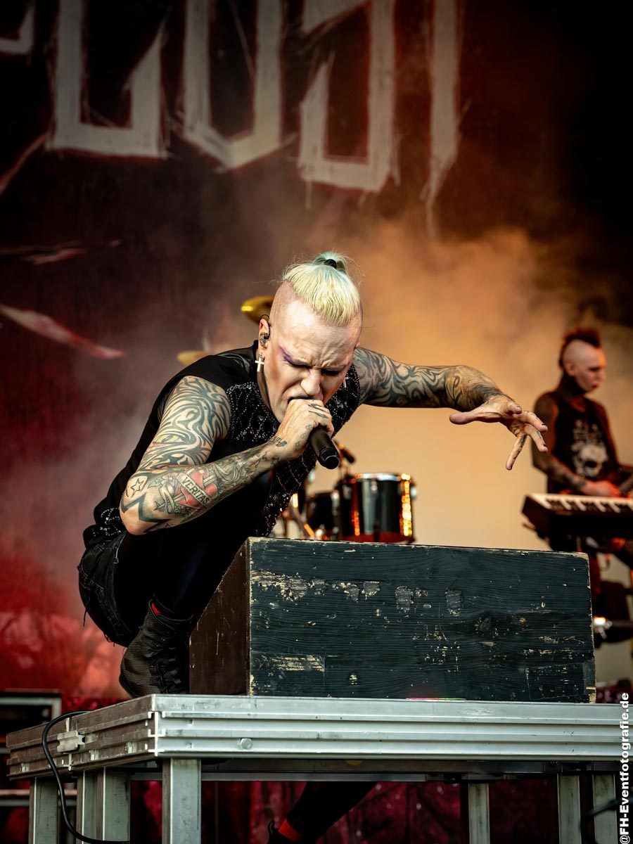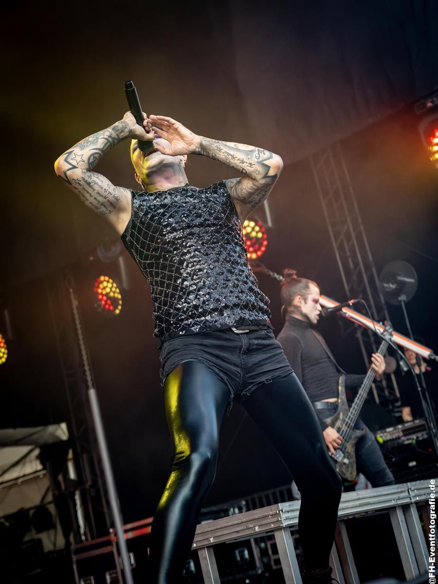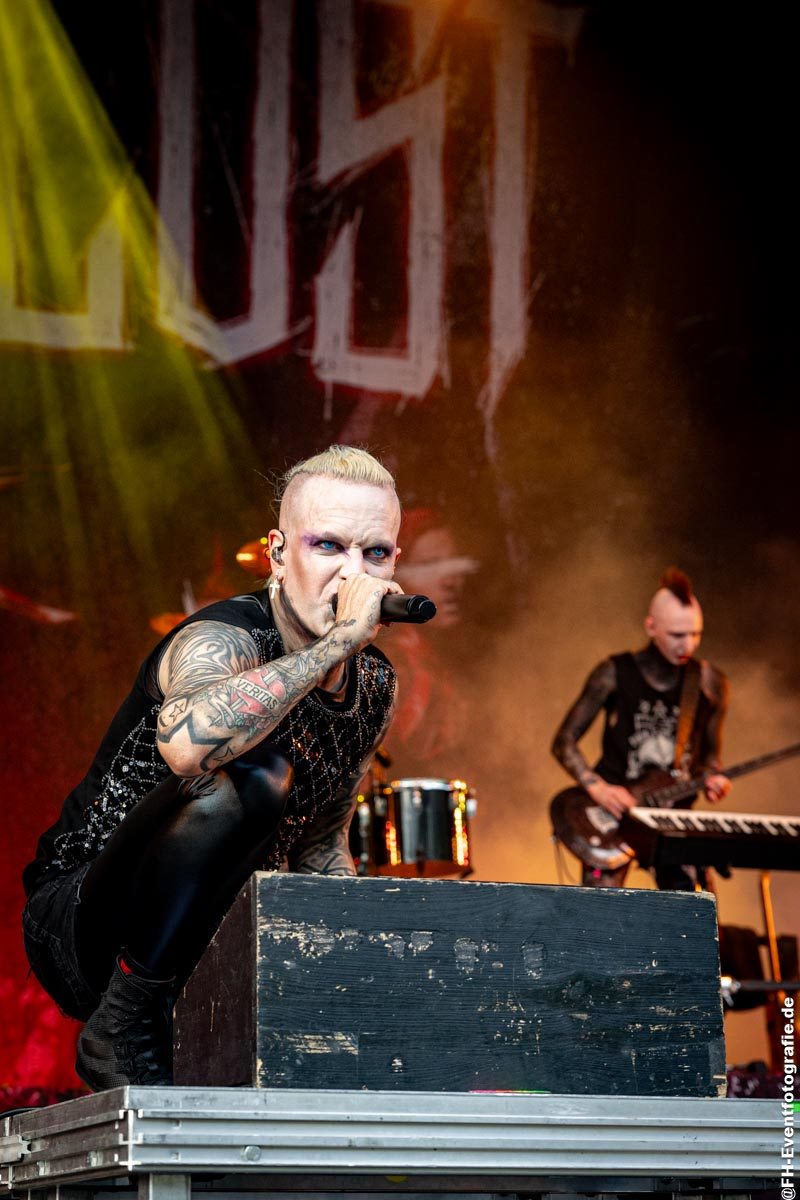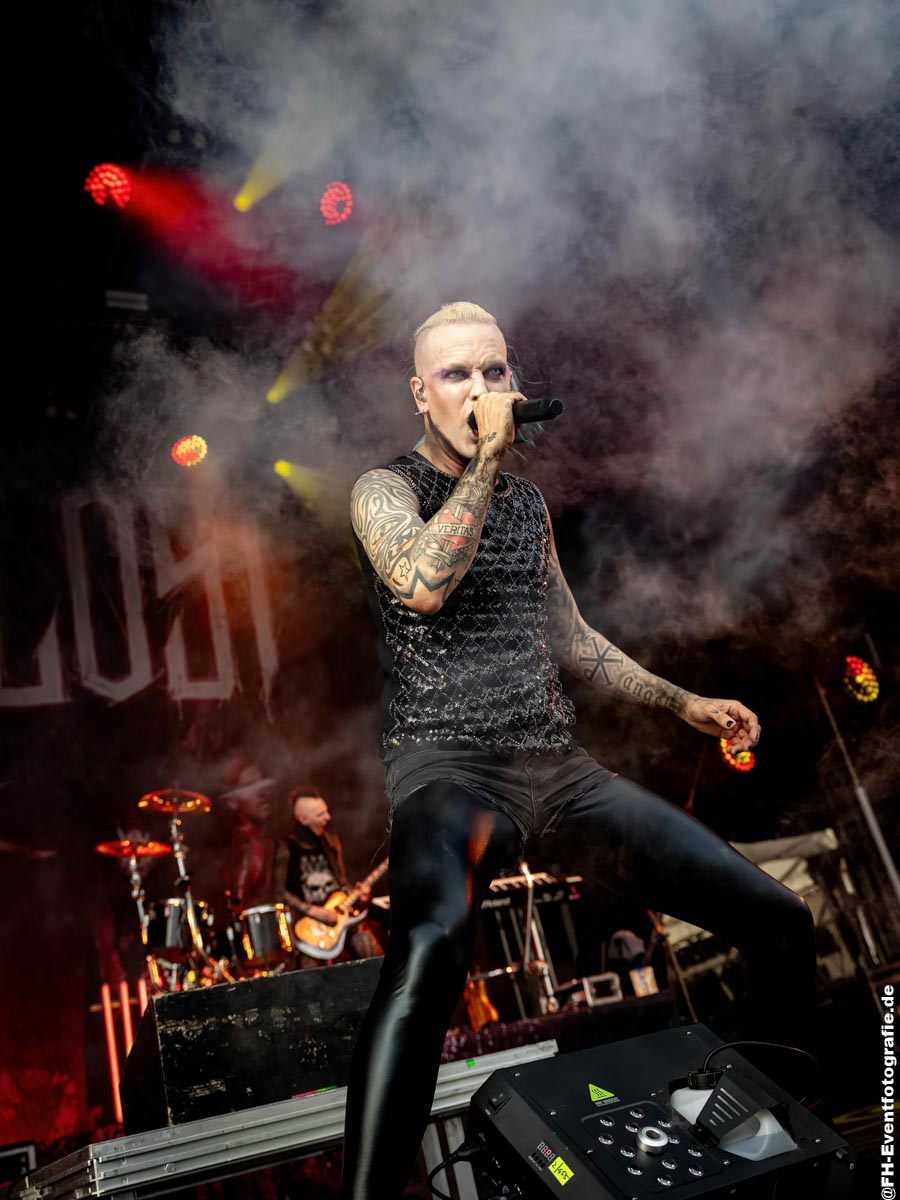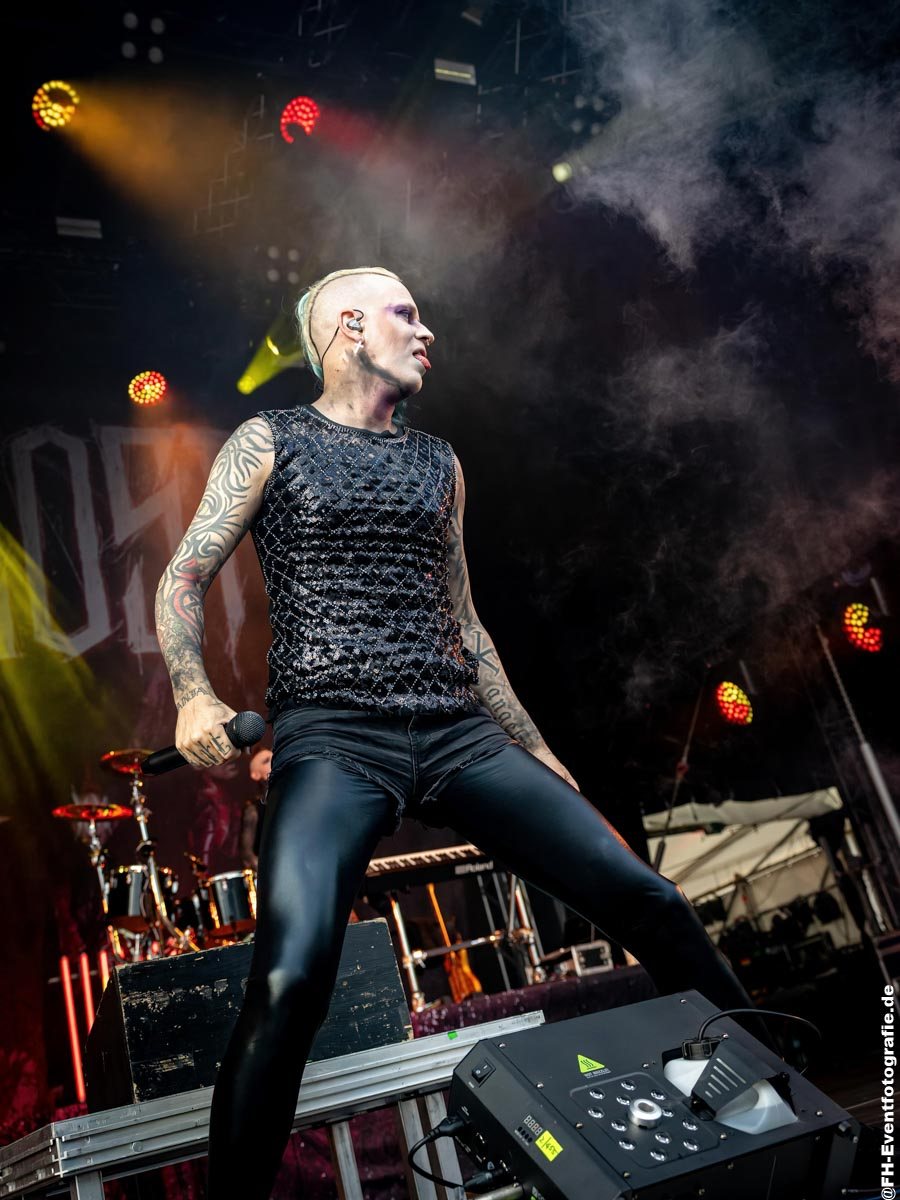 Der erste Eindruck auf dem Konzertgelände, war ernüchternd. Es war erstaunlich leer. Zumindest deutlich leerer als bei den Hollywood Vampires. Für den Tag waren laut Veranstalter gut 5000 Karten verkauft worden. Zu Anfang waren wohl rund 2500 Zuschauer auf dem Gelände und das sollte sich später auf bestimmt 4000 steigern. Die Lord of the Lost hatten es geschafft, praktisch nur wirkliche Fans zum Besuch in der Autostadt, zu animieren.