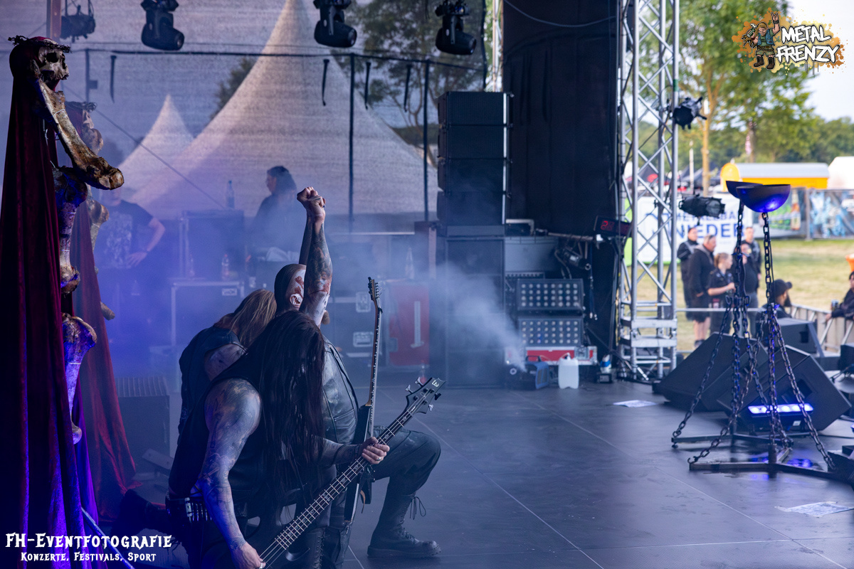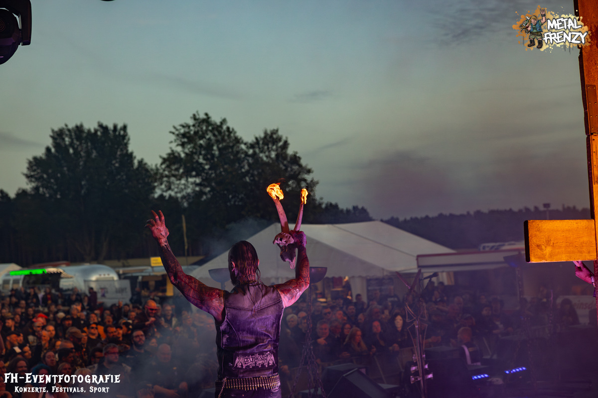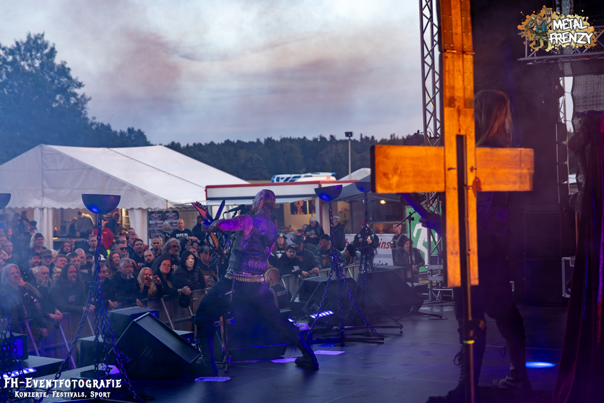 So, ab jetzt war Schluss mit lustig. Jetzt gab es auch ein Jubiläum, also sowas Ähnliches. Auf der Bühne erschien Belphegor. Ein Künstler, der bereits auf dem ersten Metal Frenzy 2014 spielte. In den Papieren steht »Diabloical Black Death Metal« und alter Verwalter, diabolisch waren die Klänge. Technisch zum Nachspielen teils ganz sicher die Hölle. Daher blieb mir nur das gelegentliche Schließen des Mundes und das Honorieren dieses Erzteufels. Eine Mega Bühnenshow. Die diabolisch gute Show und die dazugehörige Wall of Sound bannten die Fans vor der Bühne. Es war ein fast kathartisches Verweilen und Baden in dieser Show.