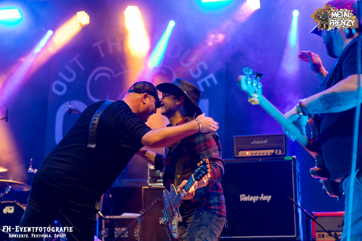 Dafür warteten die Herren Gesangsverein mit einem echten Weltstar als Gastmusiker auf. Sascha Paeth, seines Zeichens Gitarrist von Avantasia, Co-Produzent der selbigen, Produzent und Songwriter von vielen anderen großen Namen der Metalszene, tauchte unverhofft, mit einer Gitarre bewaffnet auf der Bühne auf. Und was tut er dann, er jammt tatsächlich ungeprobt mit den Herren von Out The Mouse.