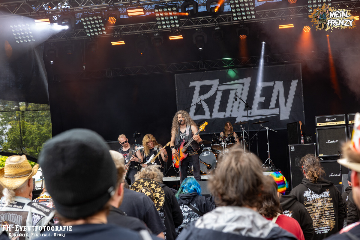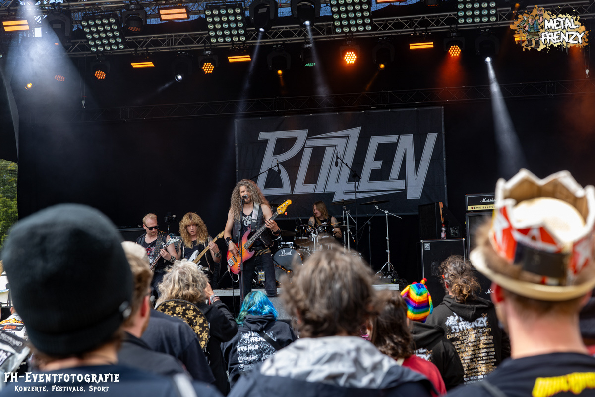 Die nächste Combo war eine Reminiszenz an die guten alten, echten und teils vermissten Zeiten des Heavy Metals. Blizzen traten mit Nieten, Leder und dazu allen Arten an Riffs und Spielarten an, die einen an die ganz lange verschütteten Wurzeln unseres Genres wieder denken ließen. Das war einfach perfekt, um zu genießen, den Headbangern beim Abgehen zuzuschauen und Bier zu trinken