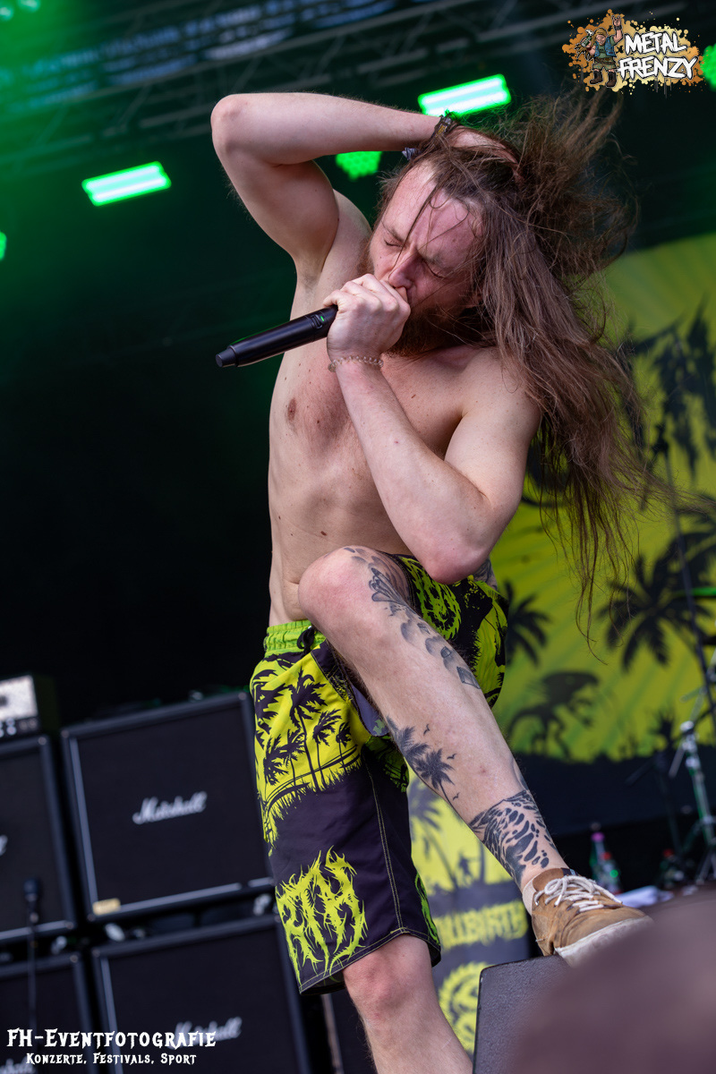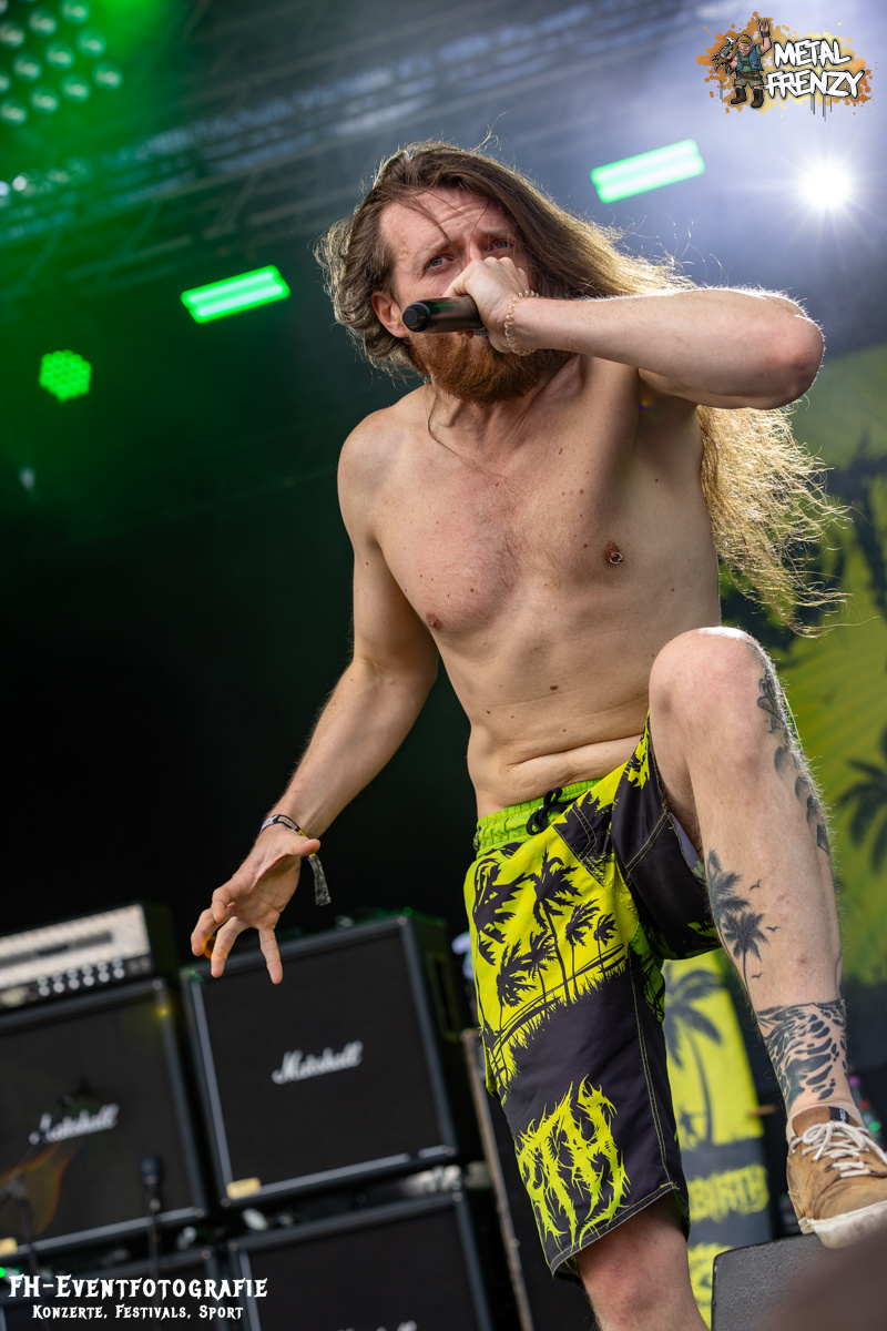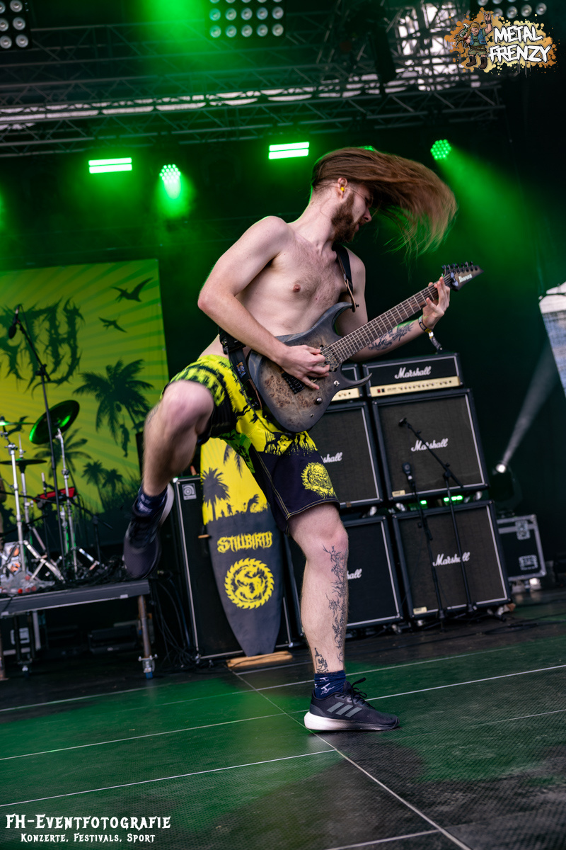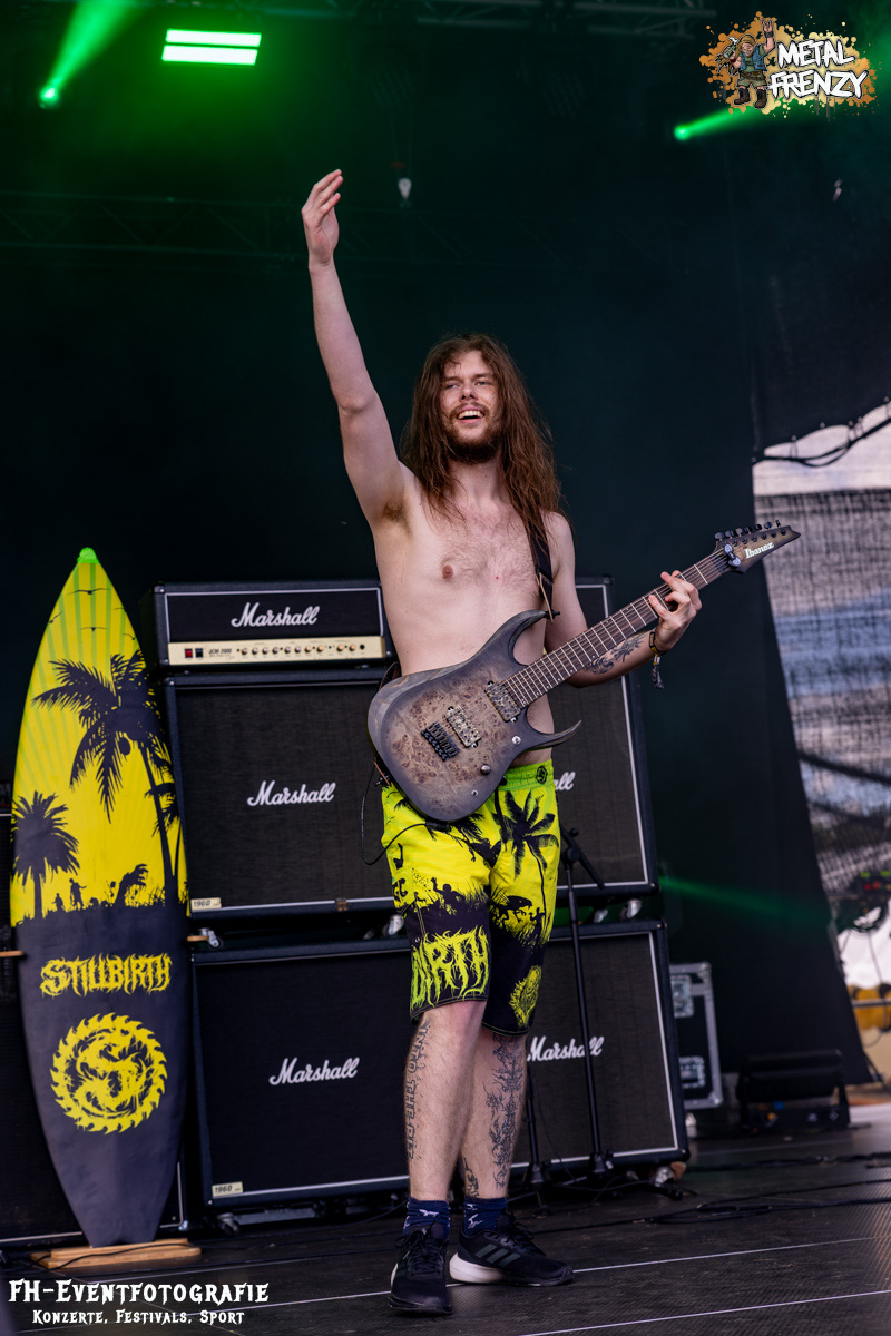 Die Band danach war einfach geil, hart im Nehmen und ganz sicher eine Perle. Aber zumindest für mich keine neue. Stillbirth kannte ich, musste ich sehen und so ging es augenscheinlich fast allen. In Bermudashorts auf der Bühne ist bei dieser Band aber einfach nur konsequent. Sie betiteln ihre Musik als „Brutal Surf Death Metal“. Wer sich selber Surf in die Musikbeschreibung packt, muss halt konsequent sein. Und ich werde mir als bald deren passende Bermuda besorgen. Sie sind grell, wie ihre Musik cool war und ist.