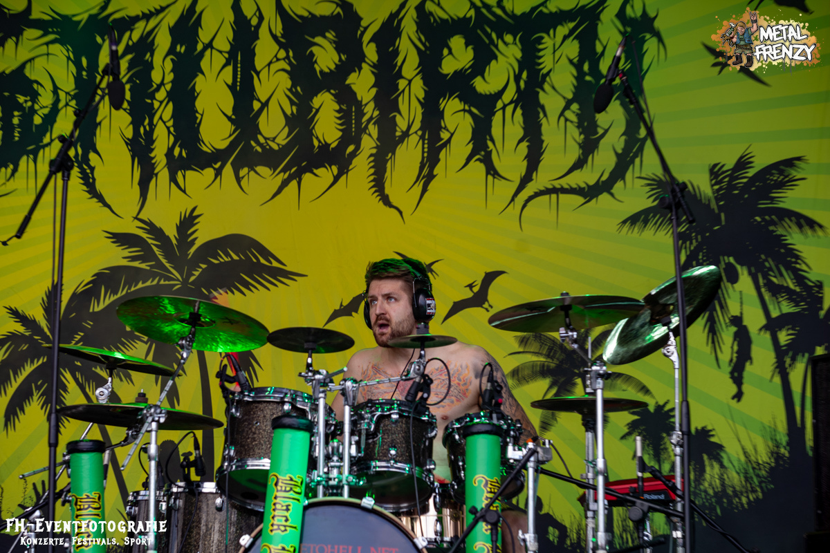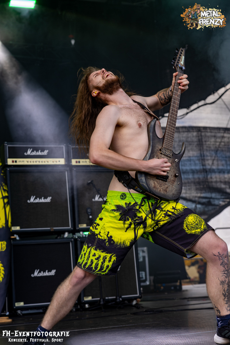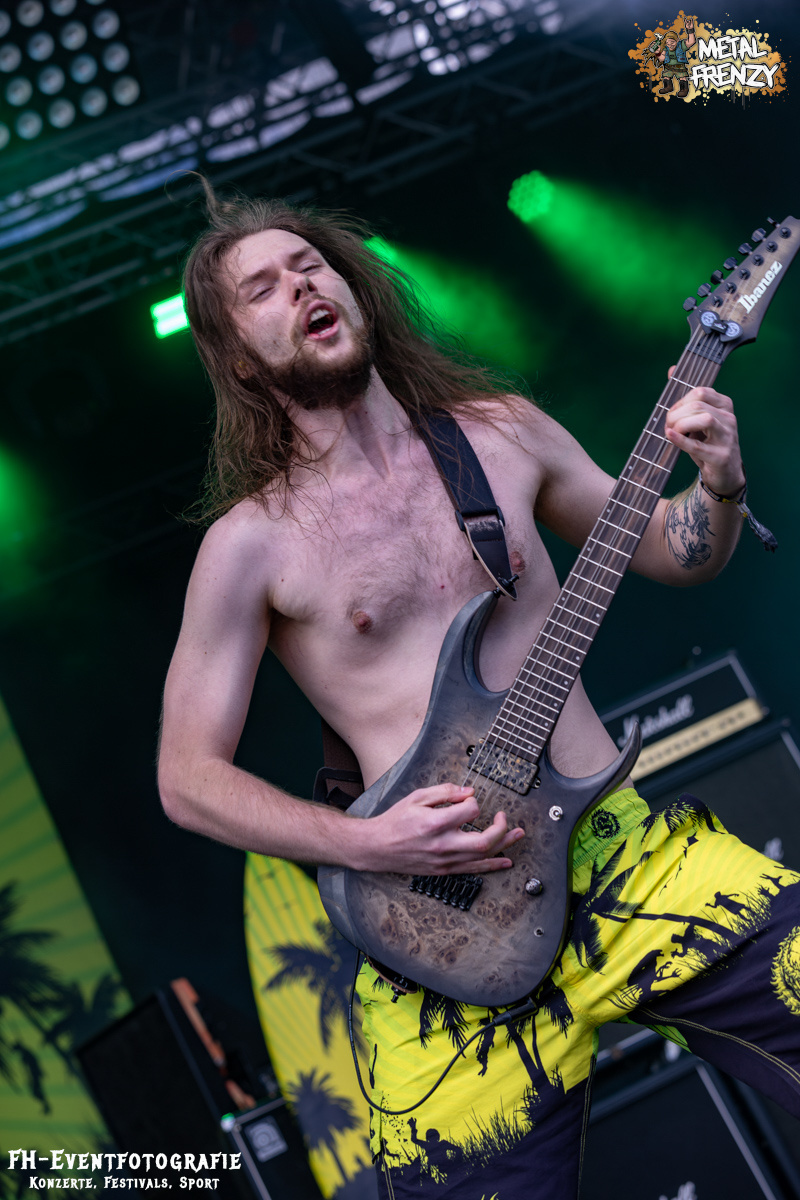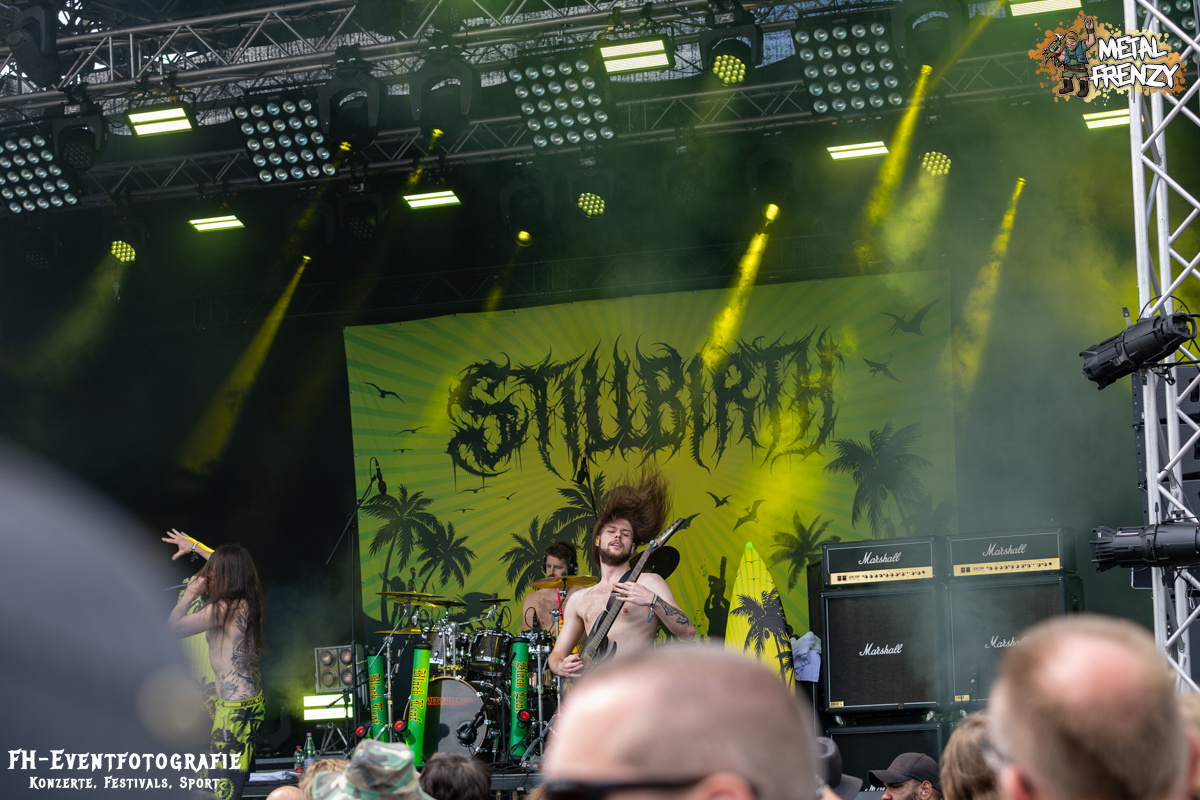 Die Band danach war einfach geil, hart im Nehmen und ganz sicher eine Perle. Aber zumindest für mich keine neue. Stillbirth kannte ich, musste ich sehen und so ging es augenscheinlich fast allen. In Bermudashorts auf der Bühne ist bei dieser Band aber einfach nur konsequent. Sie betiteln ihre Musik als „Brutal Surf Death Metal“. Wer sich selber Surf in die Musikbeschreibung packt, muss halt konsequent sein. Und ich werde mir als bald deren passende Bermuda besorgen. Sie sind grell, wie ihre Musik cool war und ist.