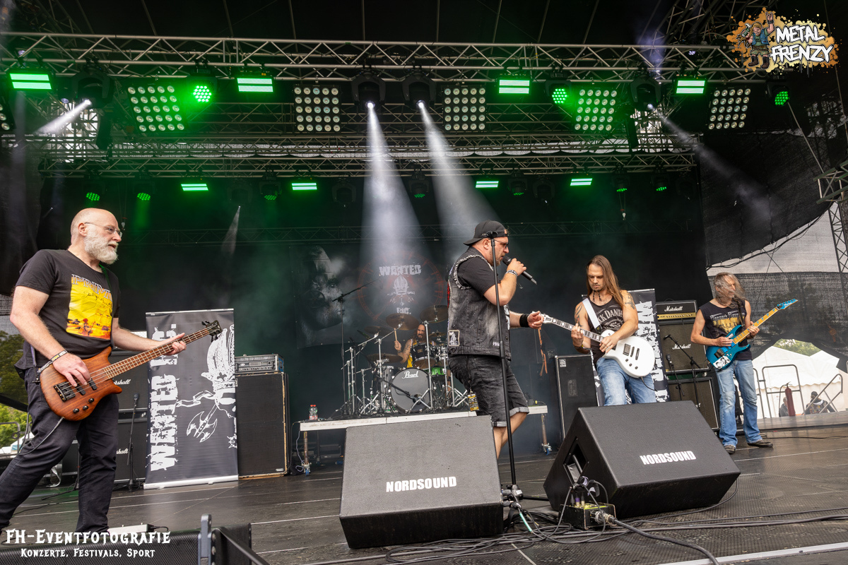 Dieses kleine Zwischenspiel endete so rasch, wie es begonnen hatte und nach diversen Kaffee und einer Portion Pommes vom Stand der Parsauer Fleischerei Bernd Reinsdorf ging es mir, meinem Magen und dem Kopf so weit wieder gut, dass Wanted Inc. mich musikalisch wach küssen durften. Thrash Metal mit bayrischem Akzent. Also wirklich in der Mundart gesungen. Ich habe bei den Songs ehrlich gesagt nur mitbekommen, dass es etwas ungewohnt klingt, aber dass das Bayrisch war, habe ich nicht mitbekommen. Es war einfach eine Gaudi. Man muss so was ja nicht immer alles so ernst nehmen.