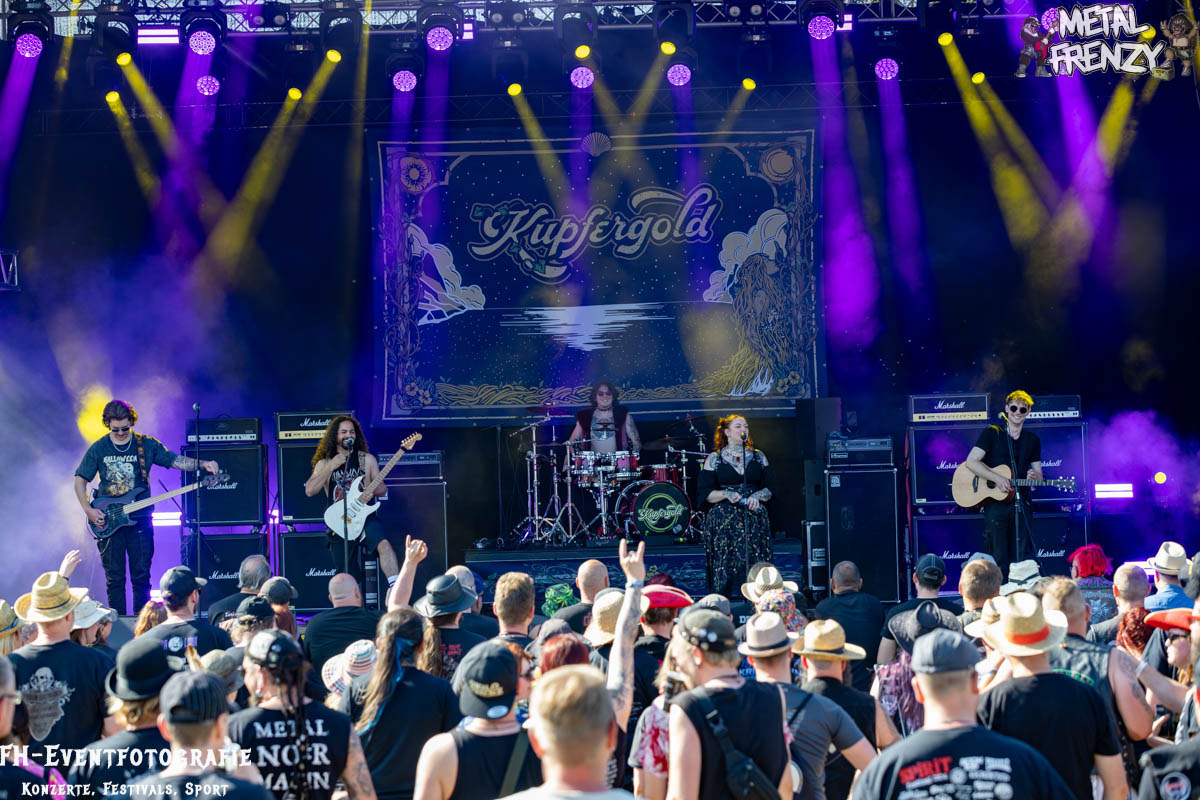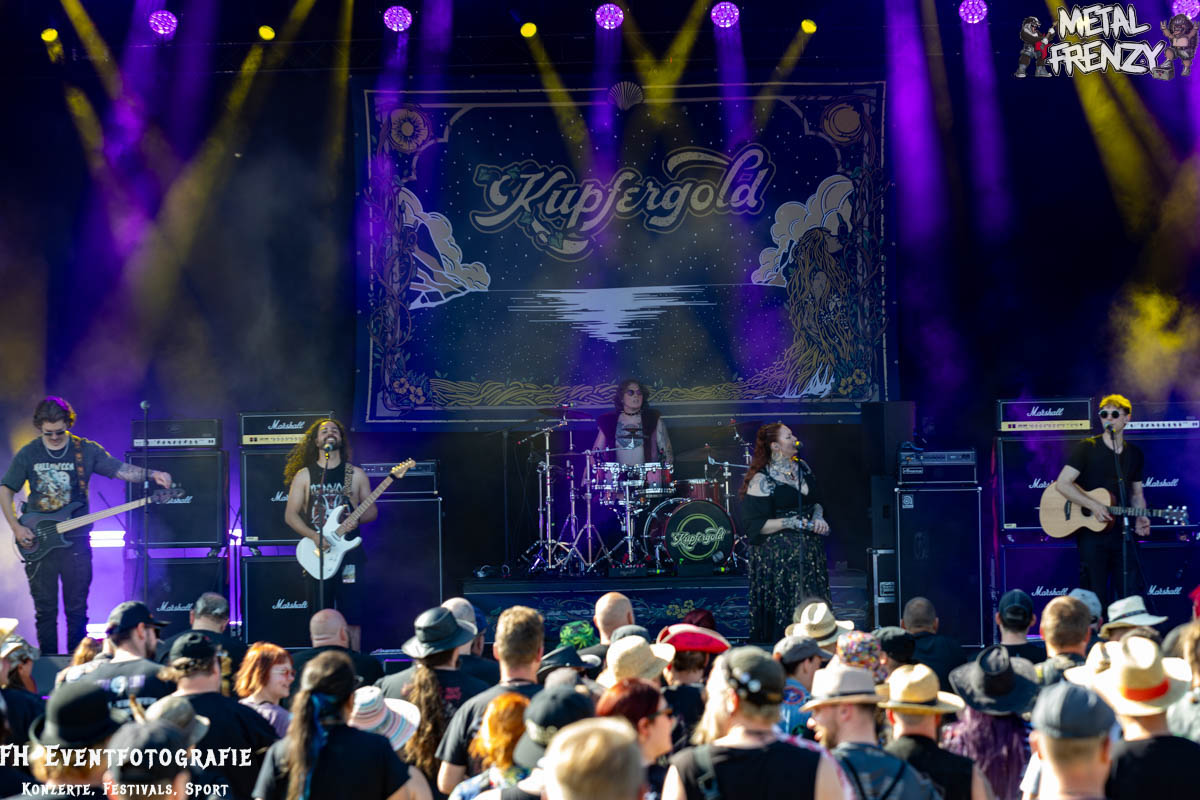 Jetzt kommt der krasseste Wechsel an diesem Tag. Mit Kupfergold geht es weiter. Mittelalter/Folkmusik und die Spielleite haben die Menge so richtig im Griff!