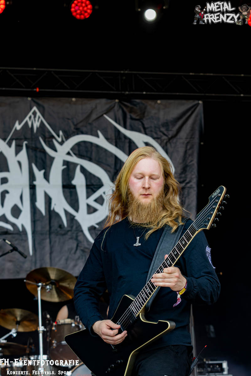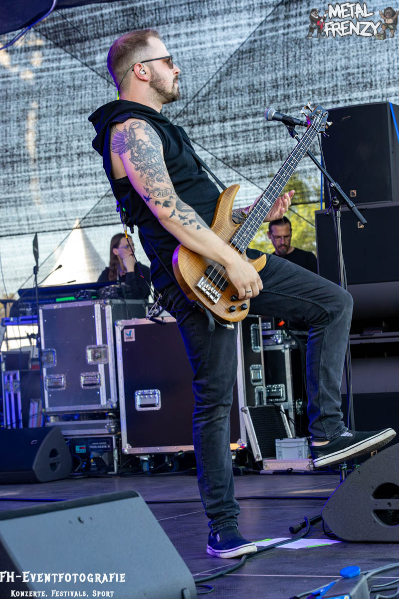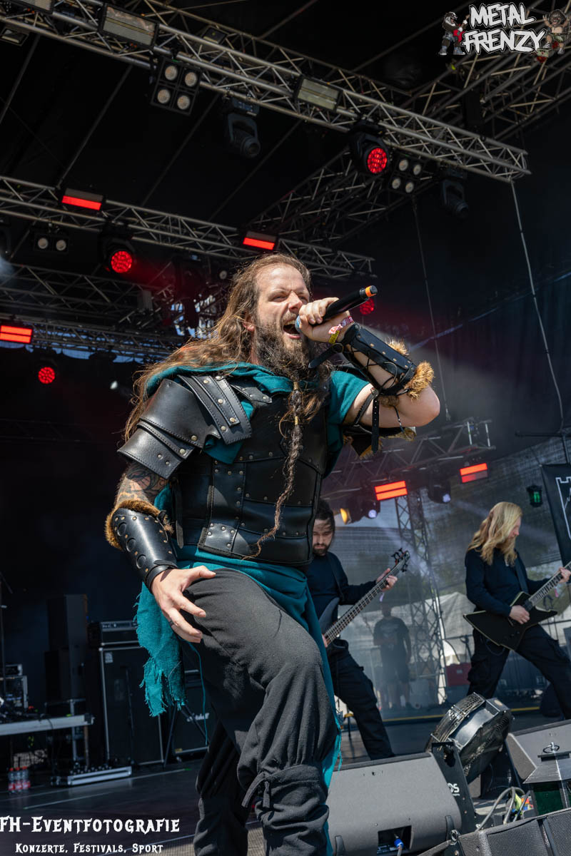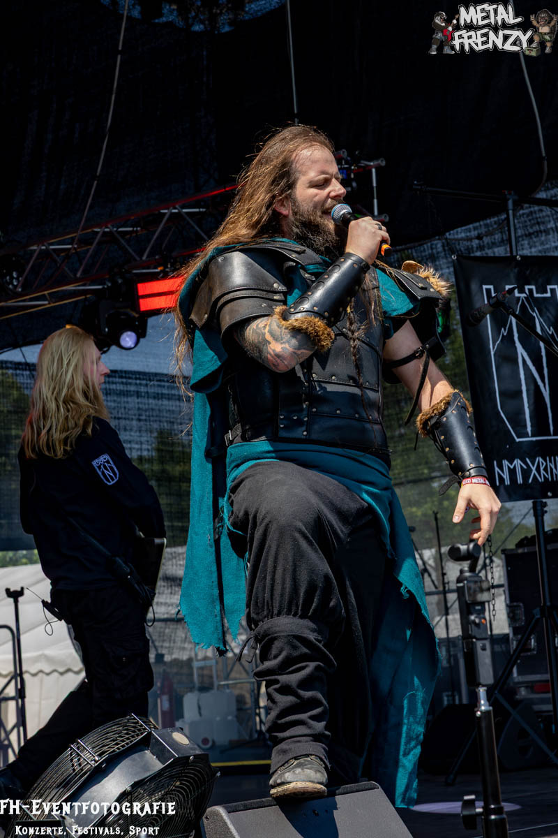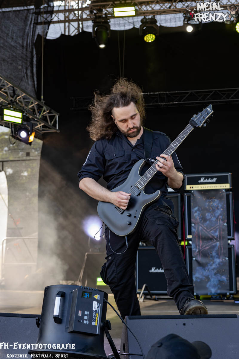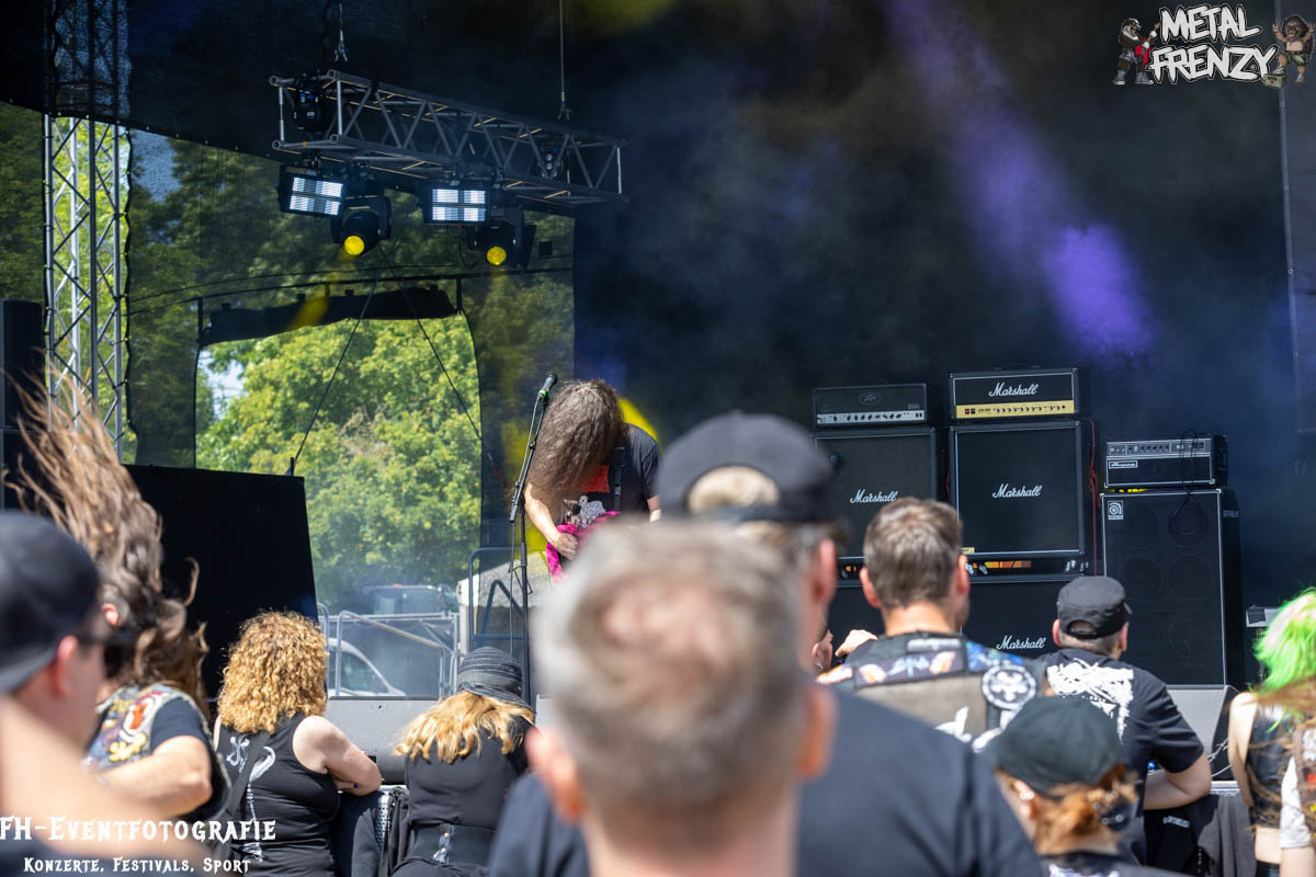 Bei mittlerweile gefühlten 35 Grad ging es mit Helgrindur aus Solingen weiter. Der Sänger der Pagan-Metal-Band hat unter seinem Gewand bestimmt gut geschwitzt, aber die Fans feierten die Band. Da es auf dem Metal Frenzy Festival kostenfrei Wasser zu trinken gab, konnte man sich zwischen den anderen Kaltgetränken wieder etwas Flüssigkeit zuführen und gegen die Hitze ankämpfen.