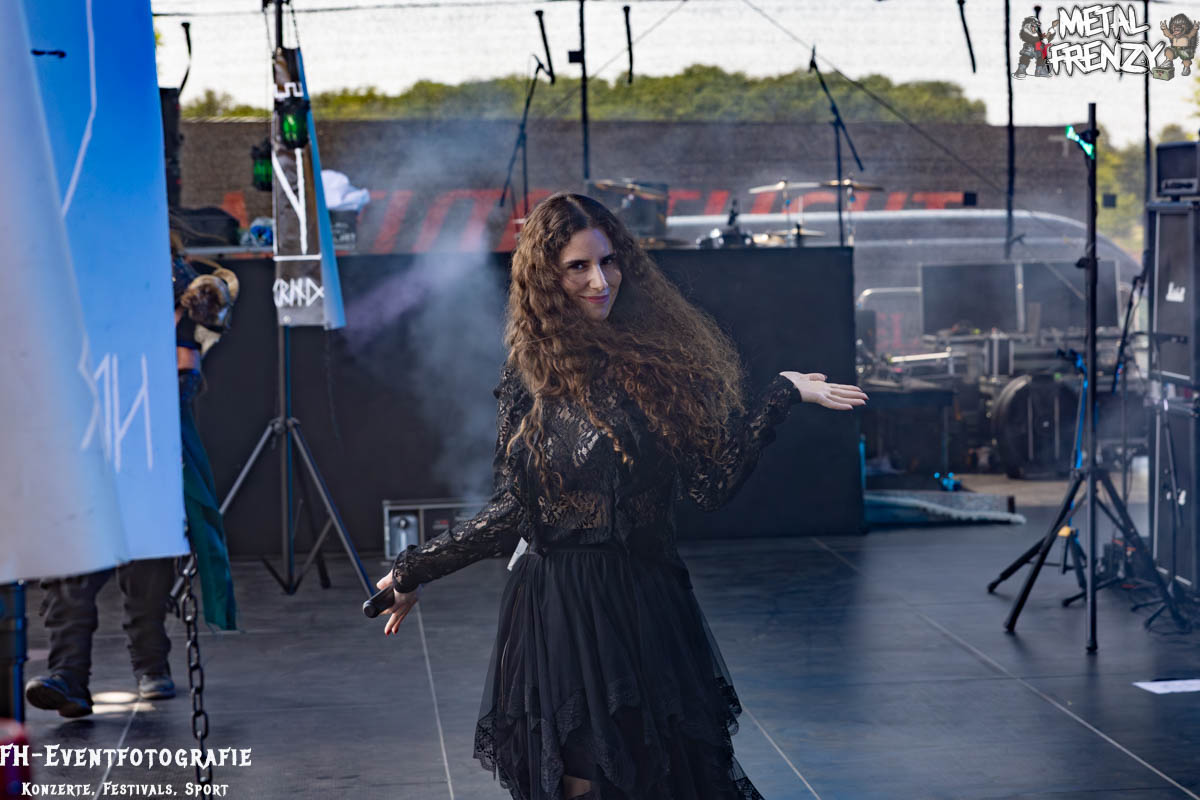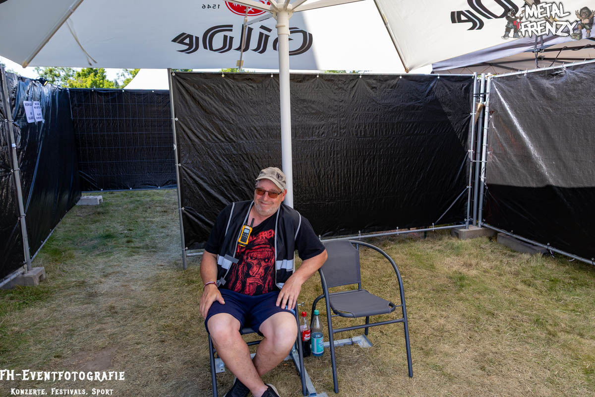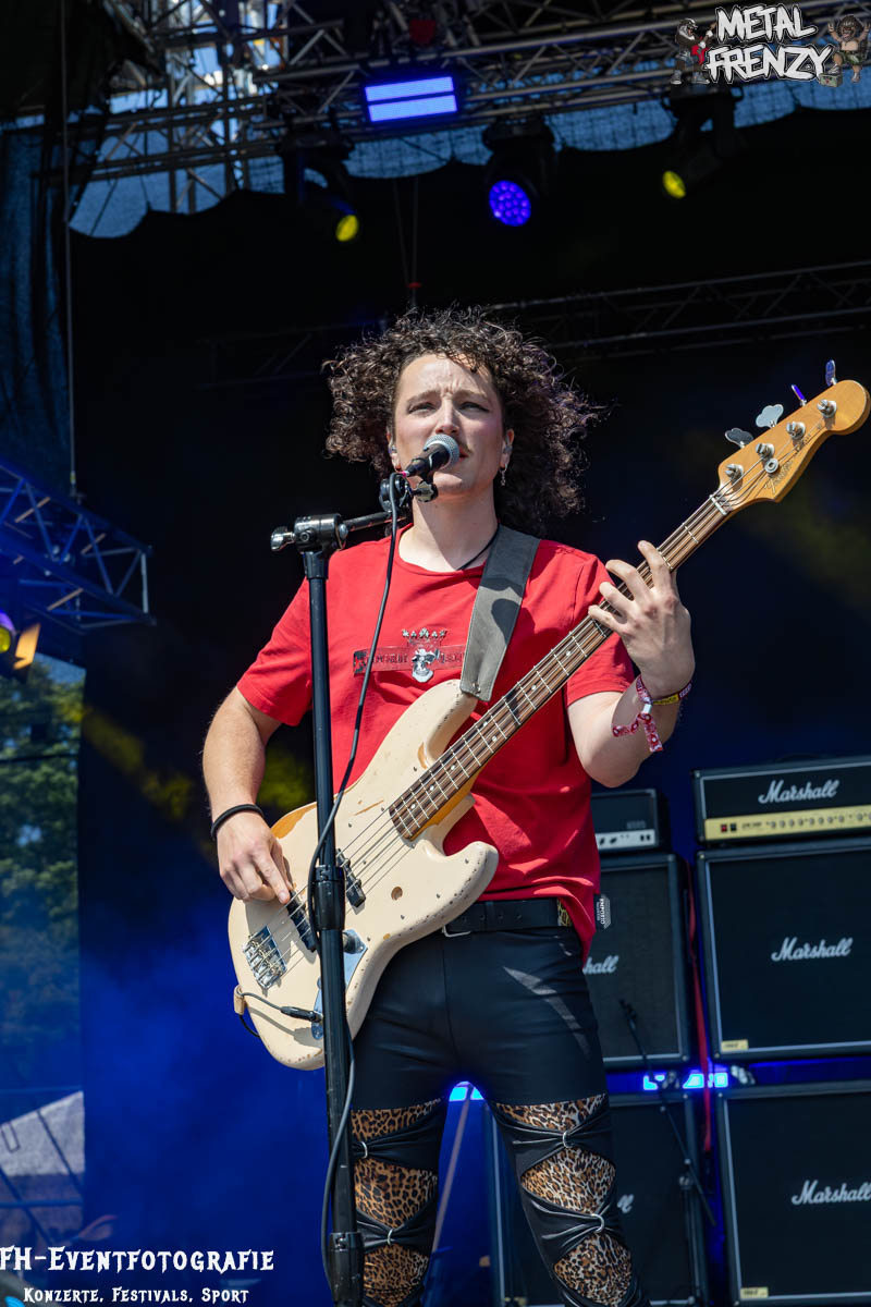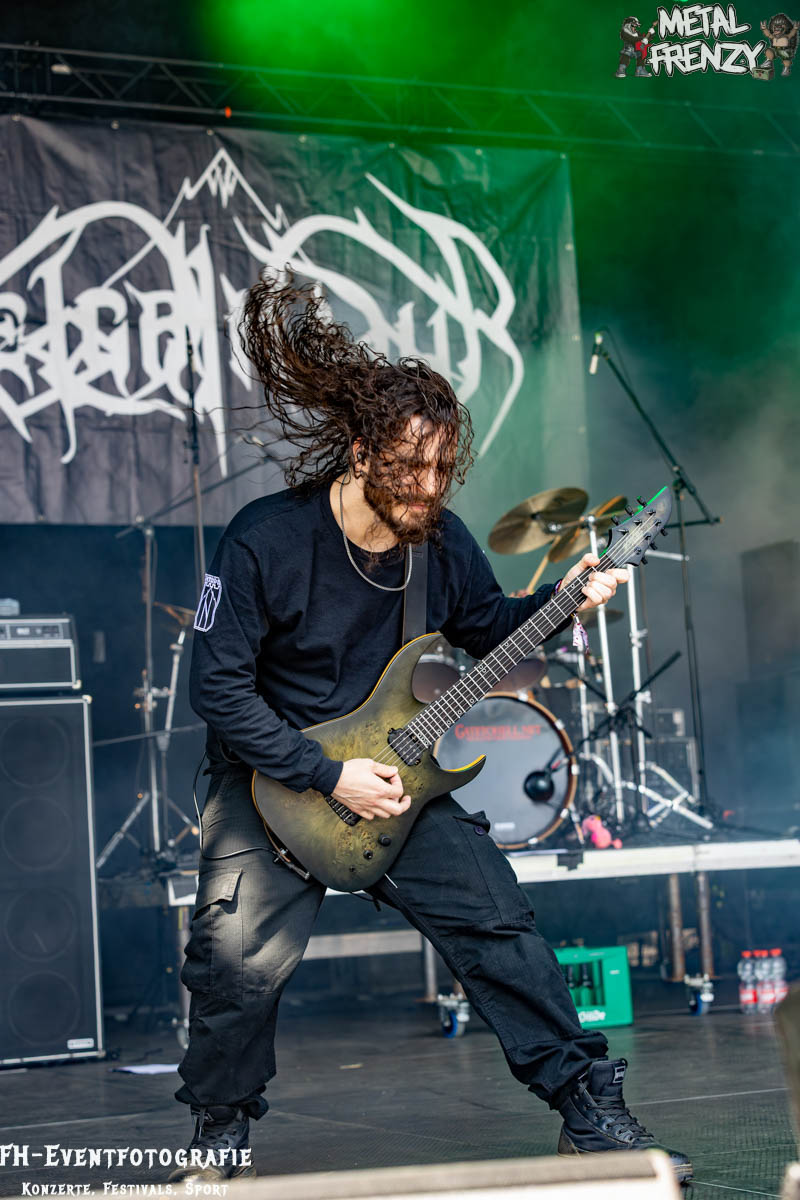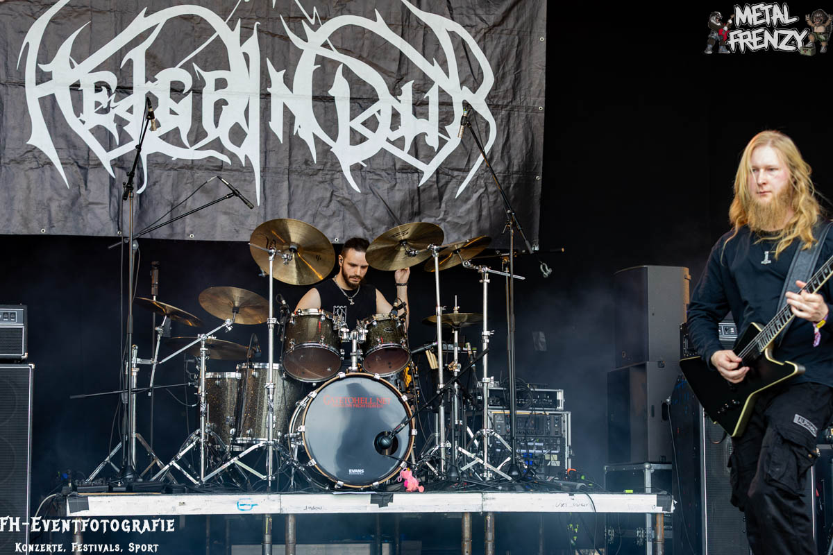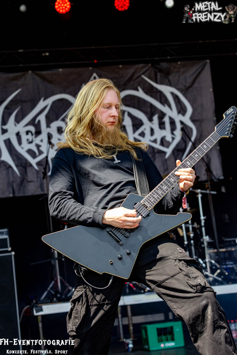 Bei mittlerweile gefühlten 35 Grad ging es mit Helgrindur aus Solingen weiter. Der Sänger der Pagan-Metal-Band hat unter seinem Gewand bestimmt gut geschwitzt, aber die Fans feierten die Band. Da es auf dem Metal Frenzy Festival kostenfrei Wasser zu trinken gab, konnte man sich zwischen den anderen Kaltgetränken wieder etwas Flüssigkeit zuführen und gegen die Hitze ankämpfen.