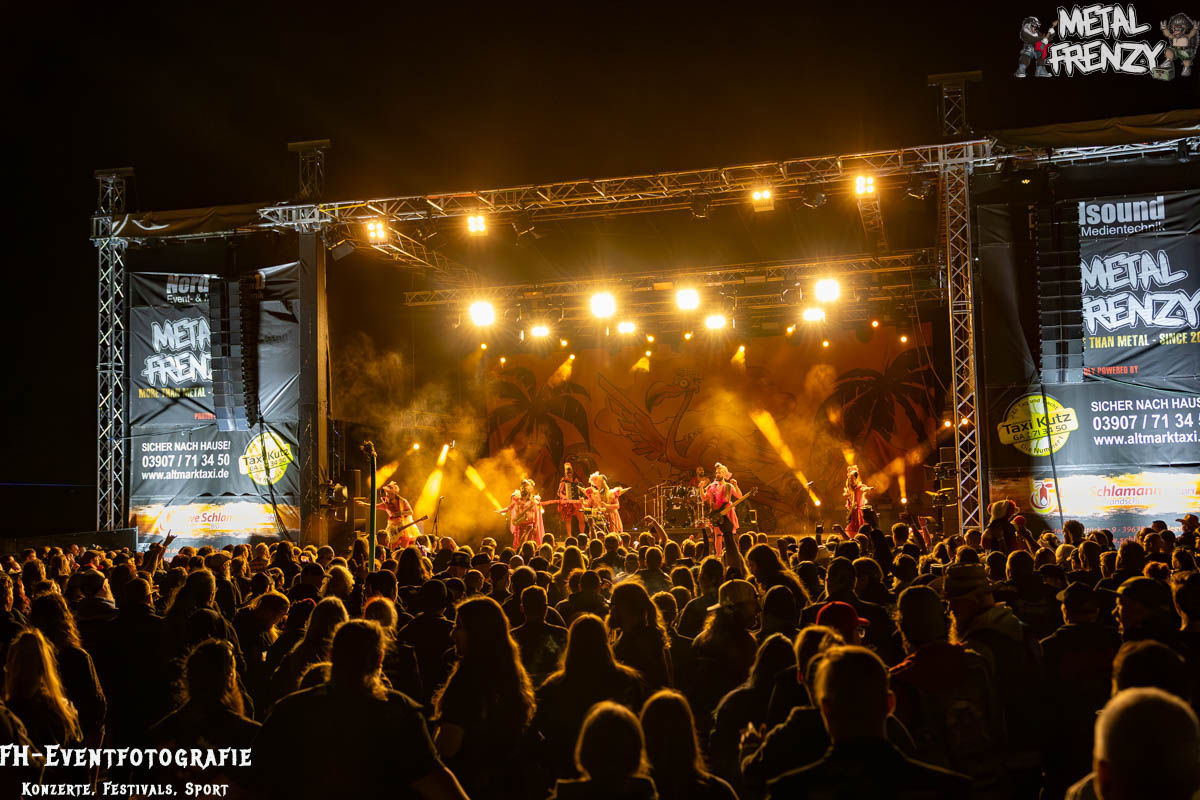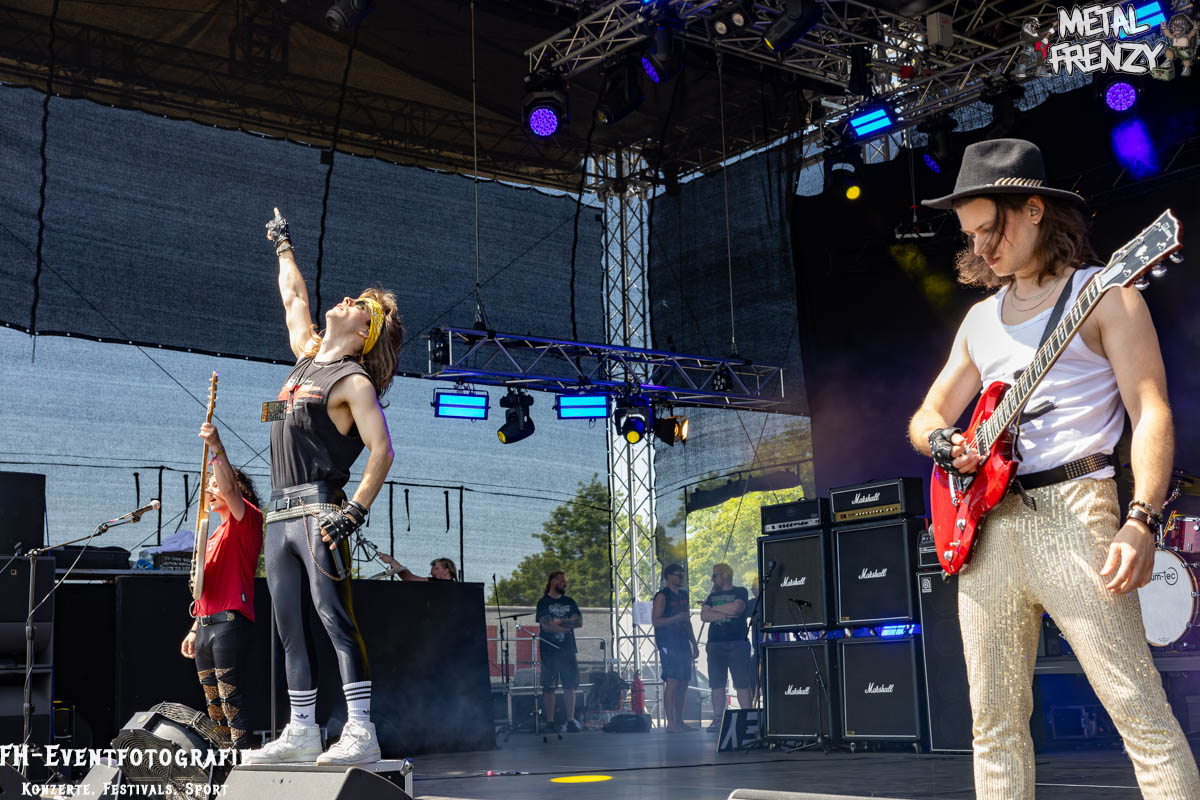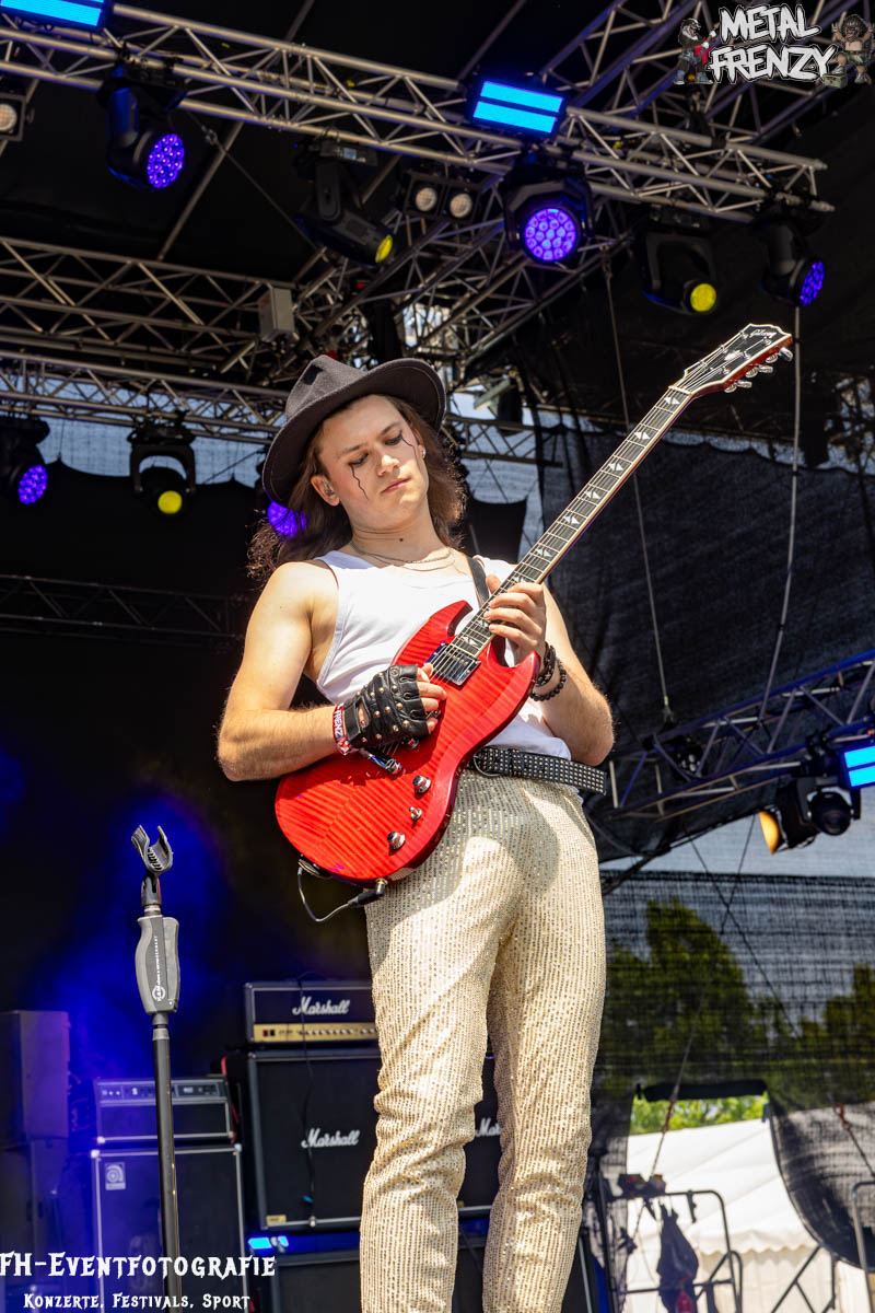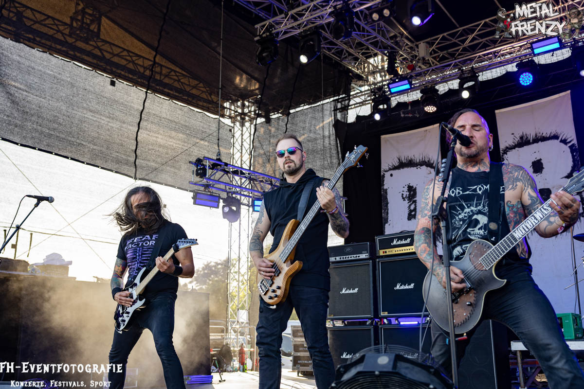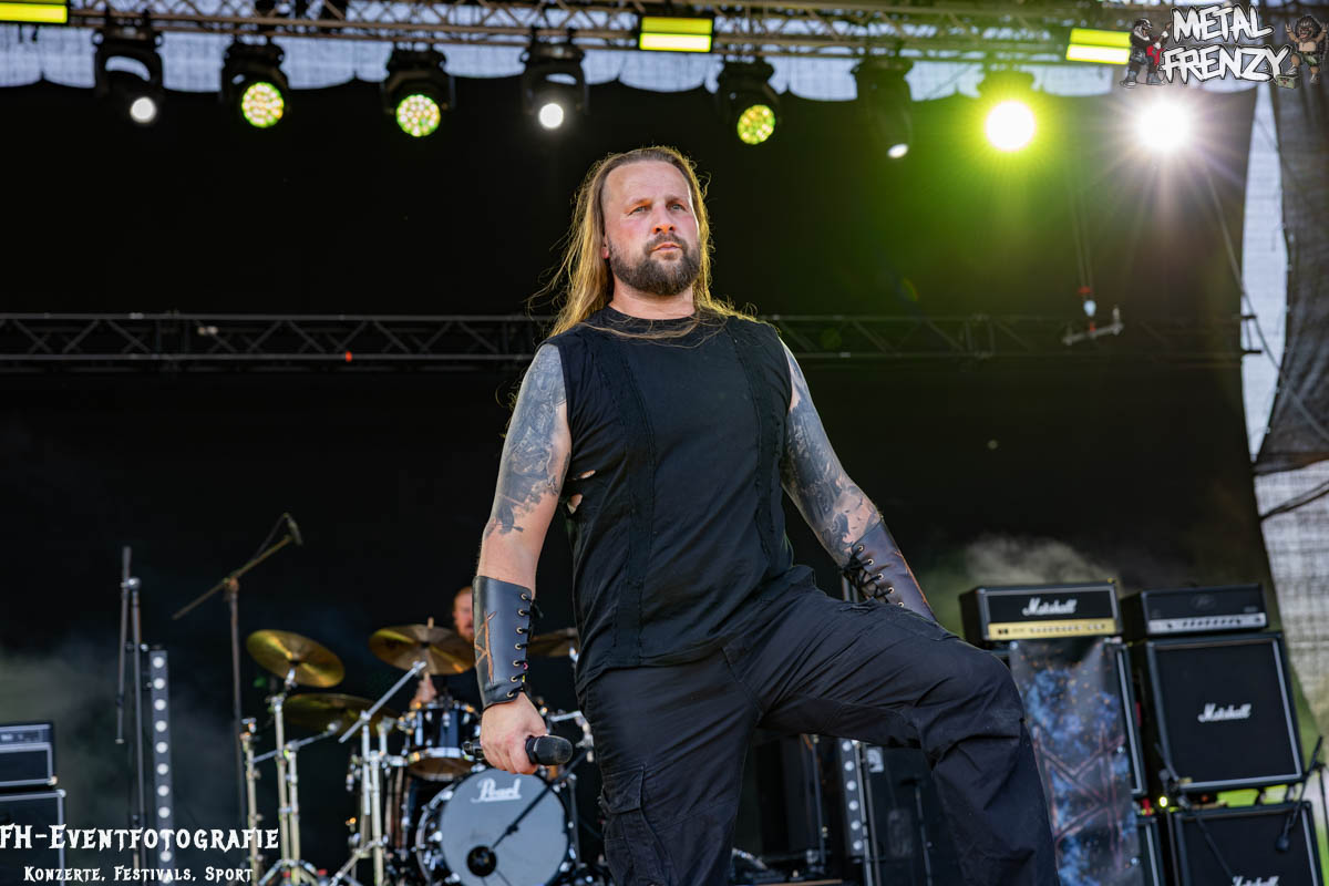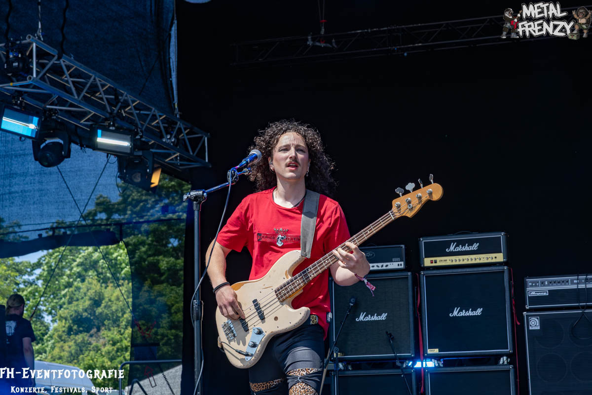 Bei mittlerweile gefühlten 35 Grad ging es mit Helgrindur aus Solingen weiter. Der Sänger der Pagan-Metal-Band hat unter seinem Gewand bestimmt gut geschwitzt, aber die Fans feierten die Band. Da es auf dem Metal Frenzy Festival kostenfrei Wasser zu trinken gab, konnte man sich zwischen den anderen Kaltgetränken wieder etwas Flüssigkeit zuführen und gegen die Hitze ankämpfen.