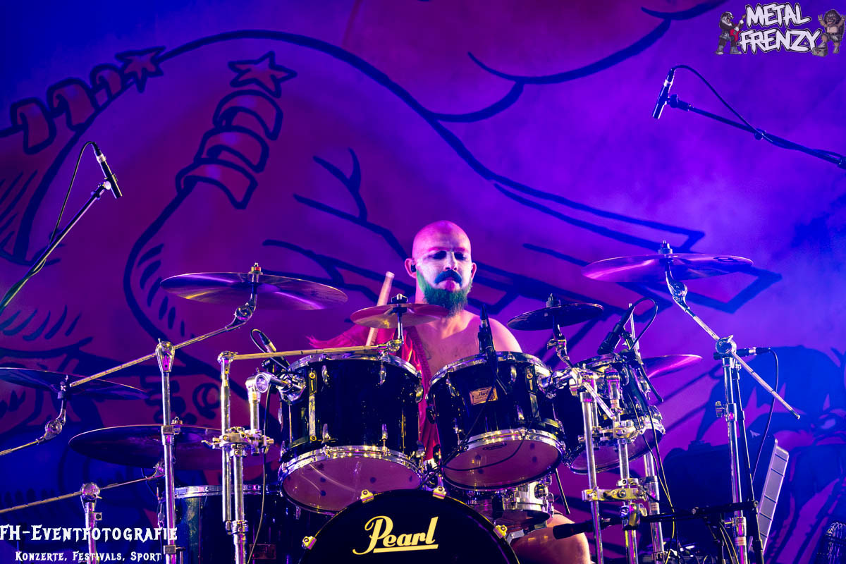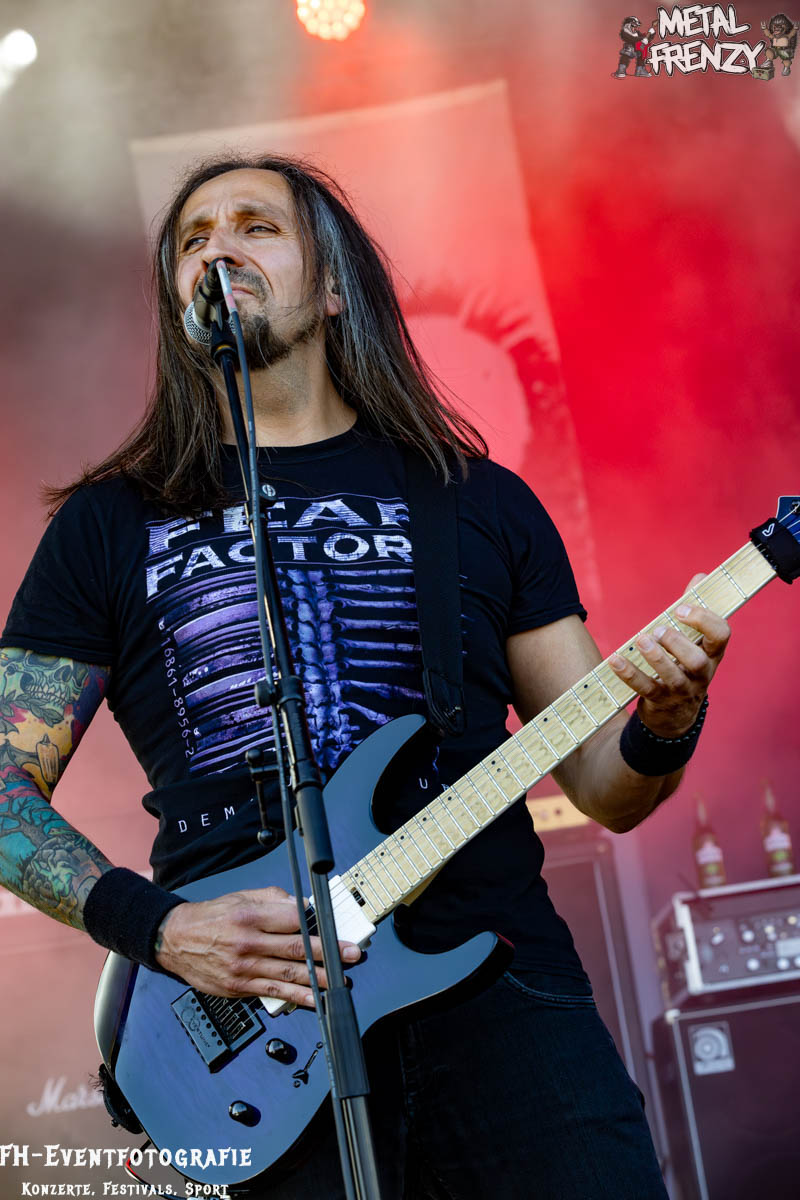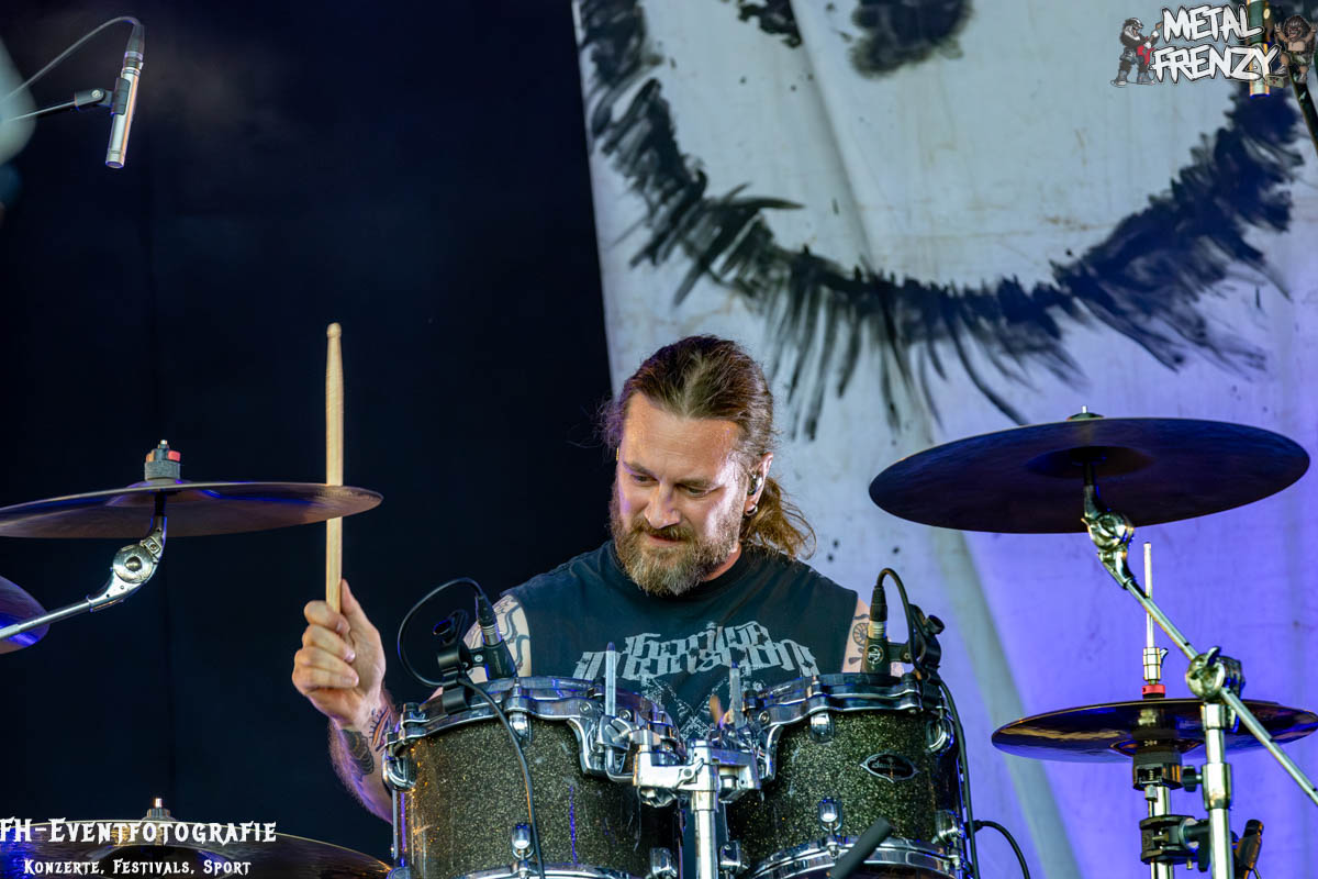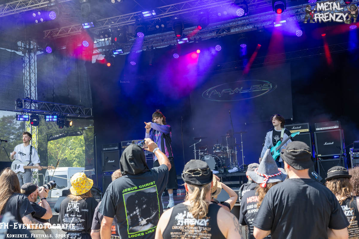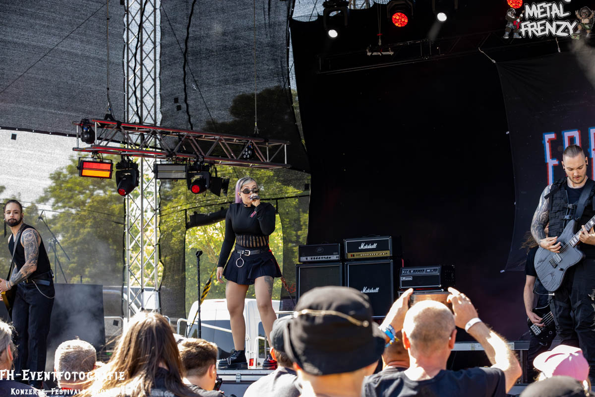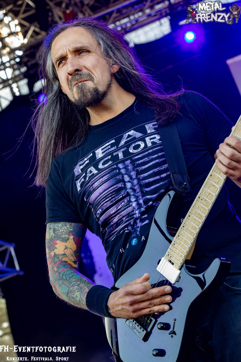 Bei mittlerweile gefühlten 35 Grad ging es mit Helgrindur aus Solingen weiter. Der Sänger der Pagan-Metal-Band hat unter seinem Gewand bestimmt gut geschwitzt, aber die Fans feierten die Band. Da es auf dem Metal Frenzy Festival kostenfrei Wasser zu trinken gab, konnte man sich zwischen den anderen Kaltgetränken wieder etwas Flüssigkeit zuführen und gegen die Hitze ankämpfen.