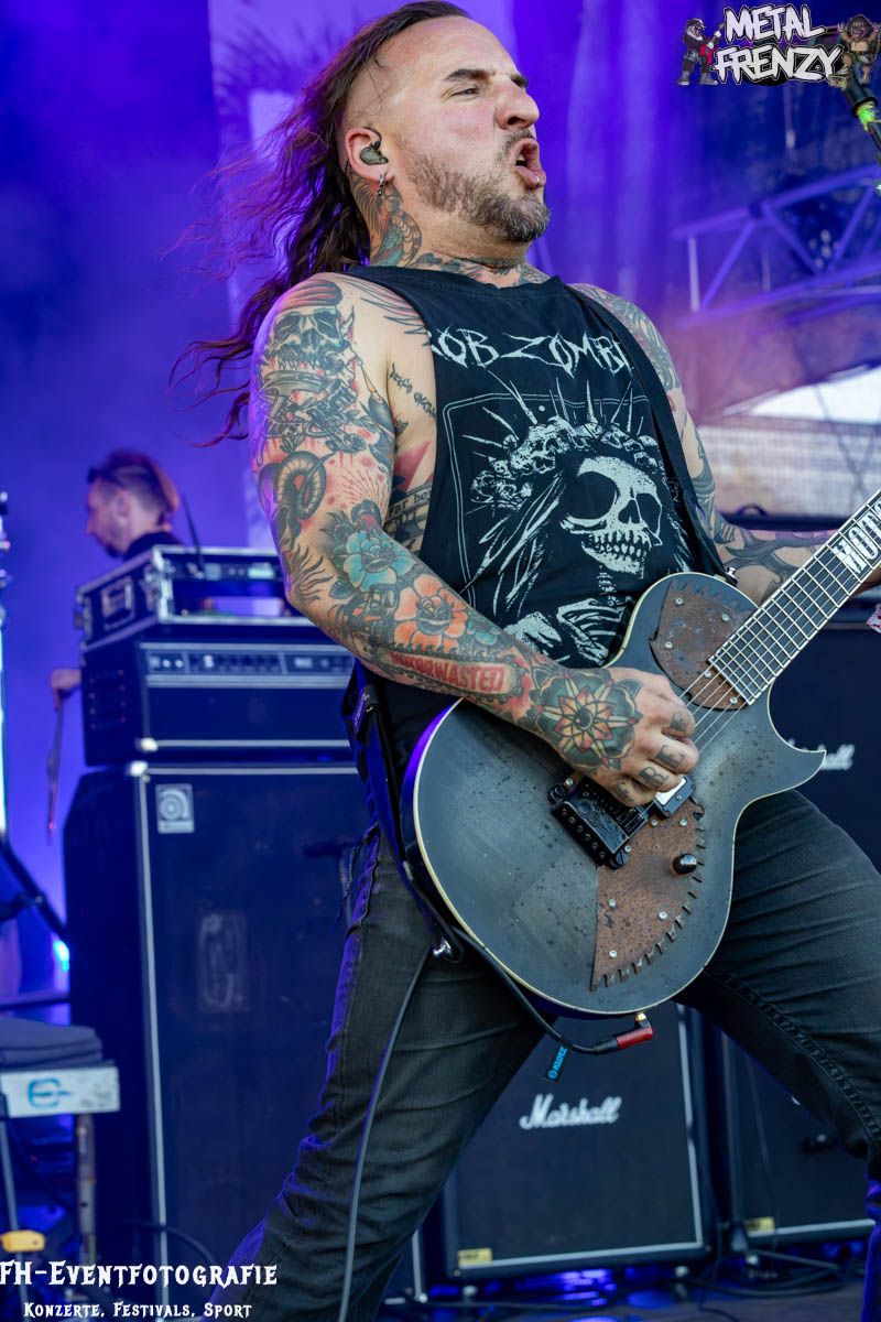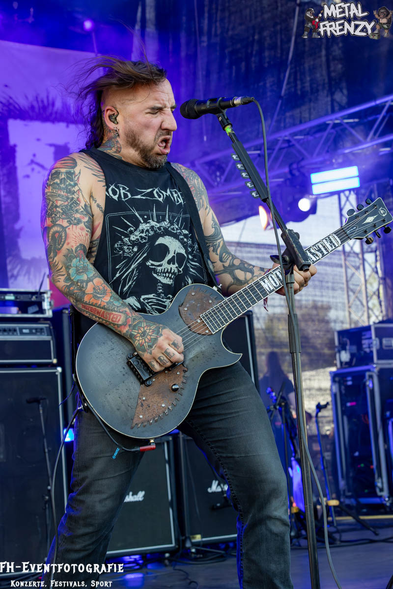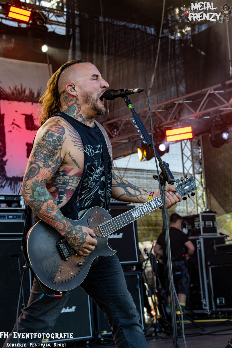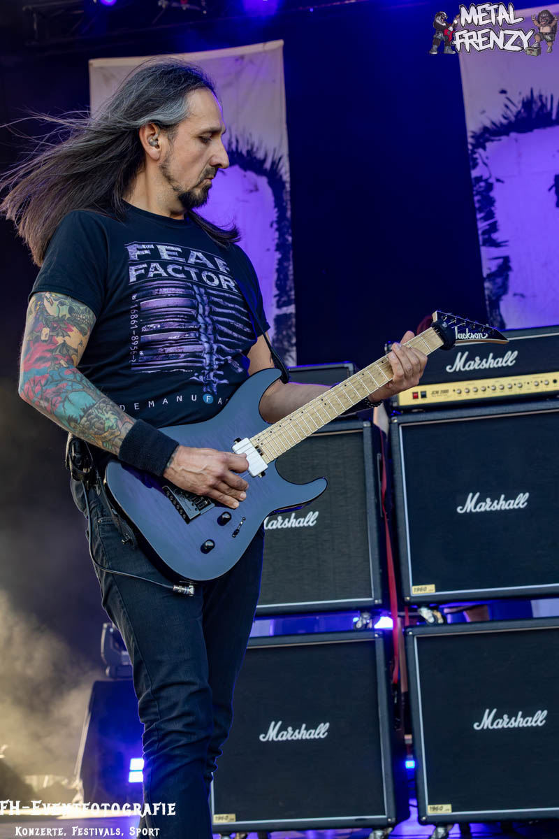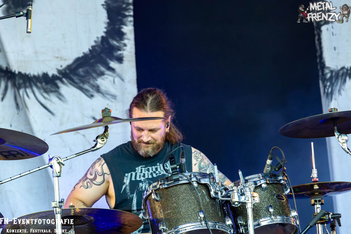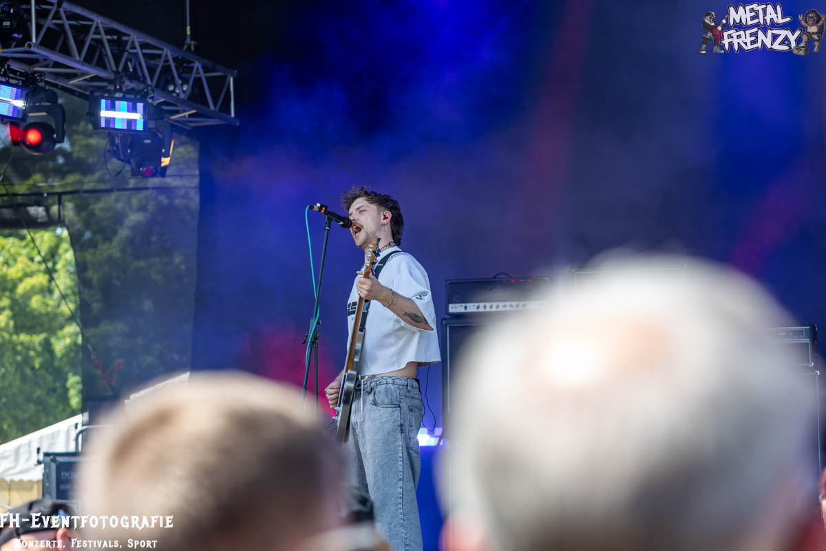 Bei mittlerweile gefühlten 35 Grad ging es mit Helgrindur aus Solingen weiter. Der Sänger der Pagan-Metal-Band hat unter seinem Gewand bestimmt gut geschwitzt, aber die Fans feierten die Band. Da es auf dem Metal Frenzy Festival kostenfrei Wasser zu trinken gab, konnte man sich zwischen den anderen Kaltgetränken wieder etwas Flüssigkeit zuführen und gegen die Hitze ankämpfen.