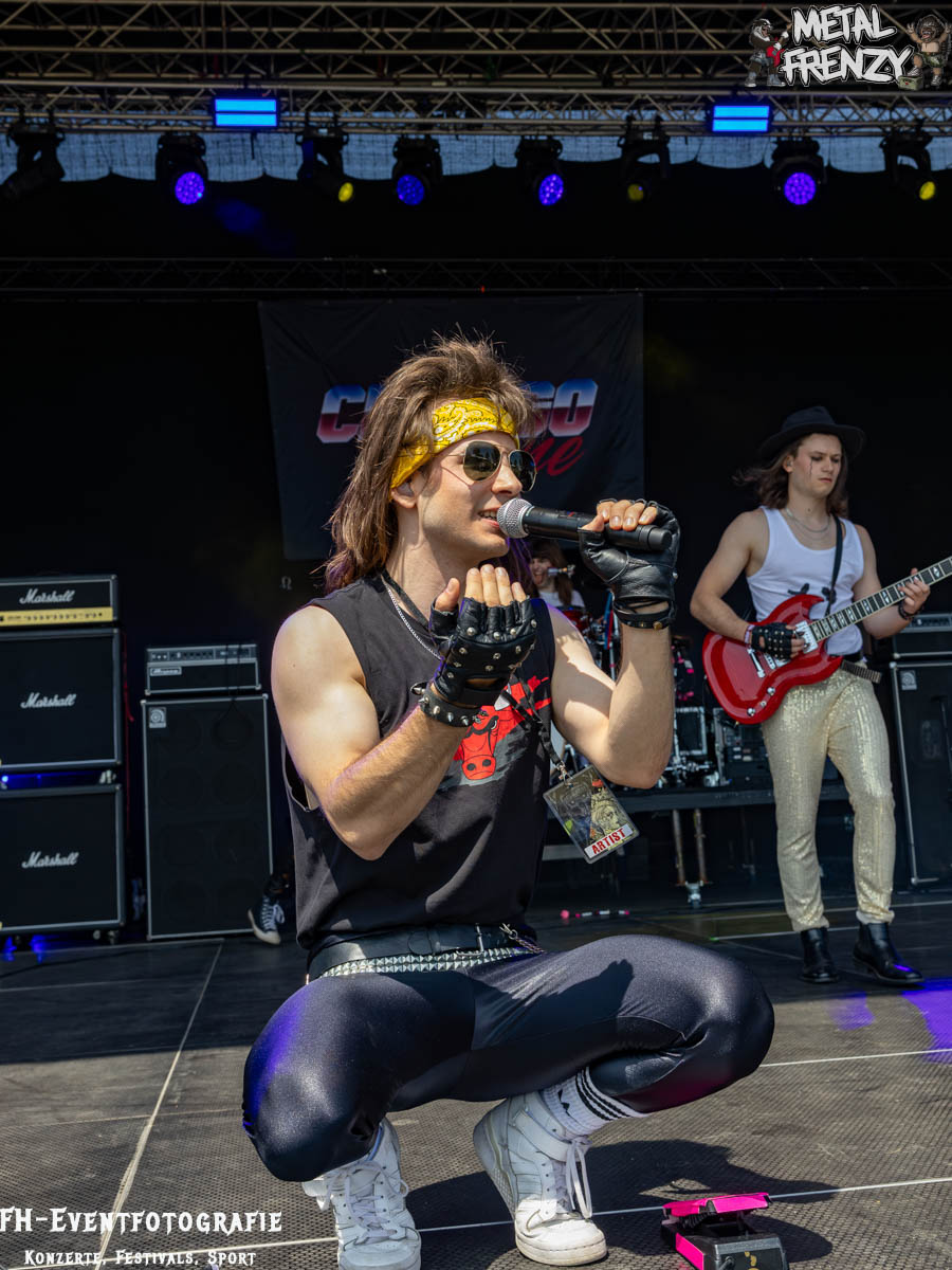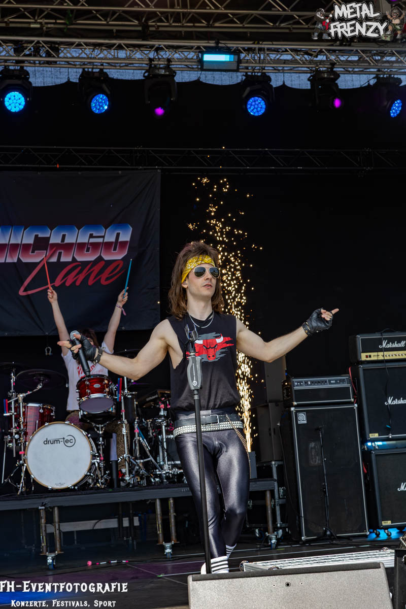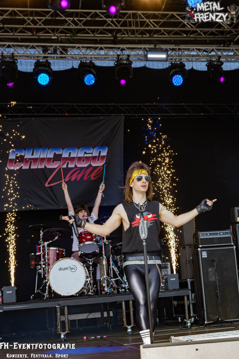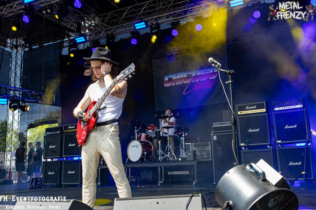 Weiter ging es mit Glamrock aus Hannover. Chicago Lane habe ich schon bei diversen Veranstaltungen vor der Linse gehabt und es lohnt sich immer wieder! Auch das Solo von Malon durfte nicht fehlen. Wenn Ihr die Chance habt, besucht ein Konzert von denen und erfreut Euch an deren Klängen.
