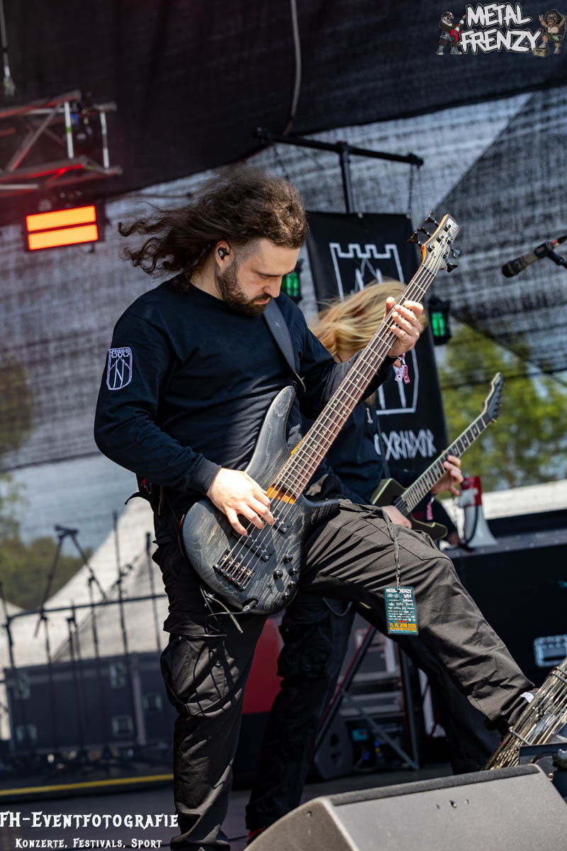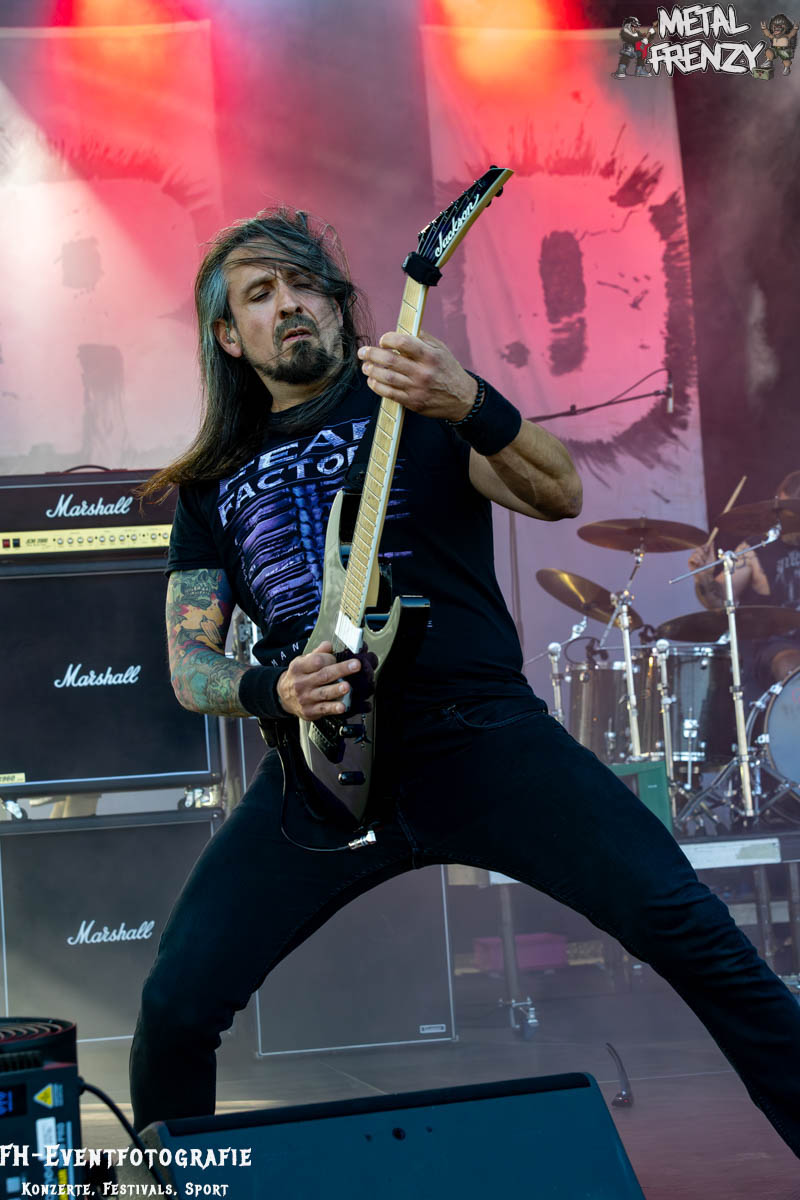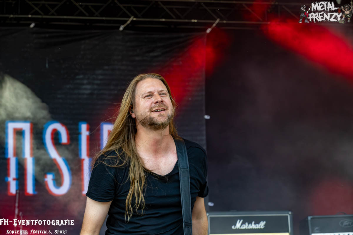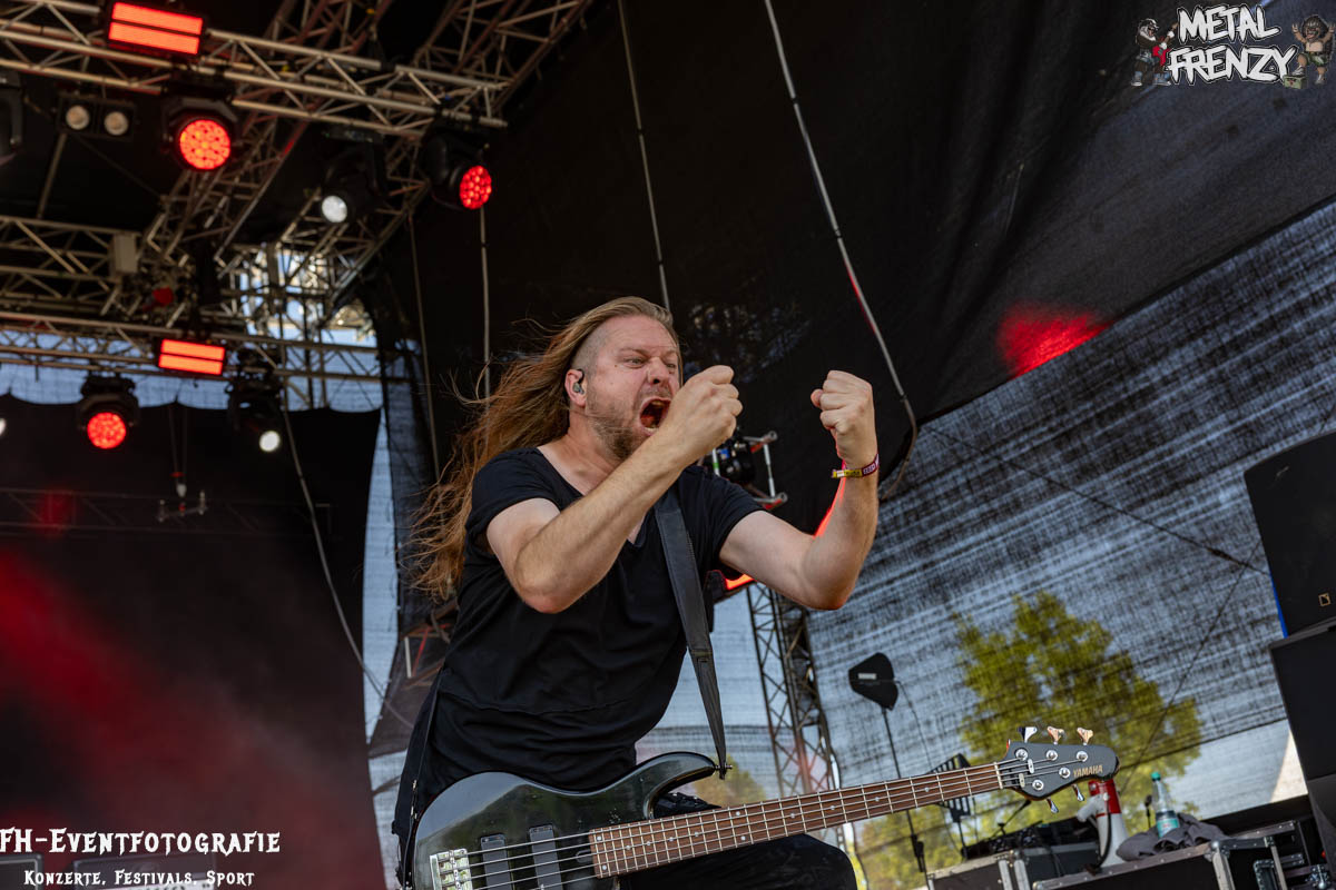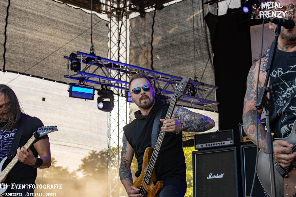 Der Teil 2 beginnt mit Obscurity auf der Bühne. Die Band, die sich der fünften Jahreszeit, ihrer Heimat nahe Düsseldorf, musikalisch so richtig entgegenstemmt. Trotz so allmählich finsterster Hitze gaben die Bandmitglieder alles. Ohne zu unken, aber die Jungs haben sich in den letzten Jahren einiges an Fans erspielt. So einige Hundert waren augenscheinlich auch auf dem Metal Frenzy Festival und trotzten dem Wetter und genossen den fetten, düsteren Sound.