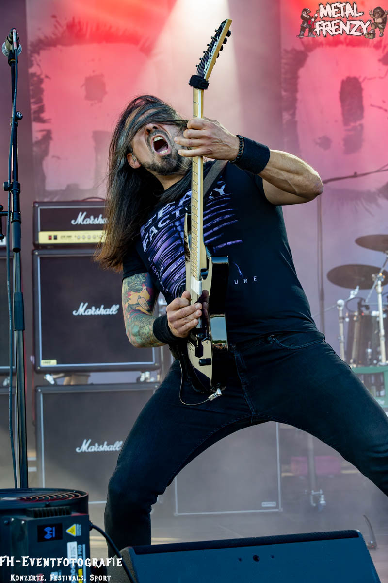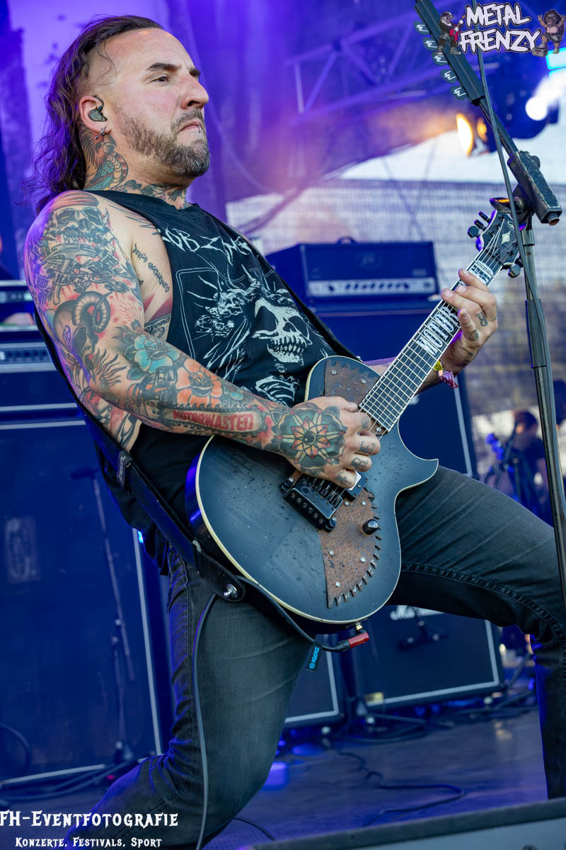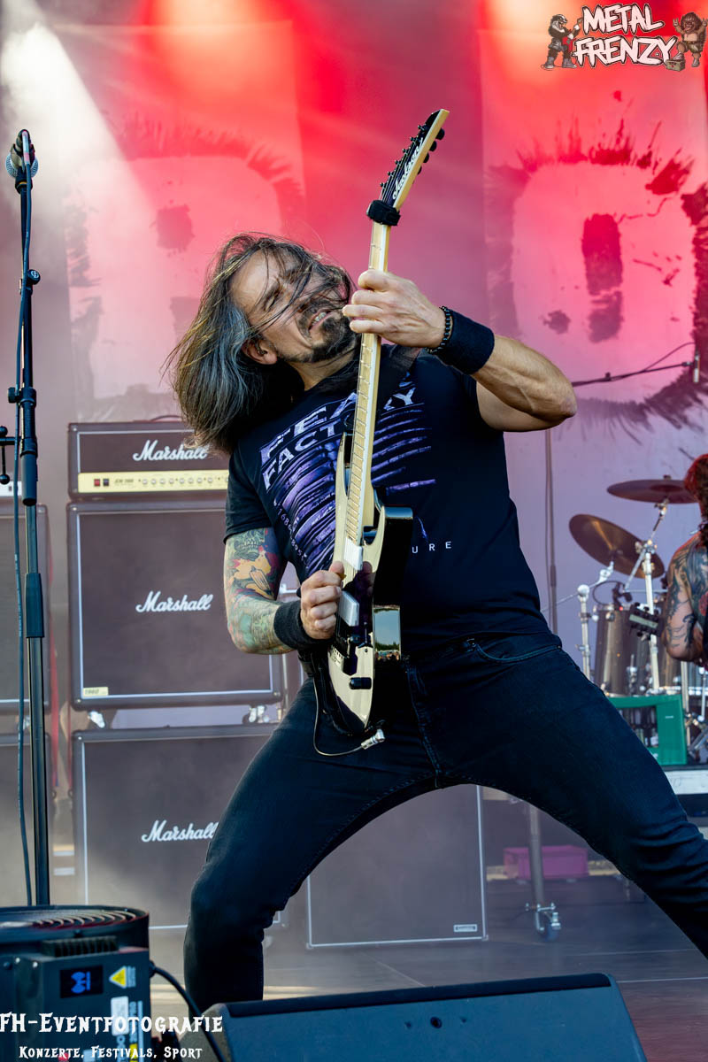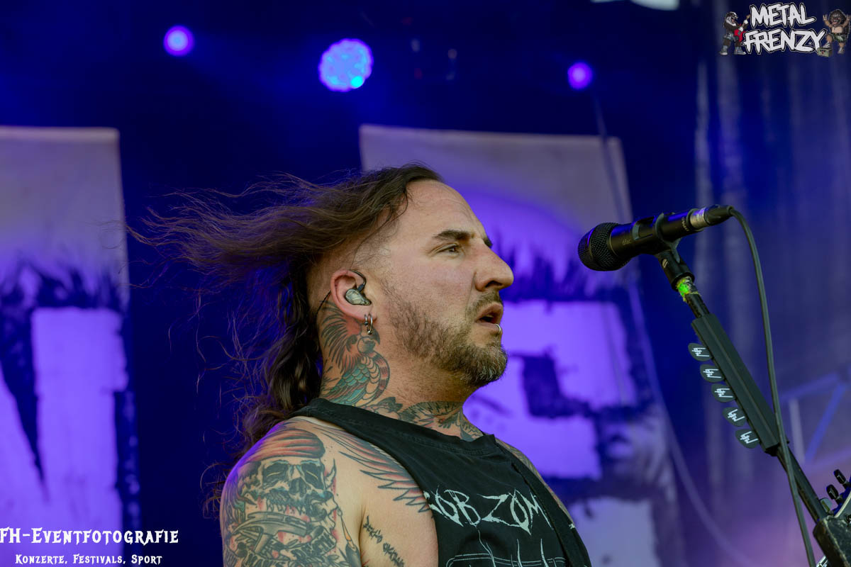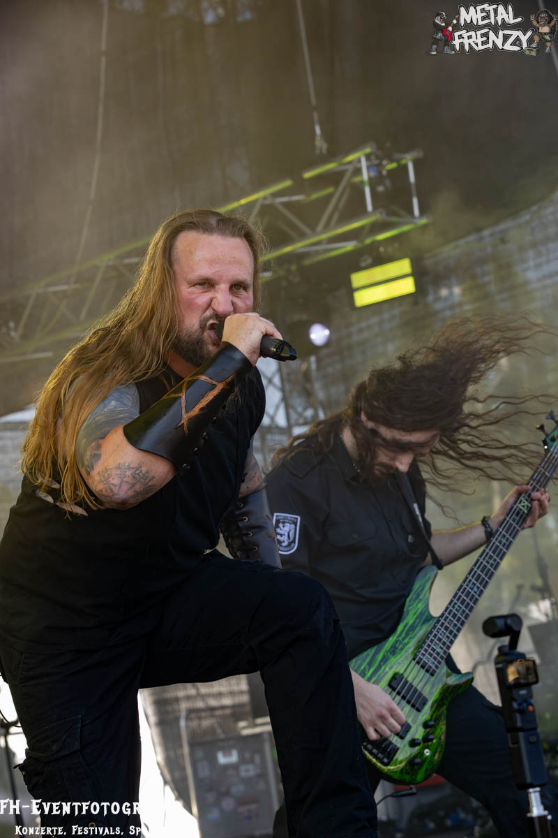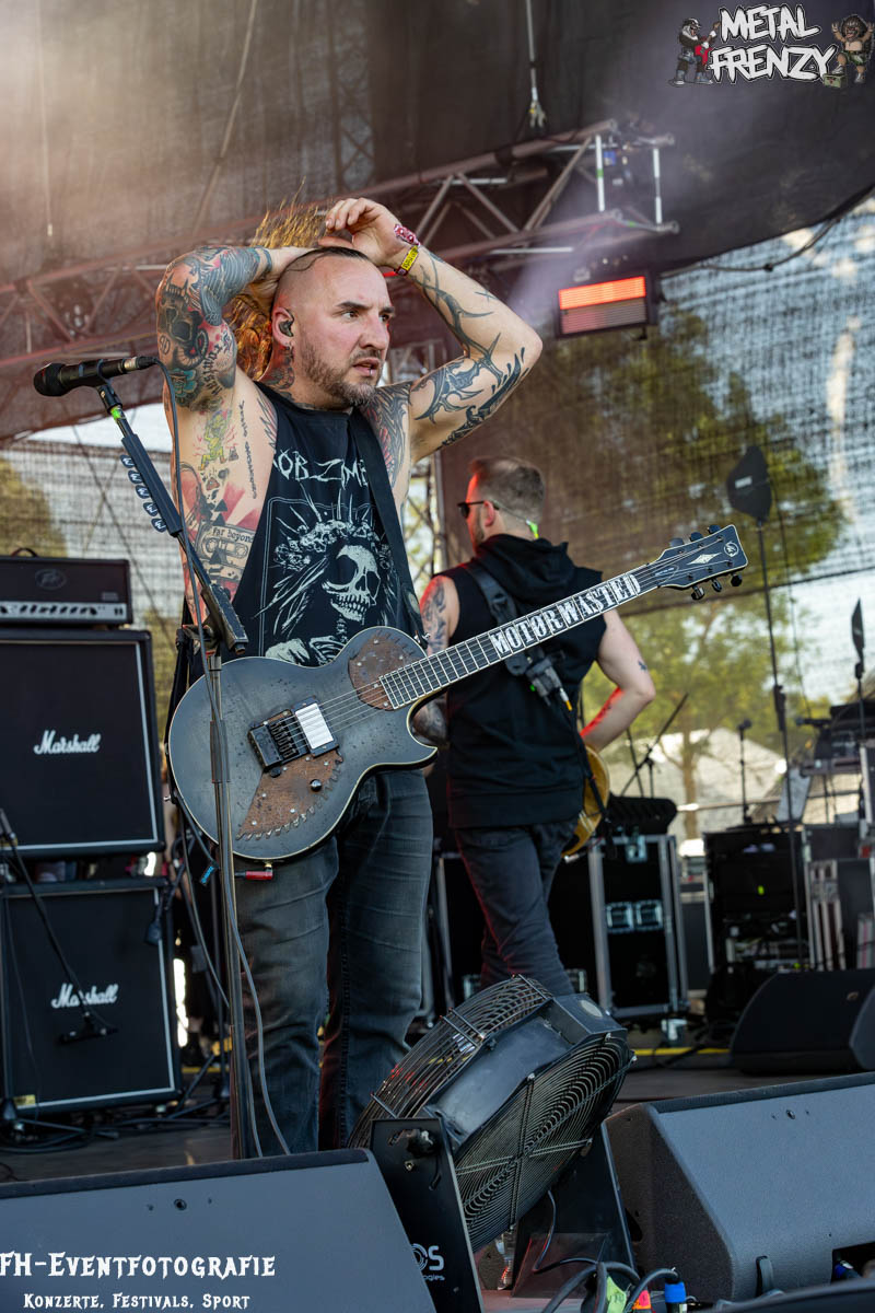 Der Teil 2 beginnt mit Obscurity auf der Bühne. Die Band, die sich der fünften Jahreszeit, ihrer Heimat nahe Düsseldorf, musikalisch so richtig entgegenstemmt. Trotz so allmählich finsterster Hitze gaben die Bandmitglieder alles. Ohne zu unken, aber die Jungs haben sich in den letzten Jahren einiges an Fans erspielt. So einige Hundert waren augenscheinlich auch auf dem Metal Frenzy Festival und trotzten dem Wetter und genossen den fetten, düsteren Sound.
