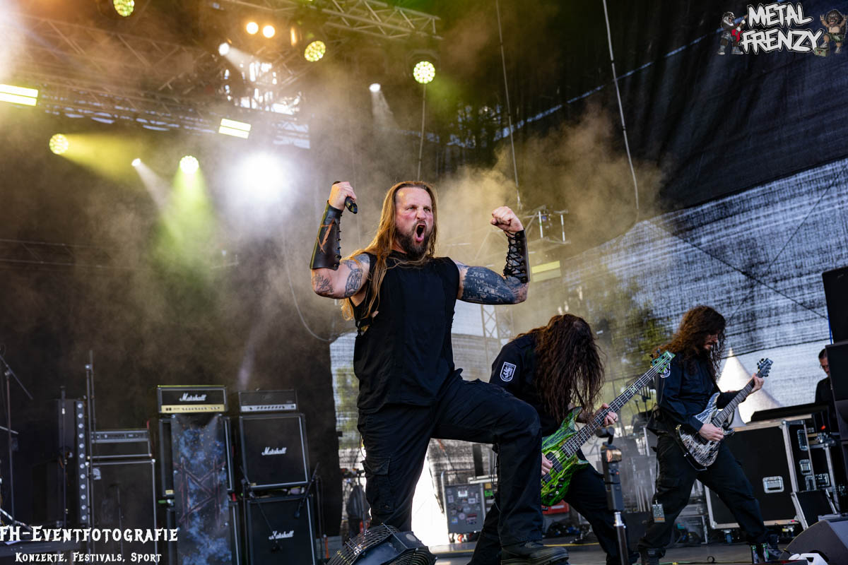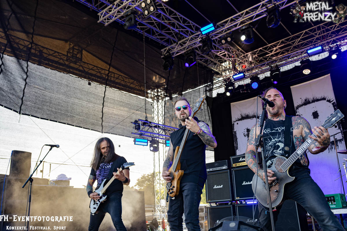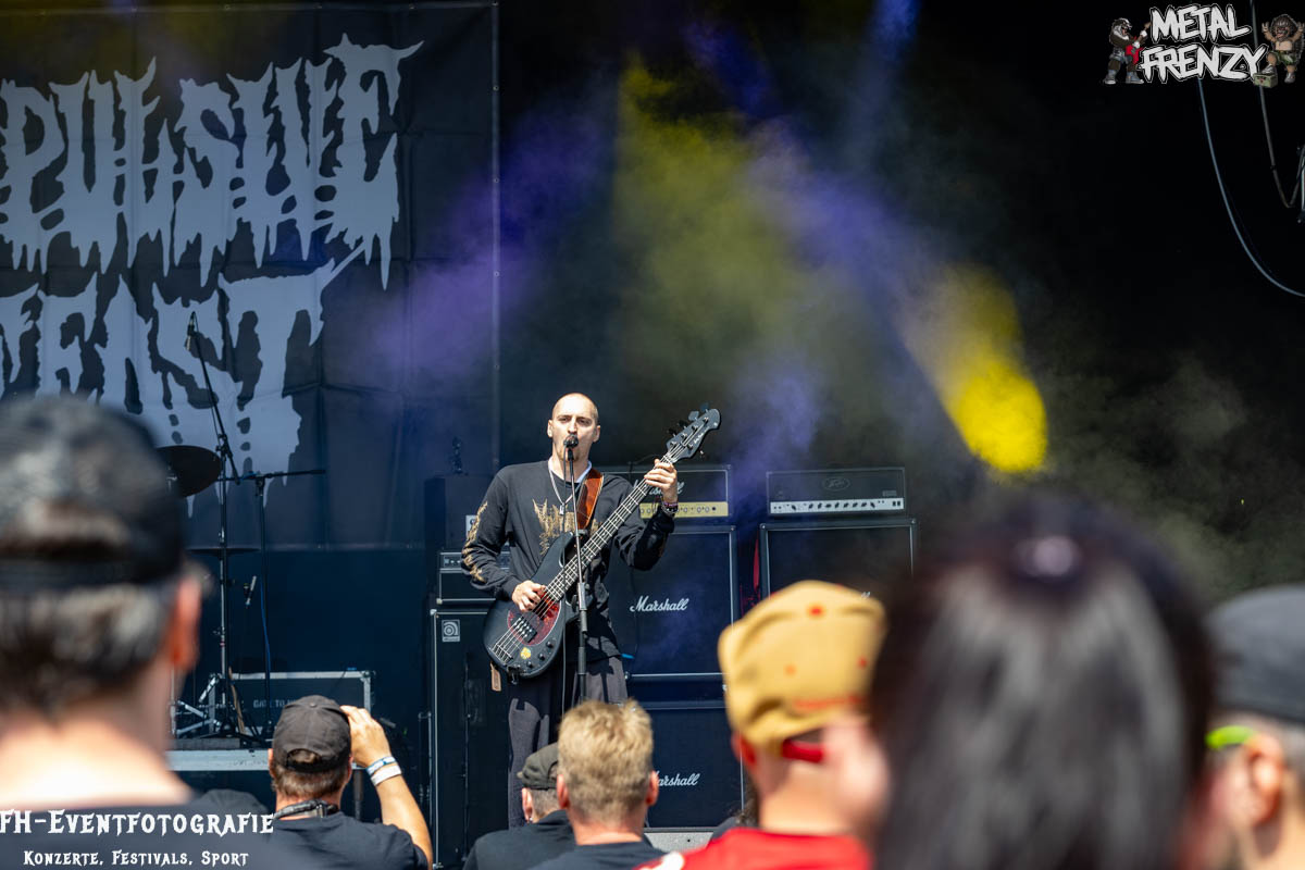 Repulsive Feast aus Wolfsburg lassen es nicht langsam angehen, sondern mit einem richtigen Brett! Den Fans vor der Stage werden die müden Knochen mit Death Metal zum Leben erweckt. Auch die Presseleute waren wach und freuten sich auf den Tag 3 vom Metal Frenzy.