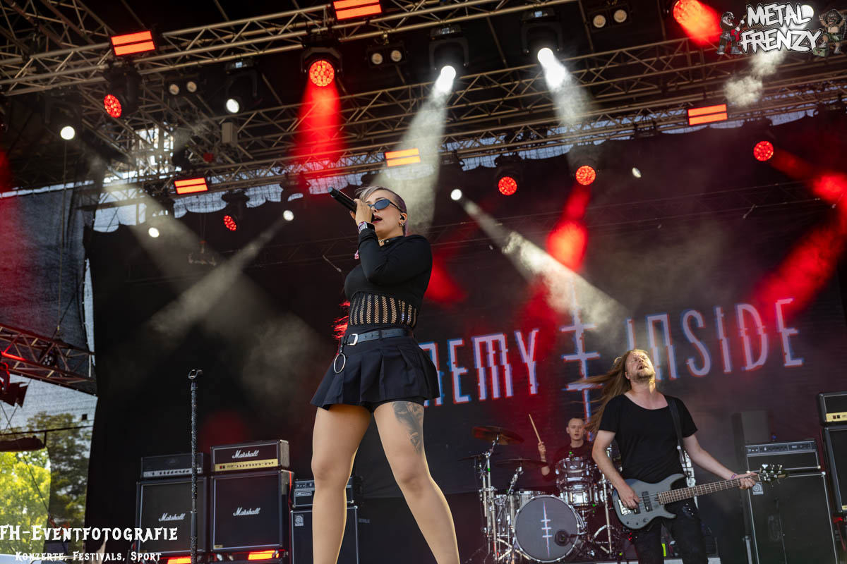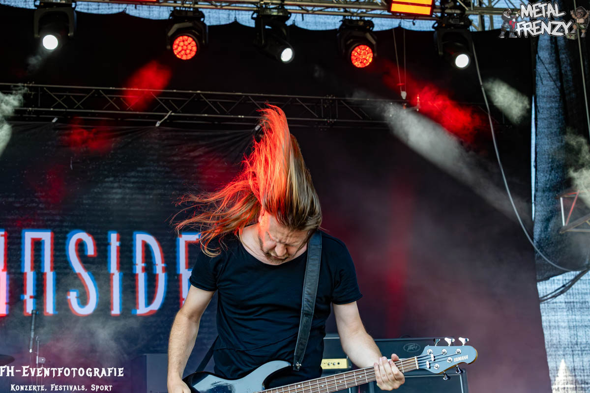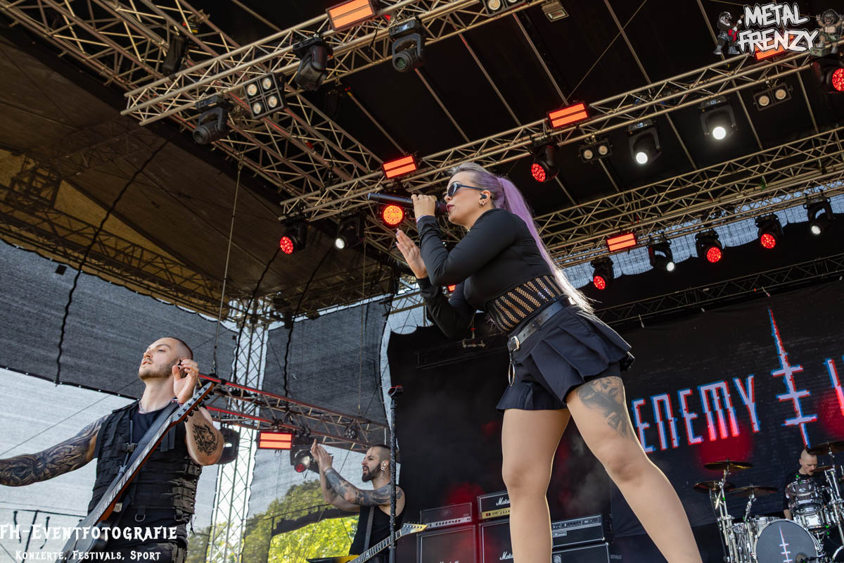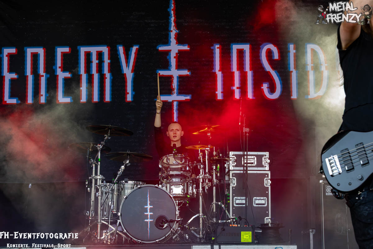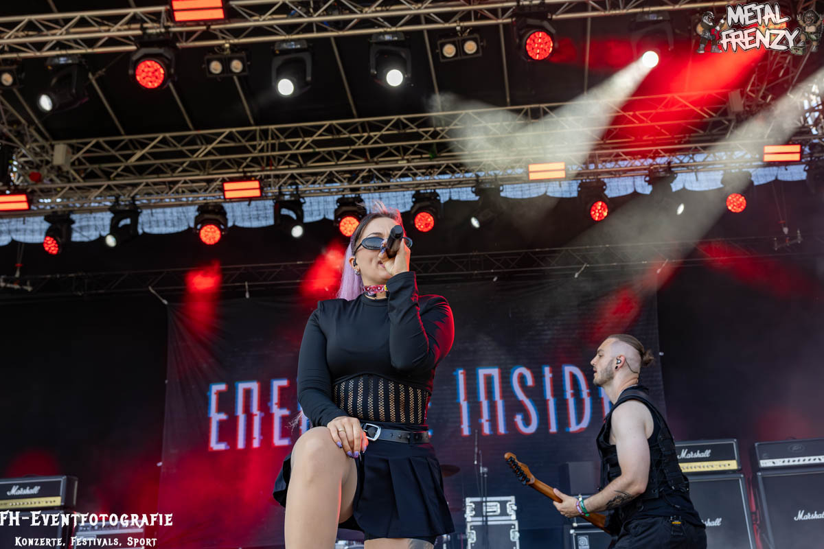 Bei den letzten Auftritten von Enemy Inside waren alle in Weiß gekleidet, sodass ich mich etwas darauf vorbereitet hatte, doch was soll ich sagen: Alle waren in einem freundlichen Schwarz gekleidet und überzeugten mit Modern Metal das Publikum vom Metal Frenzy.