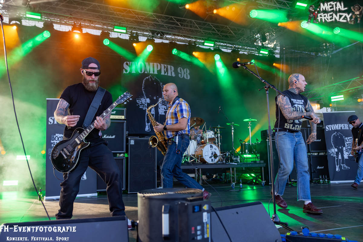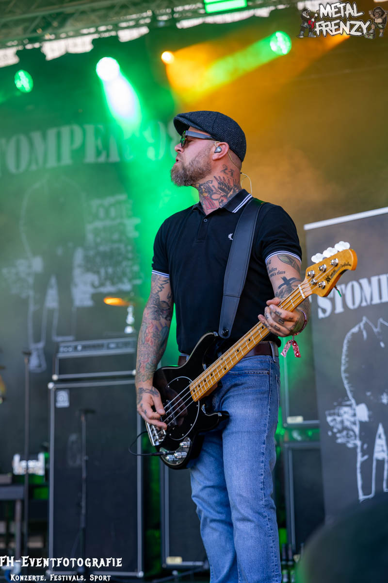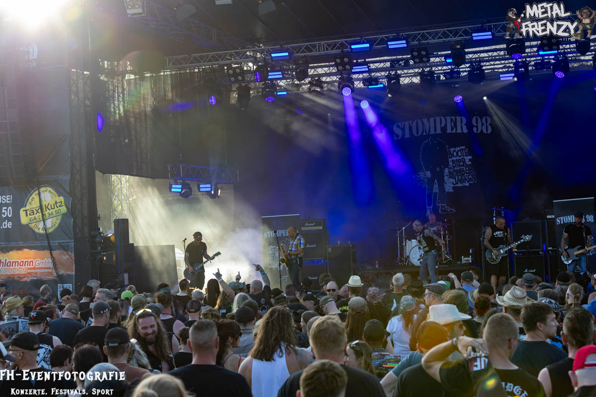 Danach wurde es OI-lastig – wie jedes Jahr beim MFOA – mit den Haudegen von Stomper 98. Düsterer Look, aber sympathische Typen. Der Sänger nahm sich Zeit für Fans, Fotos und Autogramme. Ich kenne mich mit OI zwar nicht aus, aber die Jungs lieferten. Die Stimmung war ausgelassen, die Fans voll dabei – ein echtes Brett.