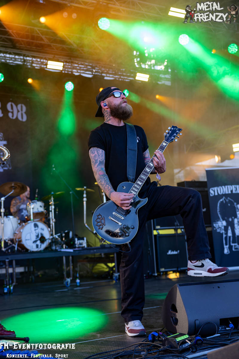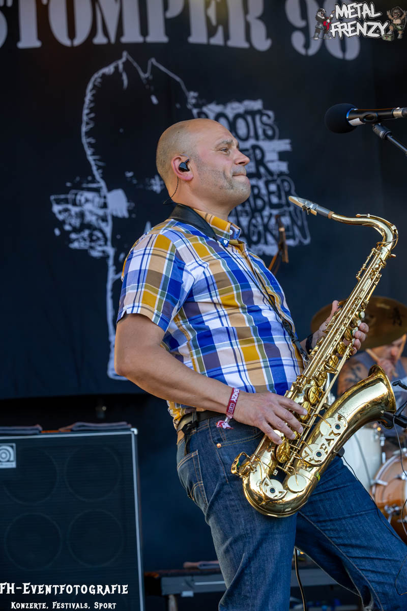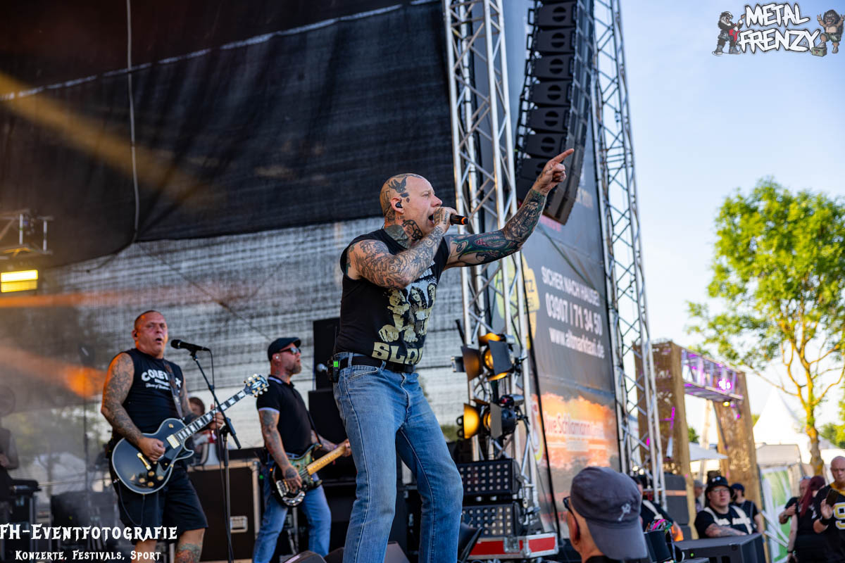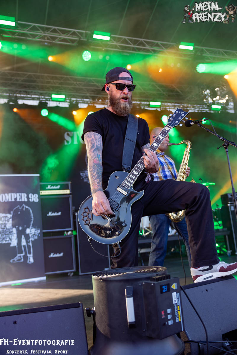 Danach wurde es OI-lastig – wie jedes Jahr beim MFOA – mit den Haudegen von Stomper 98. Düsterer Look, aber sympathische Typen. Der Sänger nahm sich Zeit für Fans, Fotos und Autogramme. Ich kenne mich mit OI zwar nicht aus, aber die Jungs lieferten. Die Stimmung war ausgelassen, die Fans voll dabei – ein echtes Brett.