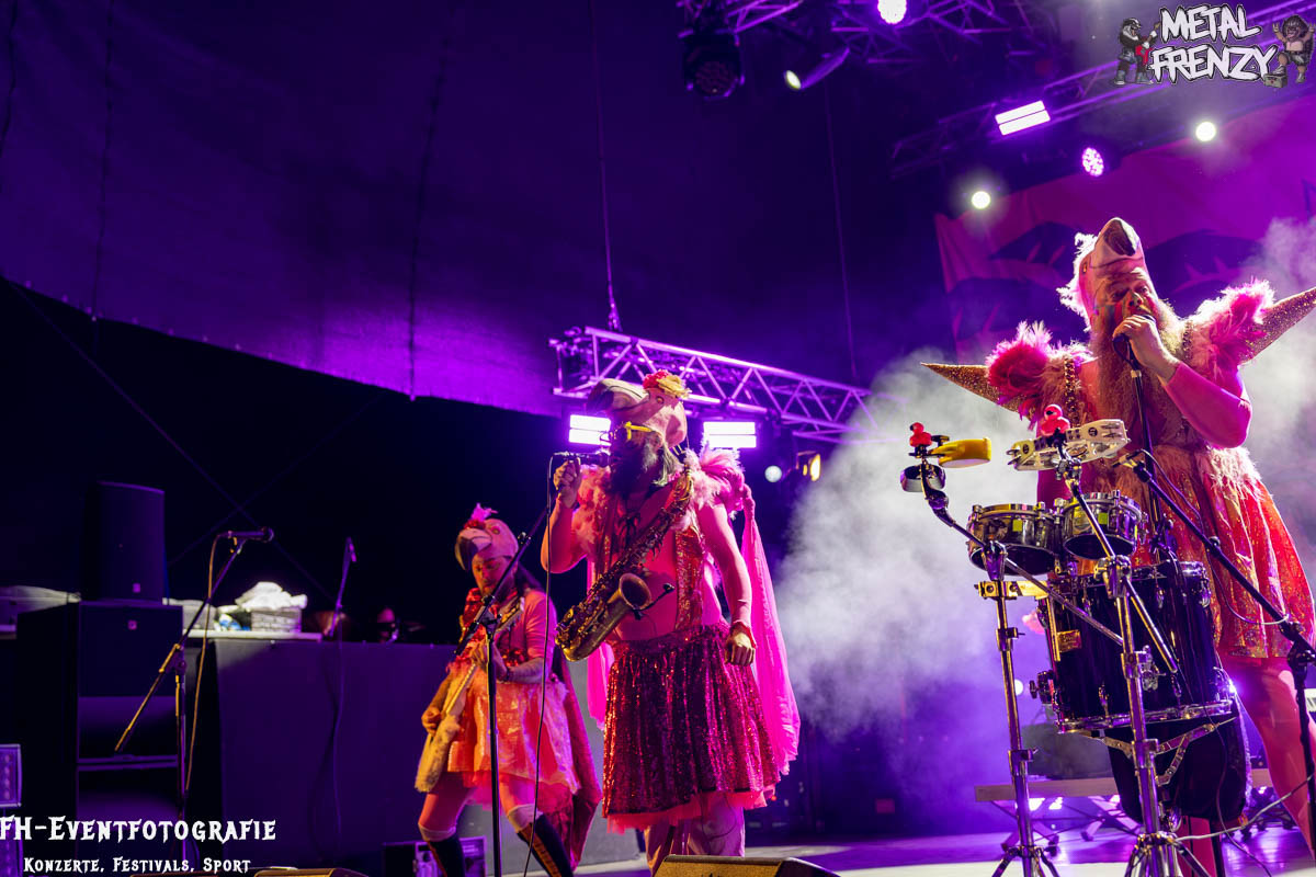 Trotz der Verspätung spielten Trollfest fast ihre vollen 60 Minuten. Eine wilde Mischung aus Folk, Chaos und echter Instrumentierung – kein Synthie-Firlefanz, einfach ein Live-Erlebnis. Wer sie noch nicht gesehen hat: Lohnt sich!