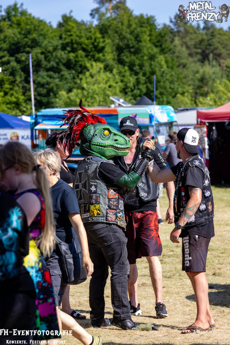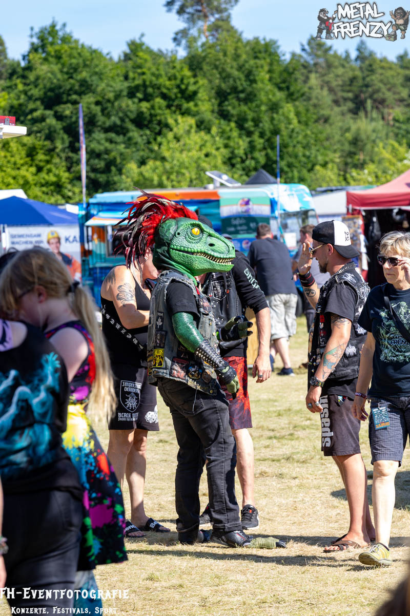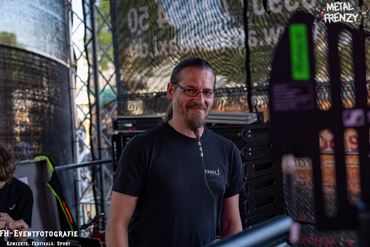 Bei mittlerweile gefühlten 35 Grad ging es mit Helgrindur aus Solingen weiter. Der Sänger der Pagan-Metal-Band hat unter seinem Gewand bestimmt gut geschwitzt, aber die Fans feierten die Band. Da es auf dem Metal Frenzy Festival kostenfrei Wasser zu trinken gab, konnte man sich zwischen den anderen Kaltgetränken wieder etwas Flüssigkeit zuführen und gegen die Hitze ankämpfen.