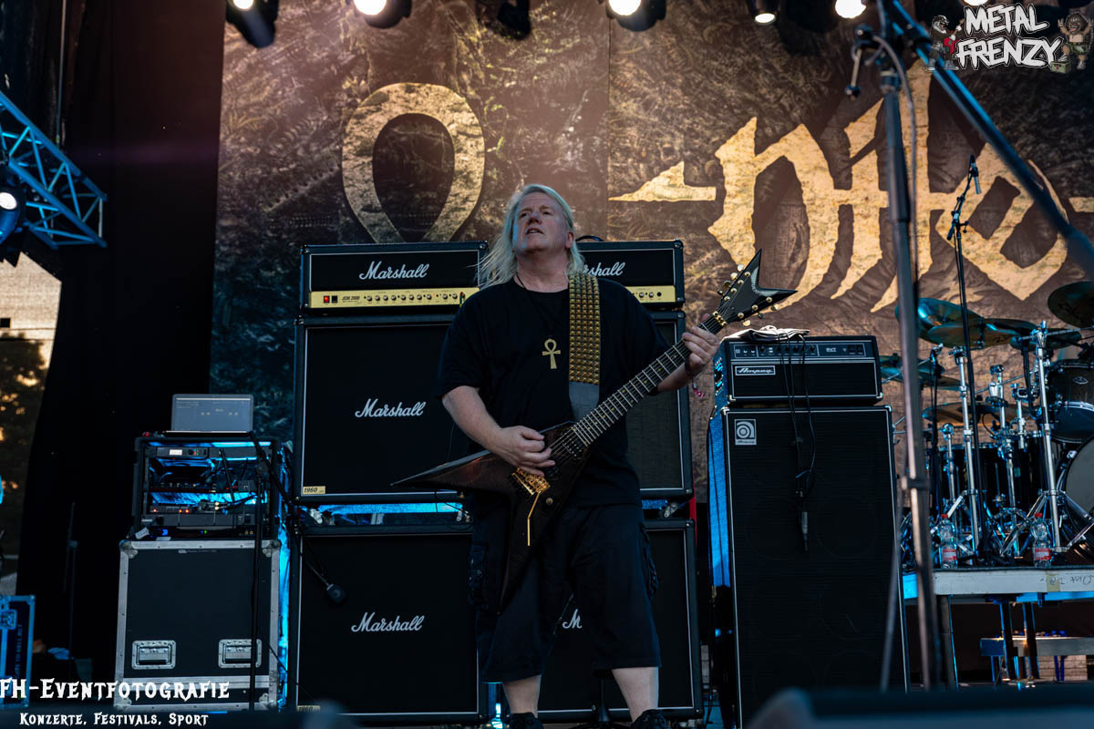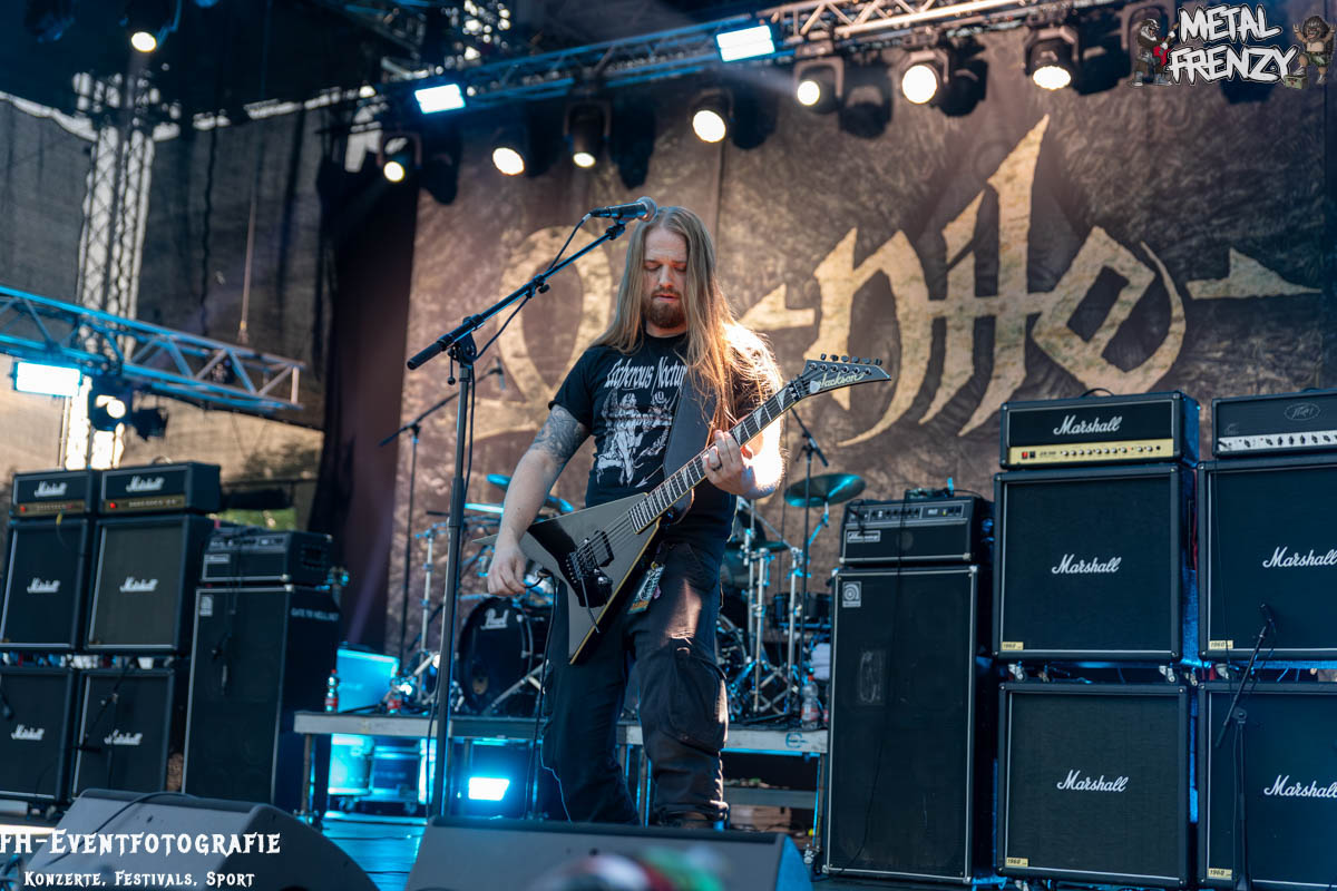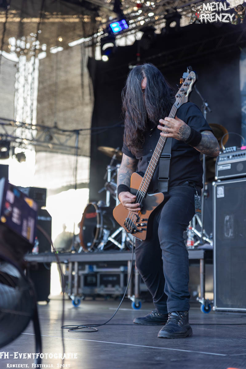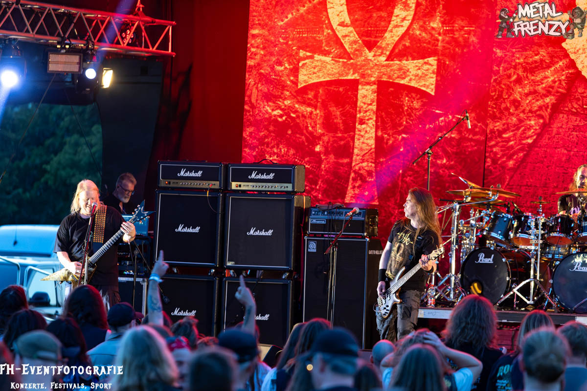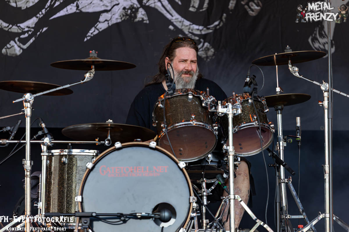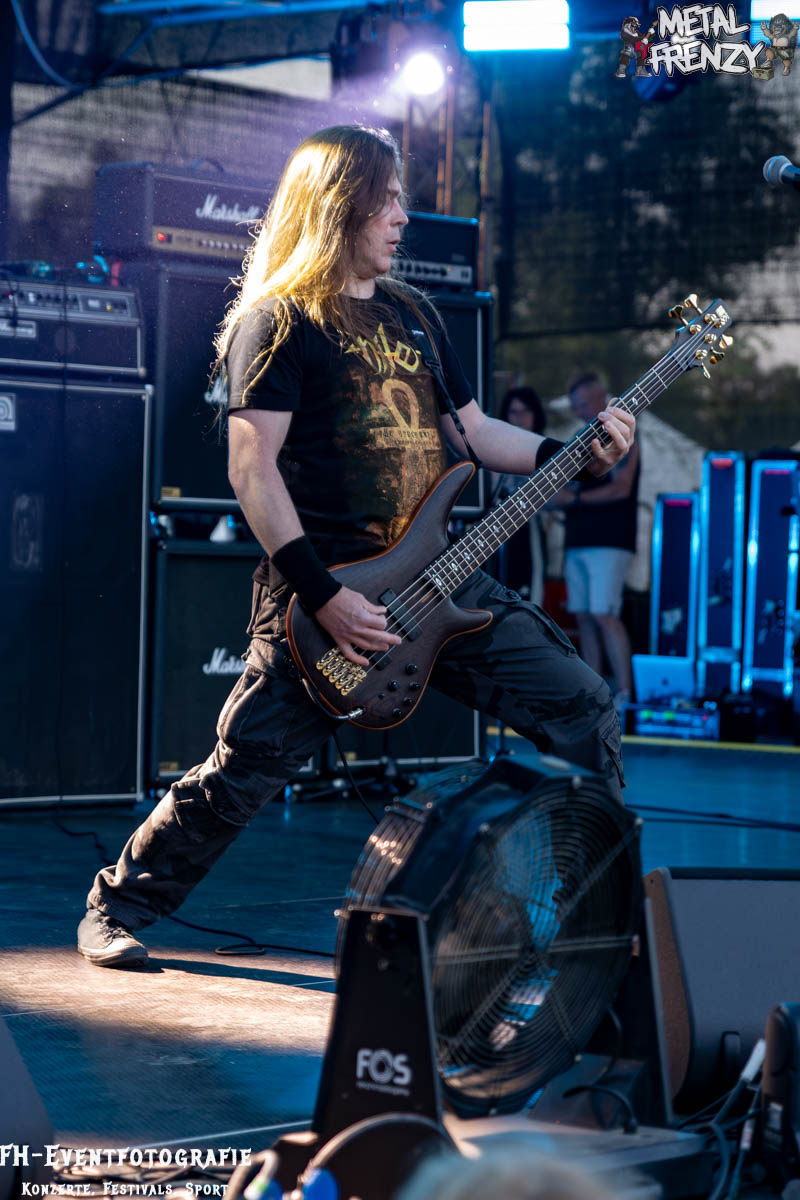 Als vorletzte Band des MFOA 2025 spielten die für mich insgeheimen Headliner des Samstags auf. Ich habe »Nile« bisher zweimal live erleben dürfen, aber immer nur eher am Rande. Die Herren aus South-Carolina sind einfach geil. Technical-Death-Metal mag sicher nicht jedermanns Fall sein, aber ich und so ziemlich alle Besucher des Festivals schienen da einer Meinung zu sein. Was war das für ein musikalisches Geschenk. Da hat das Team vom Metal-Frenzy mal wieder was ganz Feines auf die Bühne geholt.