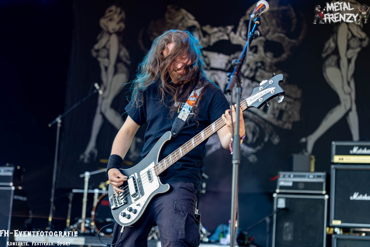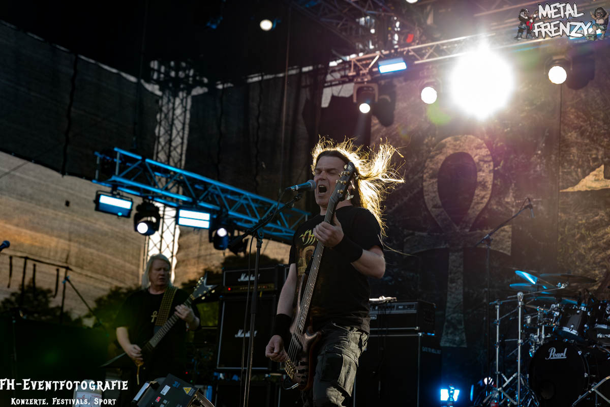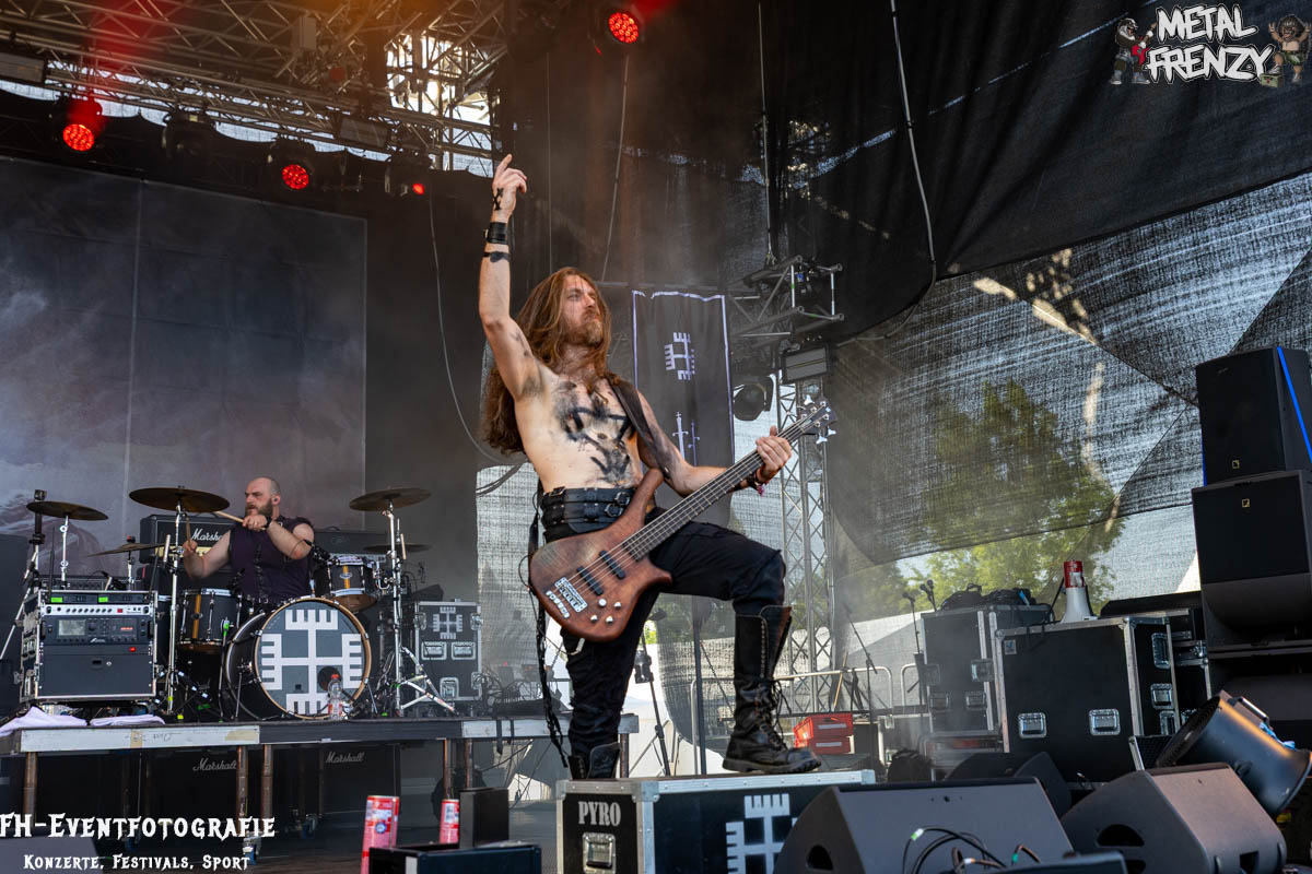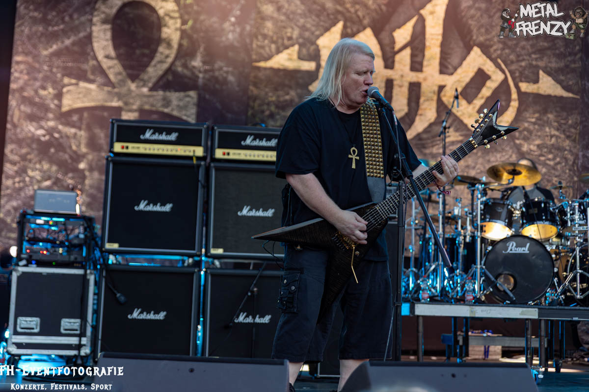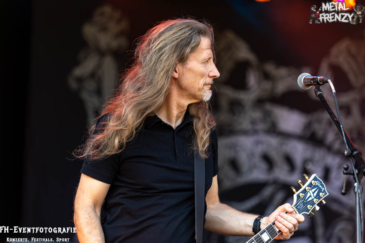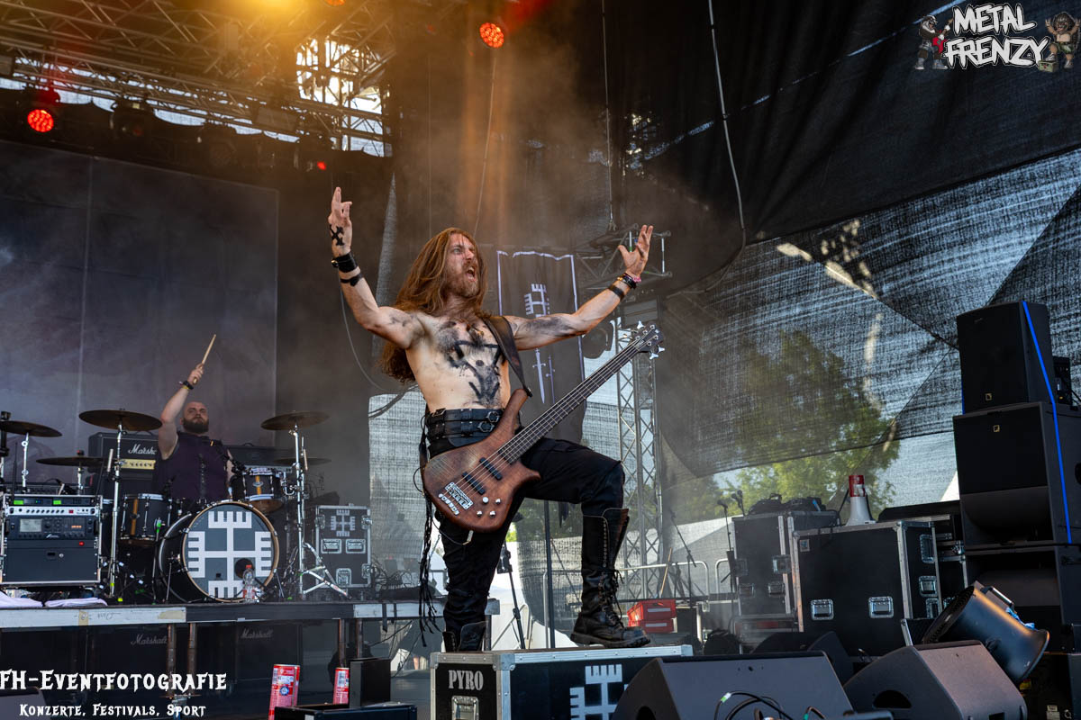 Als vorletzte Band des MFOA 2025 spielten die für mich insgeheimen Headliner des Samstags auf. Ich habe »Nile« bisher zweimal live erleben dürfen, aber immer nur eher am Rande. Die Herren aus South-Carolina sind einfach geil. Technical-Death-Metal mag sicher nicht jedermanns Fall sein, aber ich und so ziemlich alle Besucher des Festivals schienen da einer Meinung zu sein. Was war das für ein musikalisches Geschenk. Da hat das Team vom Metal-Frenzy mal wieder was ganz Feines auf die Bühne geholt.