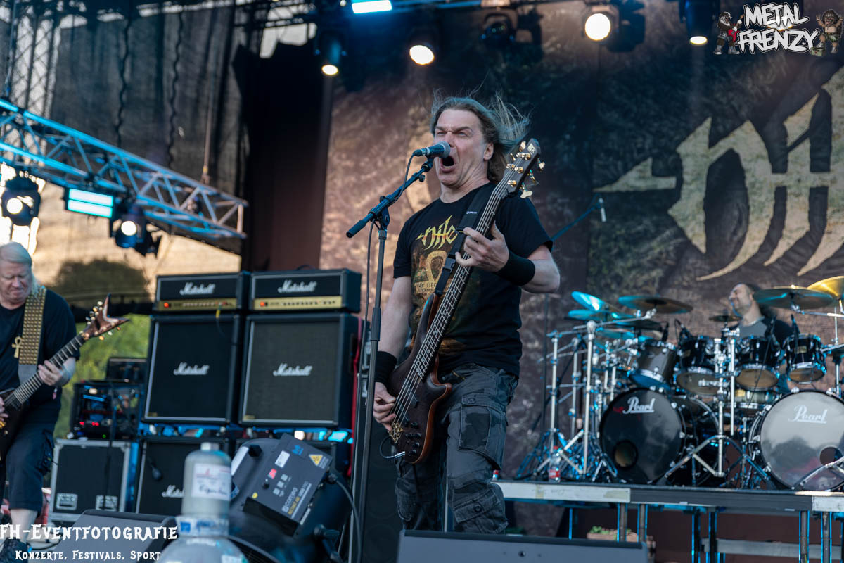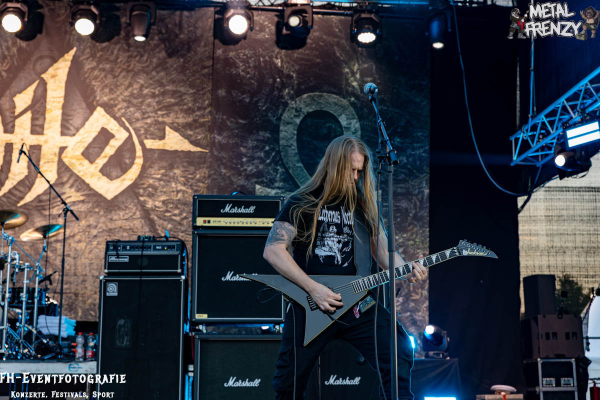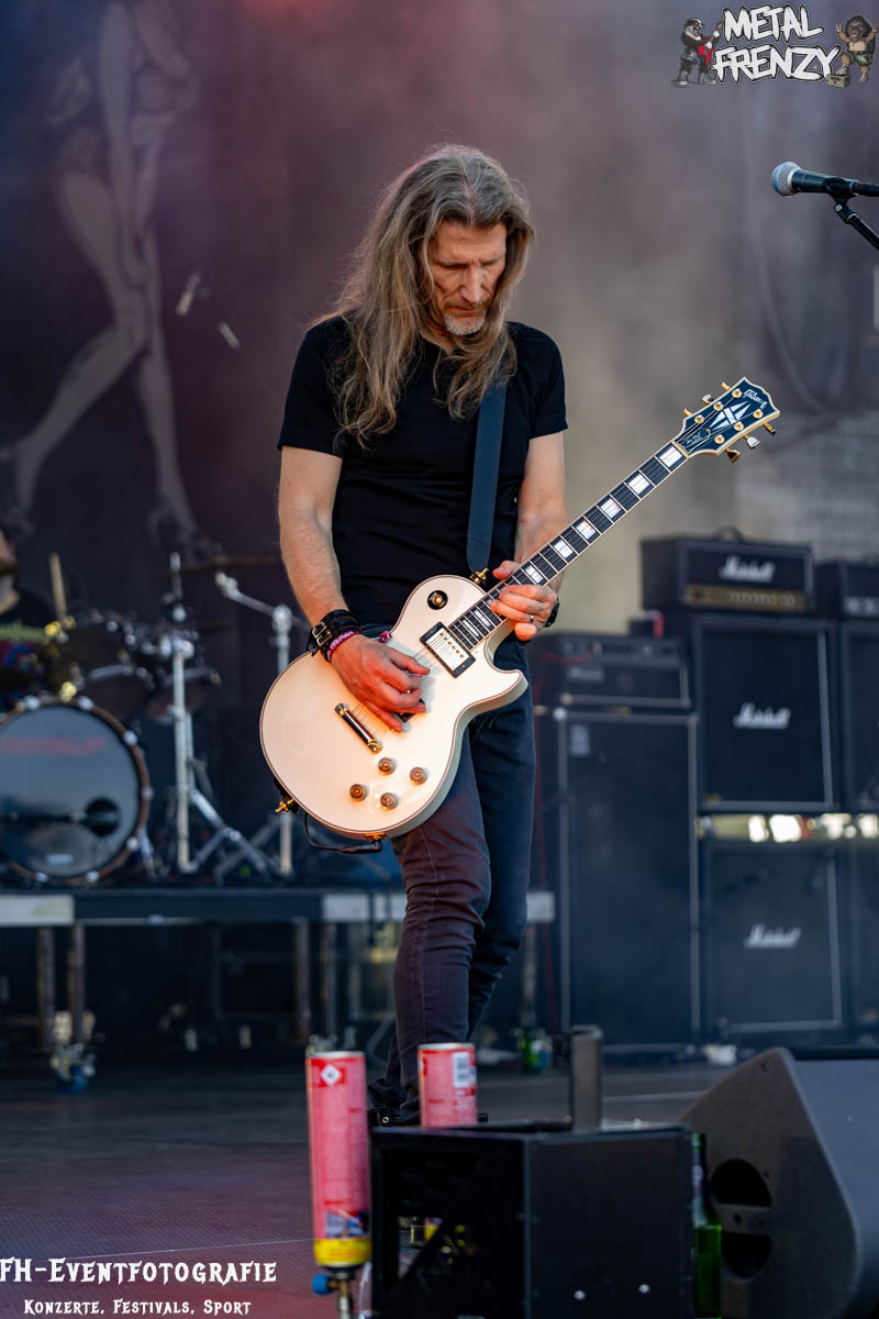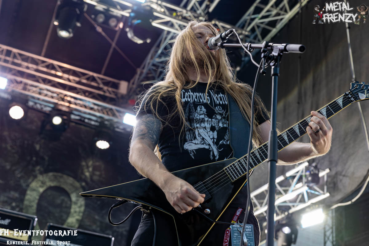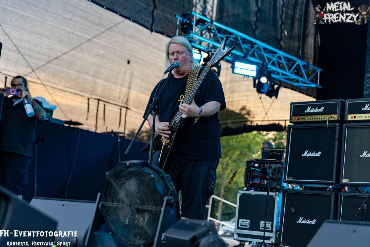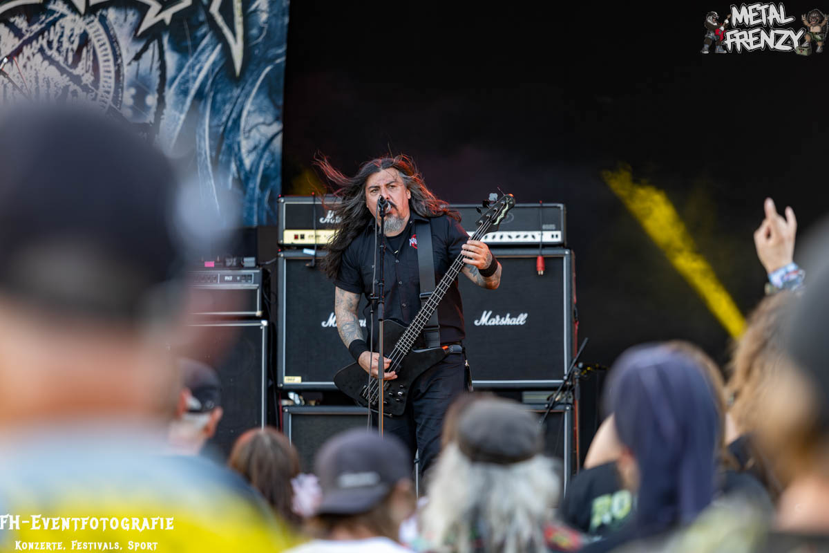 Als vorletzte Band des MFOA 2025 spielten die für mich insgeheimen Headliner des Samstags auf. Ich habe »Nile« bisher zweimal live erleben dürfen, aber immer nur eher am Rande. Die Herren aus South-Carolina sind einfach geil. Technical-Death-Metal mag sicher nicht jedermanns Fall sein, aber ich und so ziemlich alle Besucher des Festivals schienen da einer Meinung zu sein. Was war das für ein musikalisches Geschenk. Da hat das Team vom Metal-Frenzy mal wieder was ganz Feines auf die Bühne geholt.