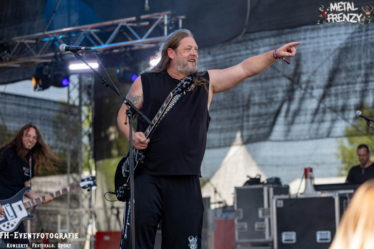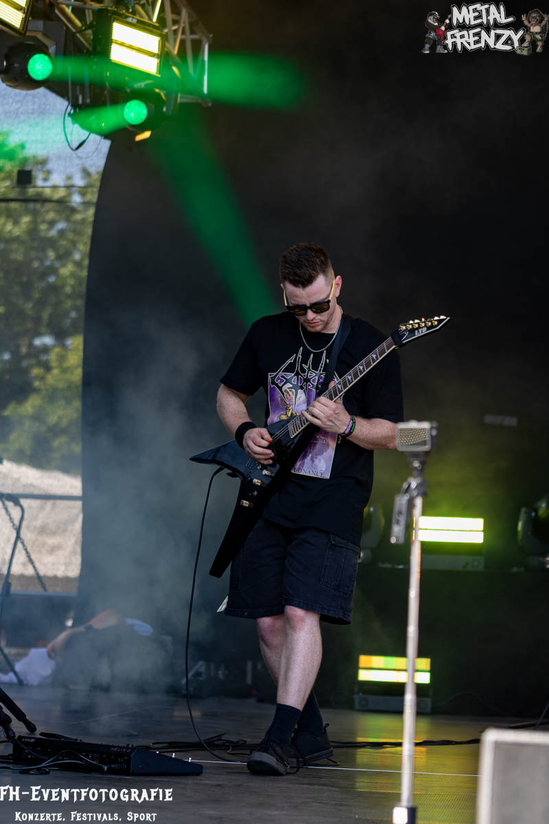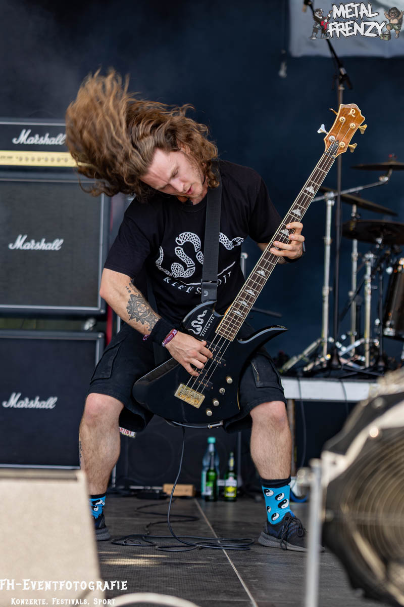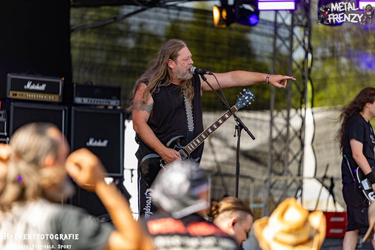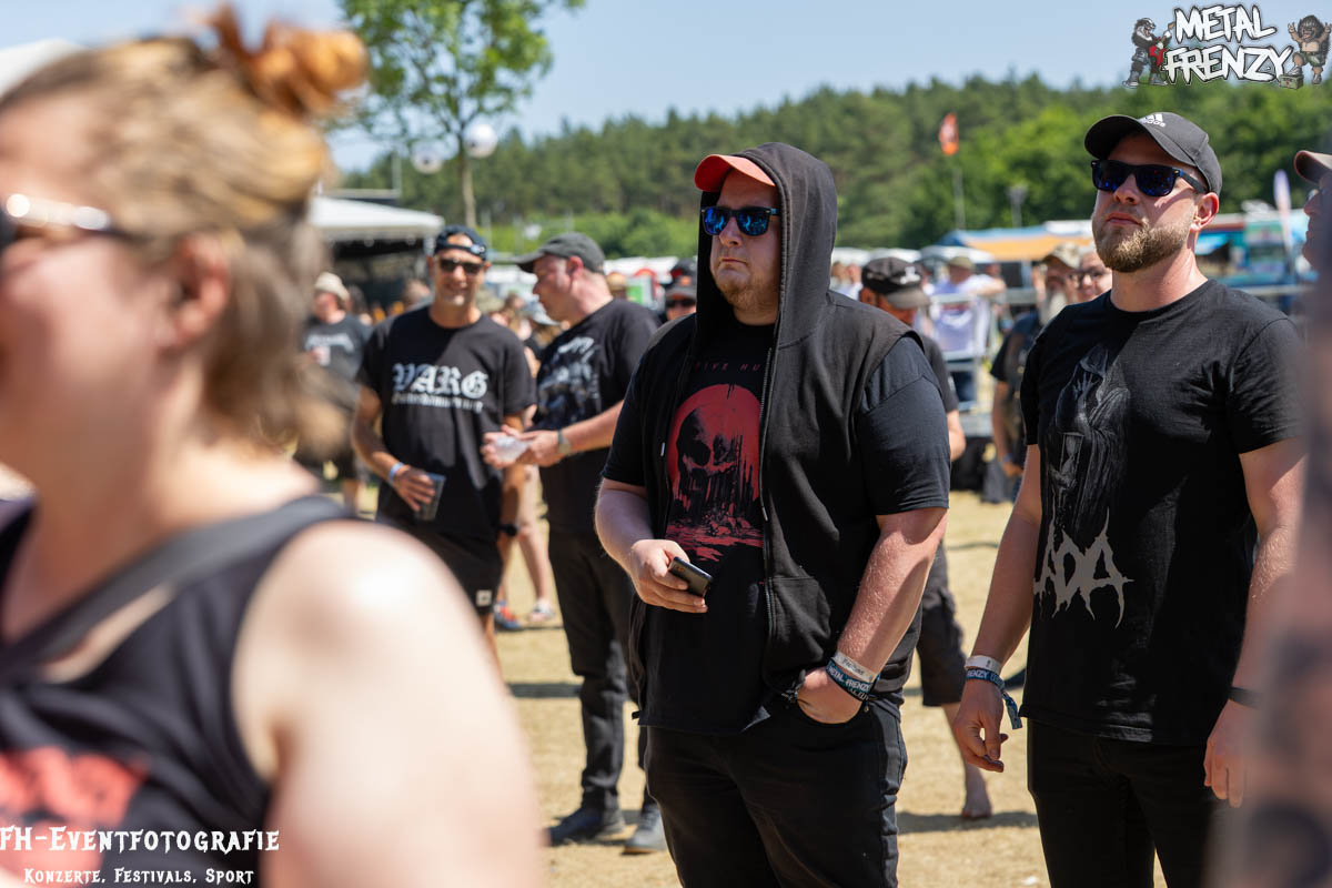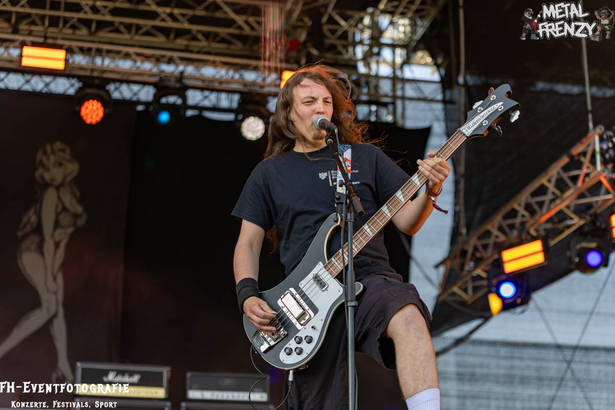 So, Ihr Fans der geilen Musik unter freiem Himmel. Nun der letzte Tag des MFOA 2025. Nach drei Tagen Festival haben wir nun den letzten Tag erreicht. Drei Tage mit richtig gutem Wetter und einer bombastischen Festivalfamilie gingen in ihren letzten Tag. Bisher hatten wir so illustre Bands wie »Mit Ohne Strom«, »Destruction«, »Die Apokalyptischen Reiter«, »Drone« und »Lord of the Lost«. Diese Qualität wurde natürlich am Samstag fortgesetzt. Der Tag startete um 12:20 Uhr mit »Oracle of Worms«. Die Hessen begrüßten die Fans nach dem Aufstehen und dem ersten Bierchen mit solidem Deathmetal. So viel Power wie sie dabei an den Tag legten, haben sie sicher eine Stärkung bei »Jens Fäsche« und seinem Team vorher eingenommen. Gutes Rührei mit einem ordentlichen Kaffee.