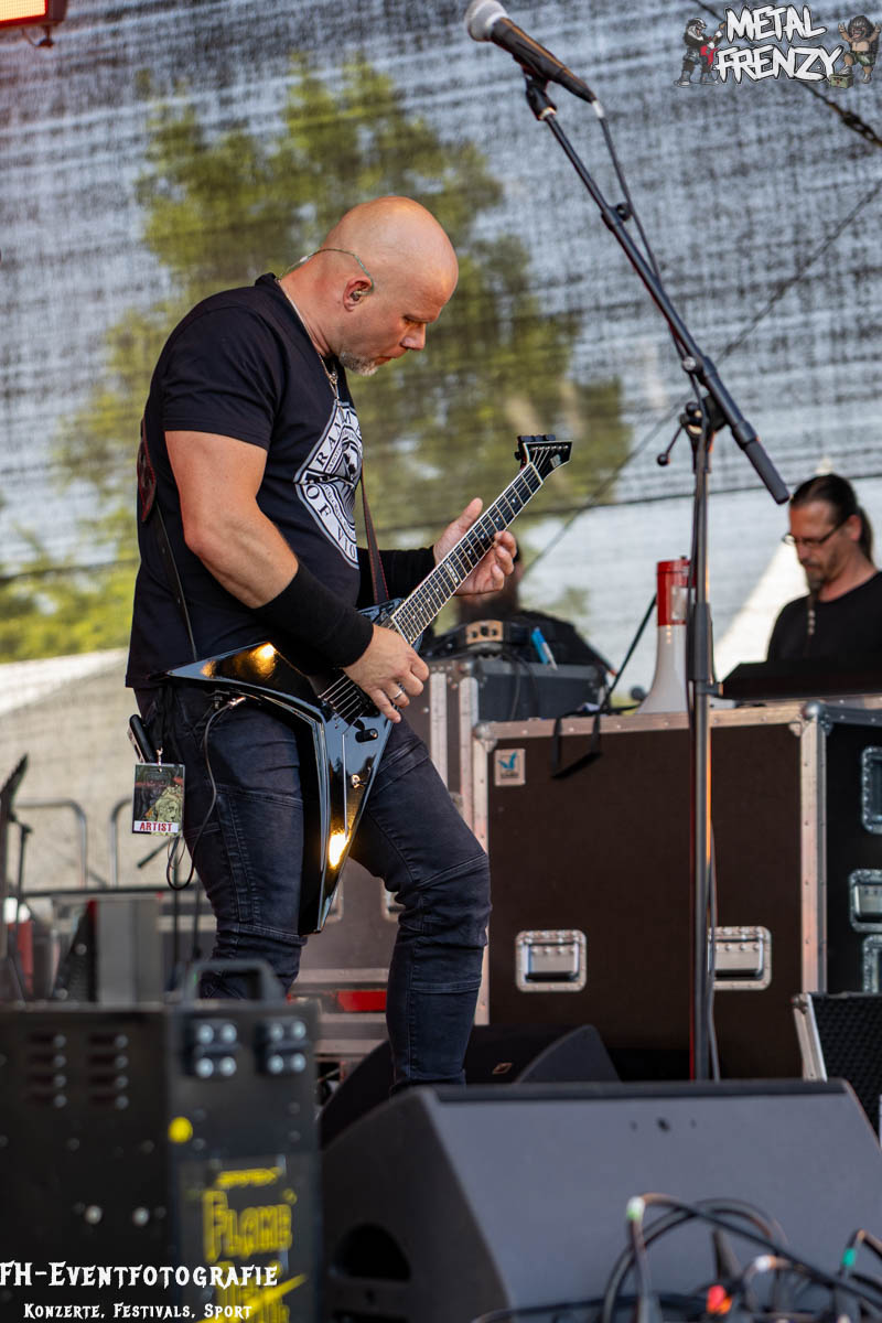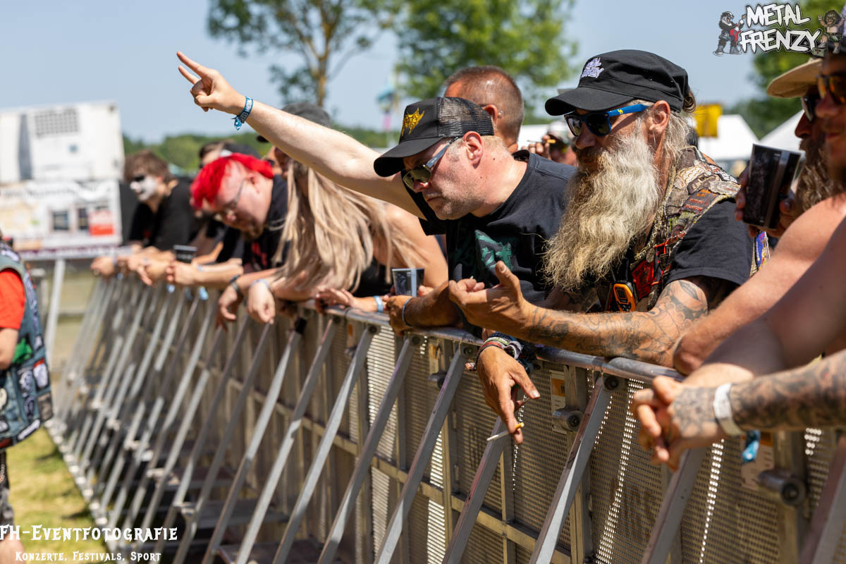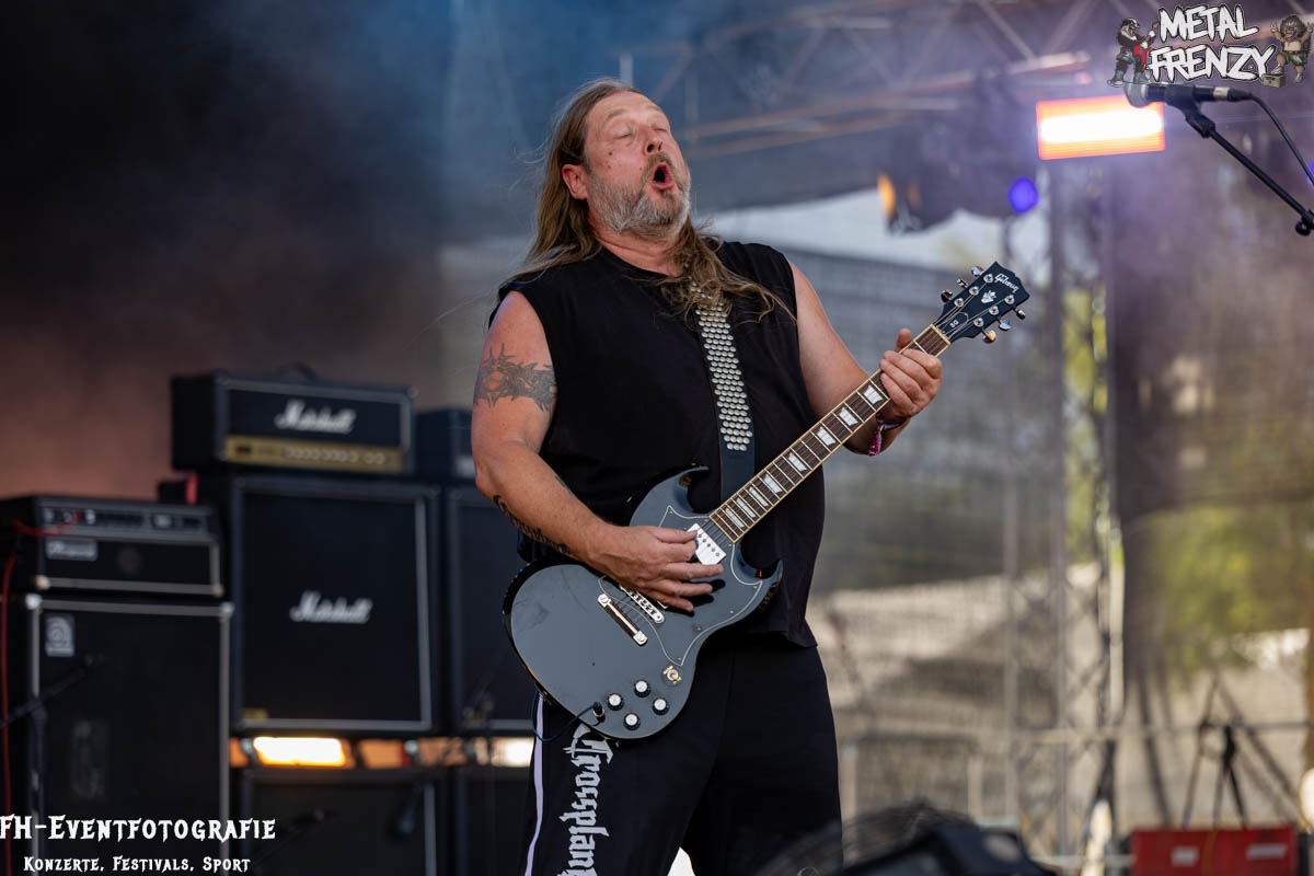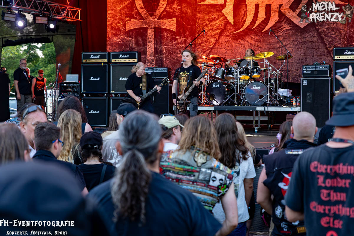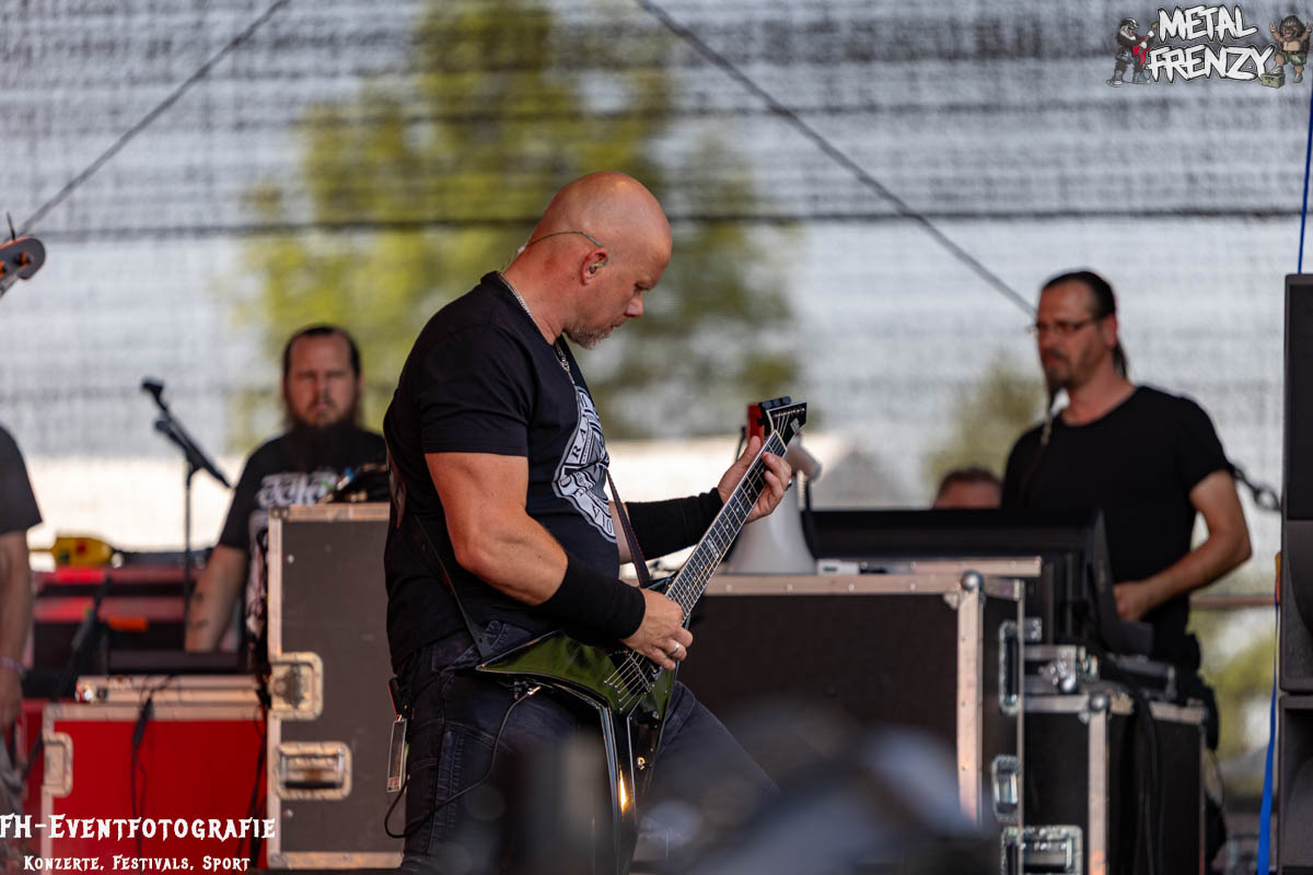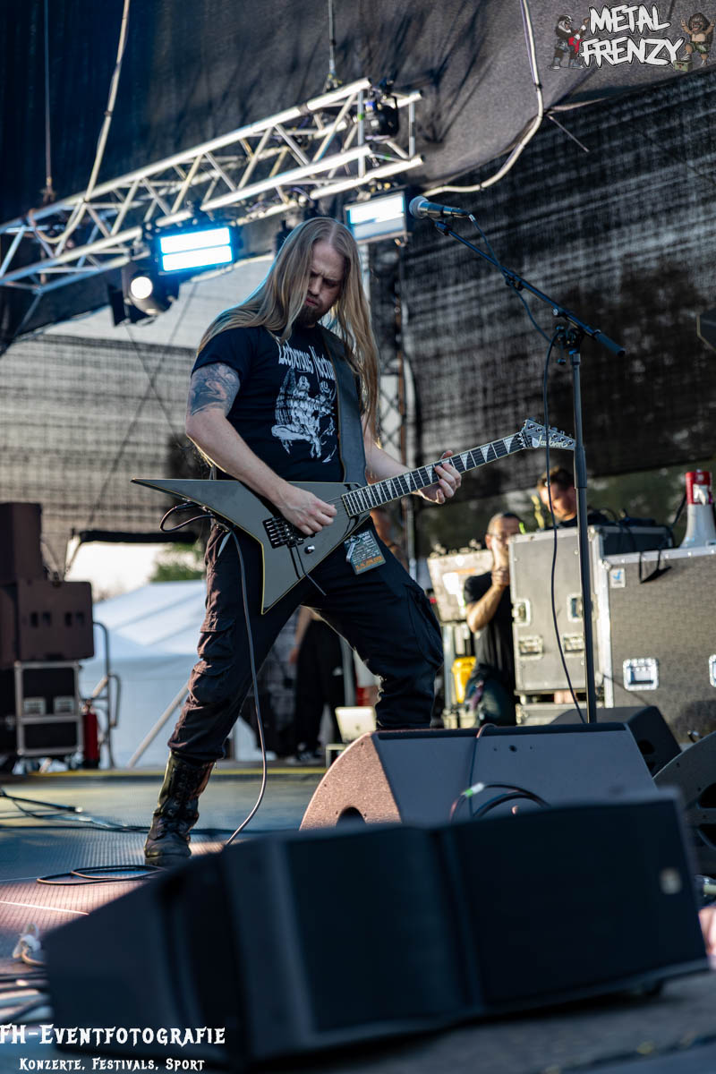 So, Ihr Fans der geilen Musik unter freiem Himmel. Nun der letzte Tag des MFOA 2025. Nach drei Tagen Festival haben wir nun den letzten Tag erreicht. Drei Tage mit richtig gutem Wetter und einer bombastischen Festivalfamilie gingen in ihren letzten Tag. Bisher hatten wir so illustre Bands wie »Mit Ohne Strom«, »Destruction«, »Die Apokalyptischen Reiter«, »Drone« und »Lord of the Lost«. Diese Qualität wurde natürlich am Samstag fortgesetzt. Der Tag startete um 12:20 Uhr mit »Oracle of Worms«. Die Hessen begrüßten die Fans nach dem Aufstehen und dem ersten Bierchen mit solidem Deathmetal. So viel Power wie sie dabei an den Tag legten, haben sie sicher eine Stärkung bei »Jens Fäsche« und seinem Team vorher eingenommen. Gutes Rührei mit einem ordentlichen Kaffee.