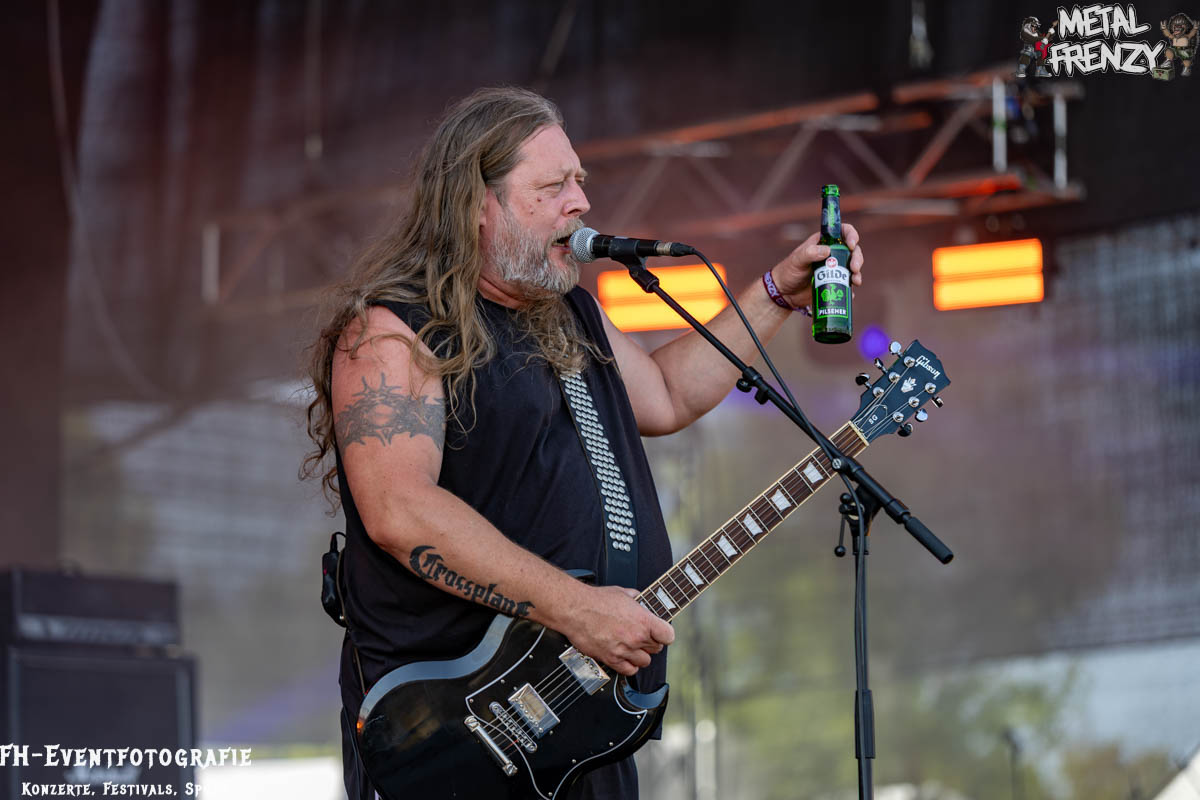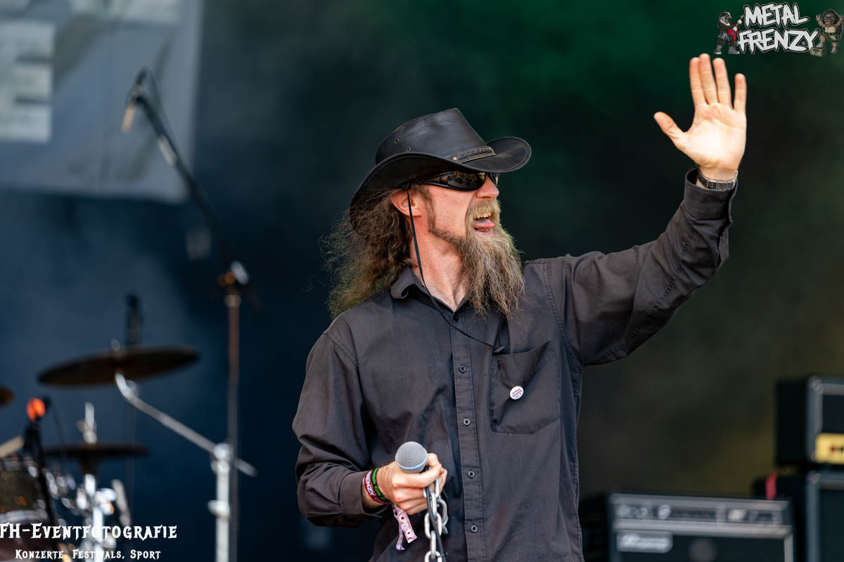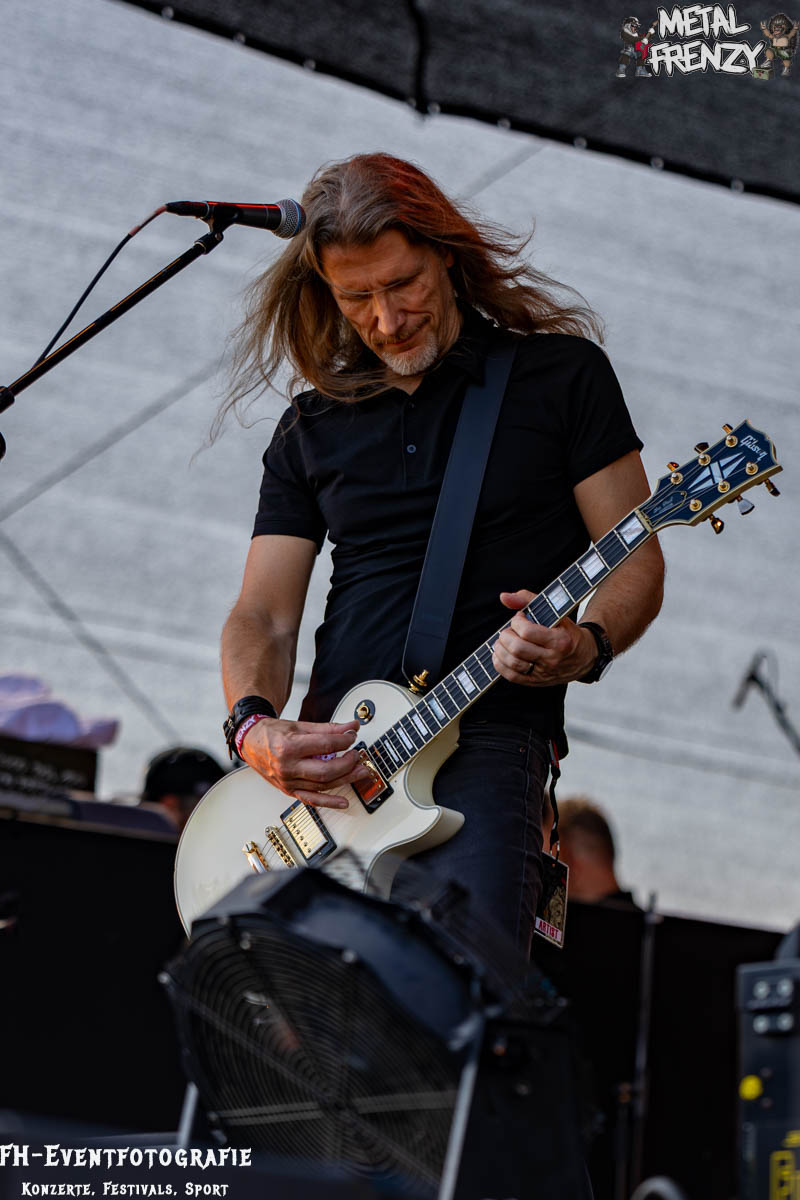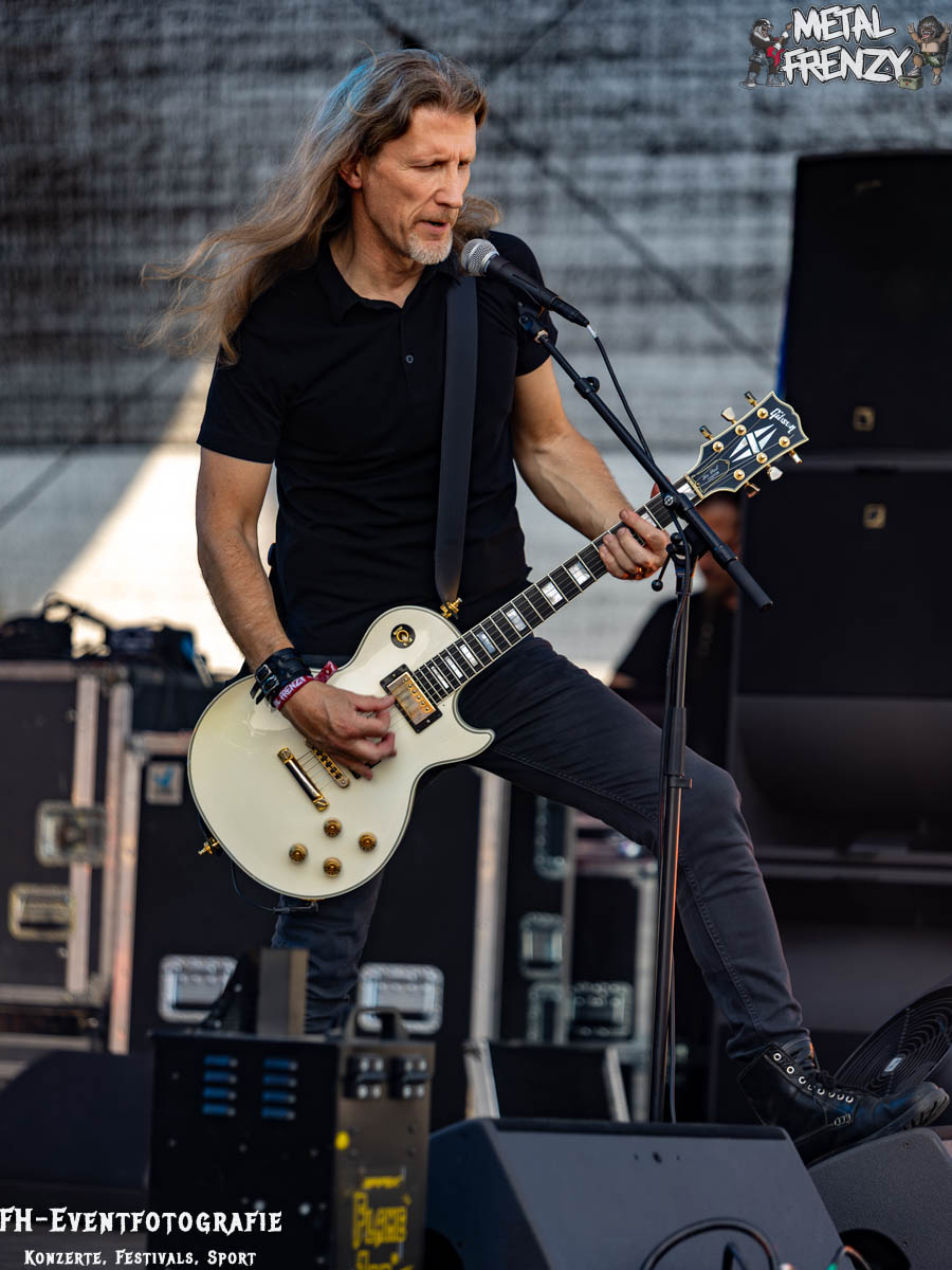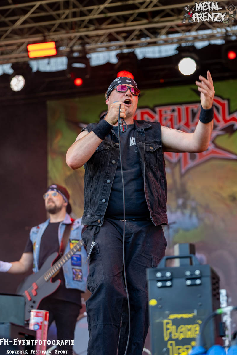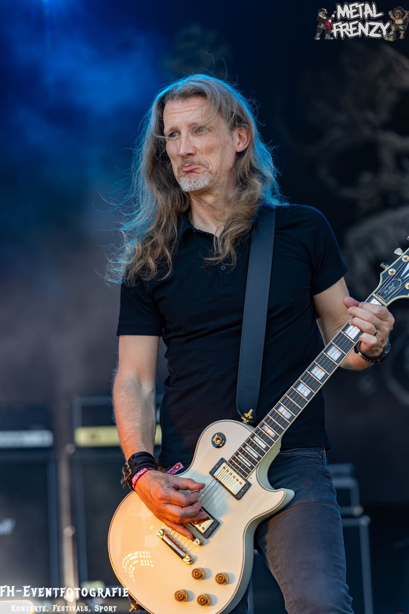 So, Ihr Fans der geilen Musik unter freiem Himmel. Nun der letzte Tag des MFOA 2025. Nach drei Tagen Festival haben wir nun den letzten Tag erreicht. Drei Tage mit richtig gutem Wetter und einer bombastischen Festivalfamilie gingen in ihren letzten Tag. Bisher hatten wir so illustre Bands wie »Mit Ohne Strom«, »Destruction«, »Die Apokalyptischen Reiter«, »Drone« und »Lord of the Lost«. Diese Qualität wurde natürlich am Samstag fortgesetzt. Der Tag startete um 12:20 Uhr mit »Oracle of Worms«. Die Hessen begrüßten die Fans nach dem Aufstehen und dem ersten Bierchen mit solidem Deathmetal. So viel Power wie sie dabei an den Tag legten, haben sie sicher eine Stärkung bei »Jens Fäsche« und seinem Team vorher eingenommen. Gutes Rührei mit einem ordentlichen Kaffee.